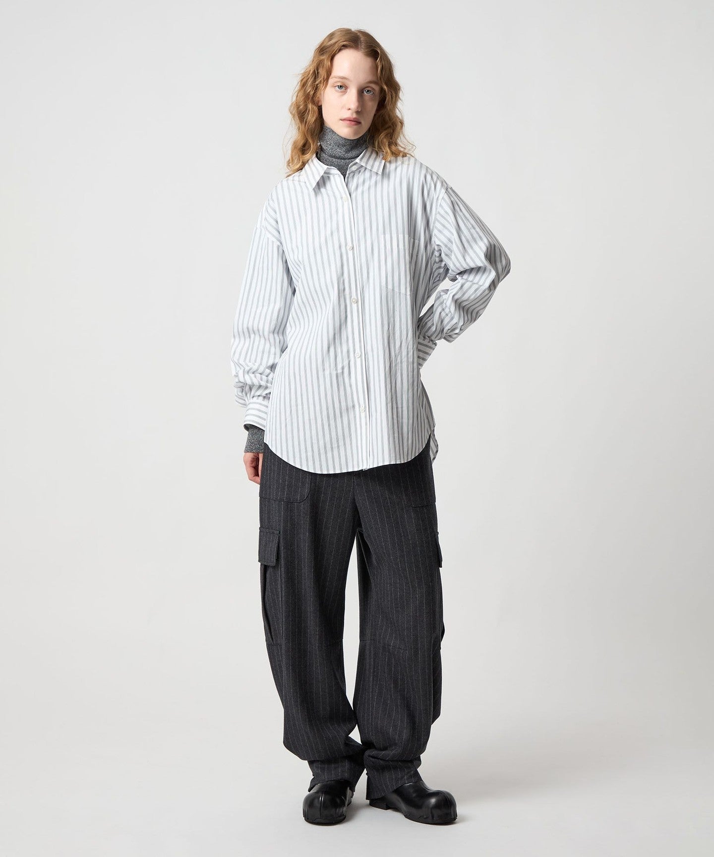 A shirt with a slightly loose, men's-like silhouette that combines a relaxed and modern feel.
