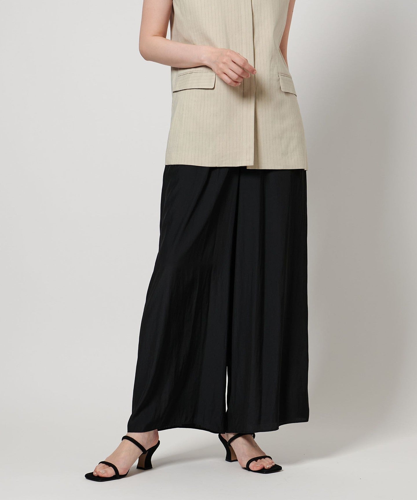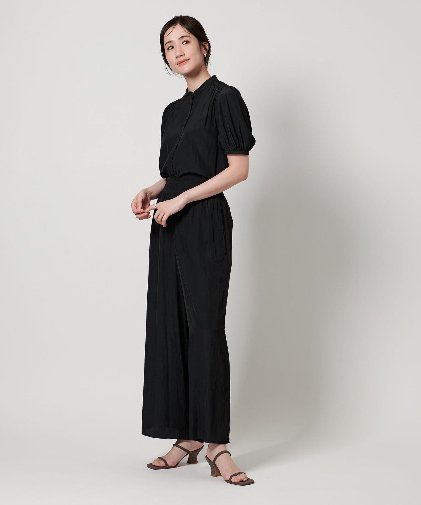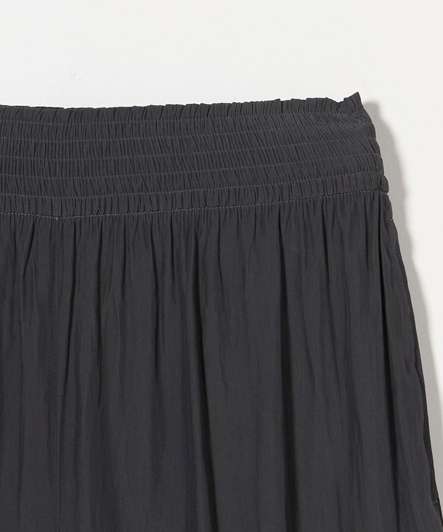 It can be paired with a blouse made of the same material as a set, and is also recommended with fitted knits and cut-and-sew tops.