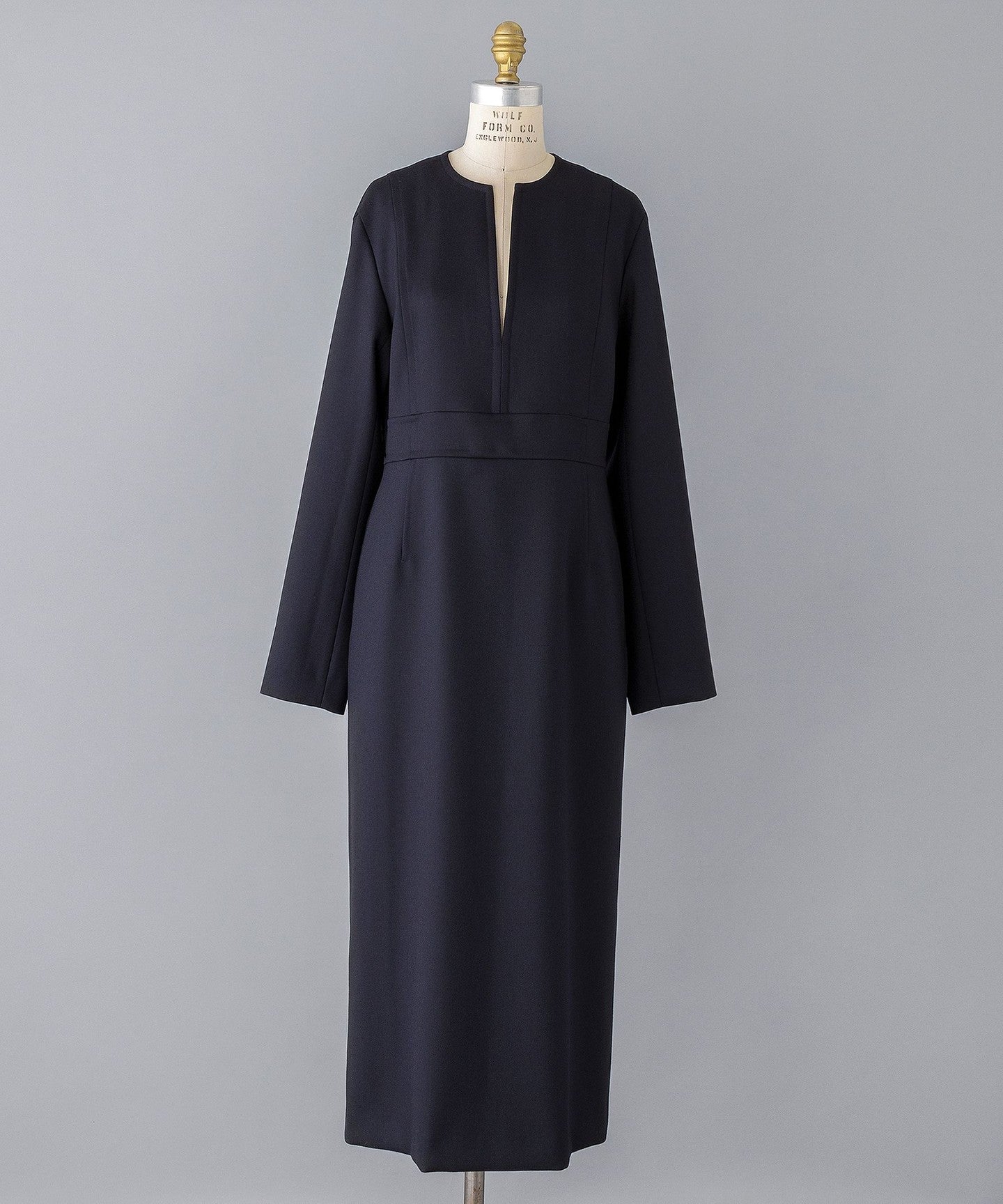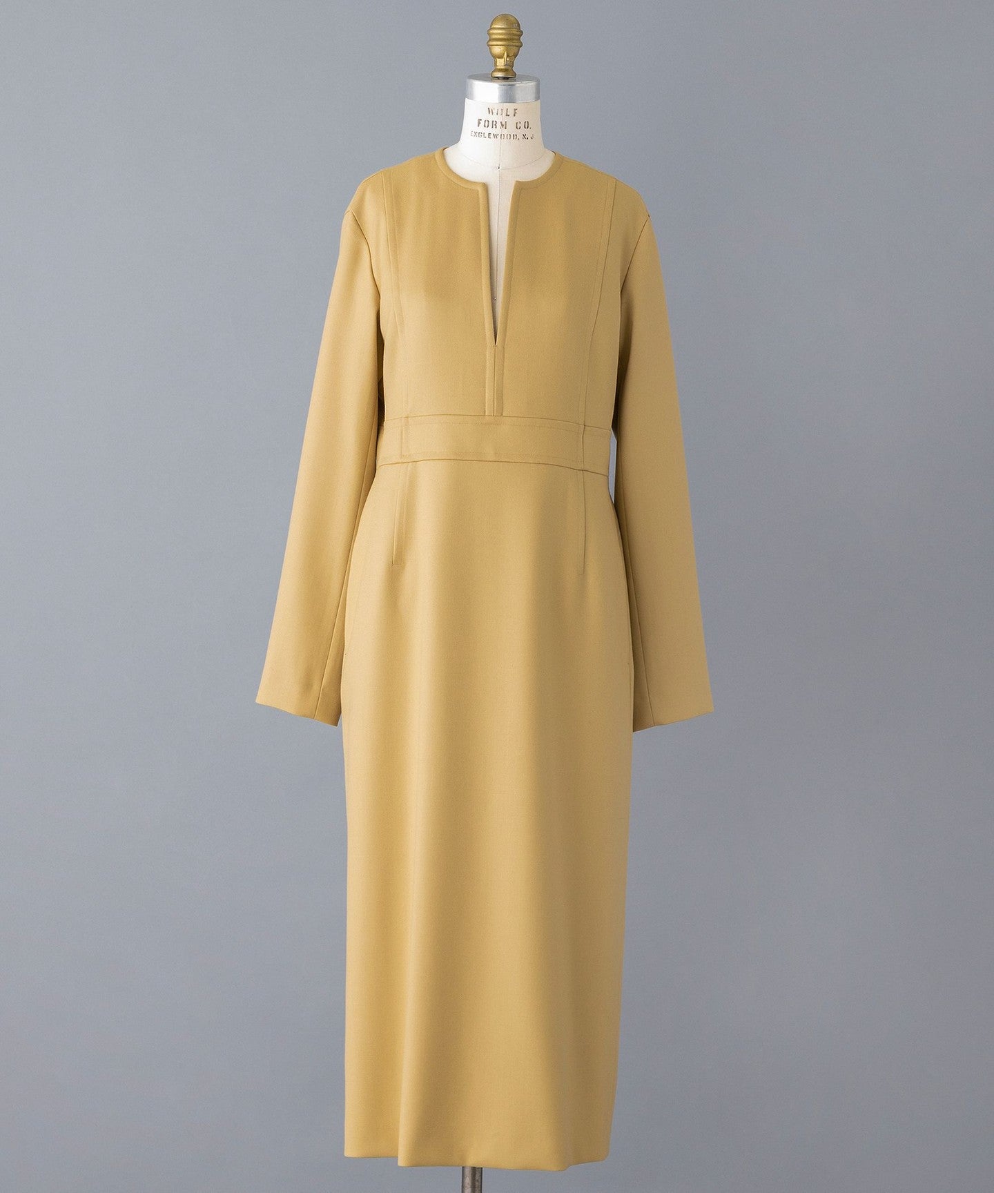 A dress with a waistline and pencil lines that gives it an elegant look.