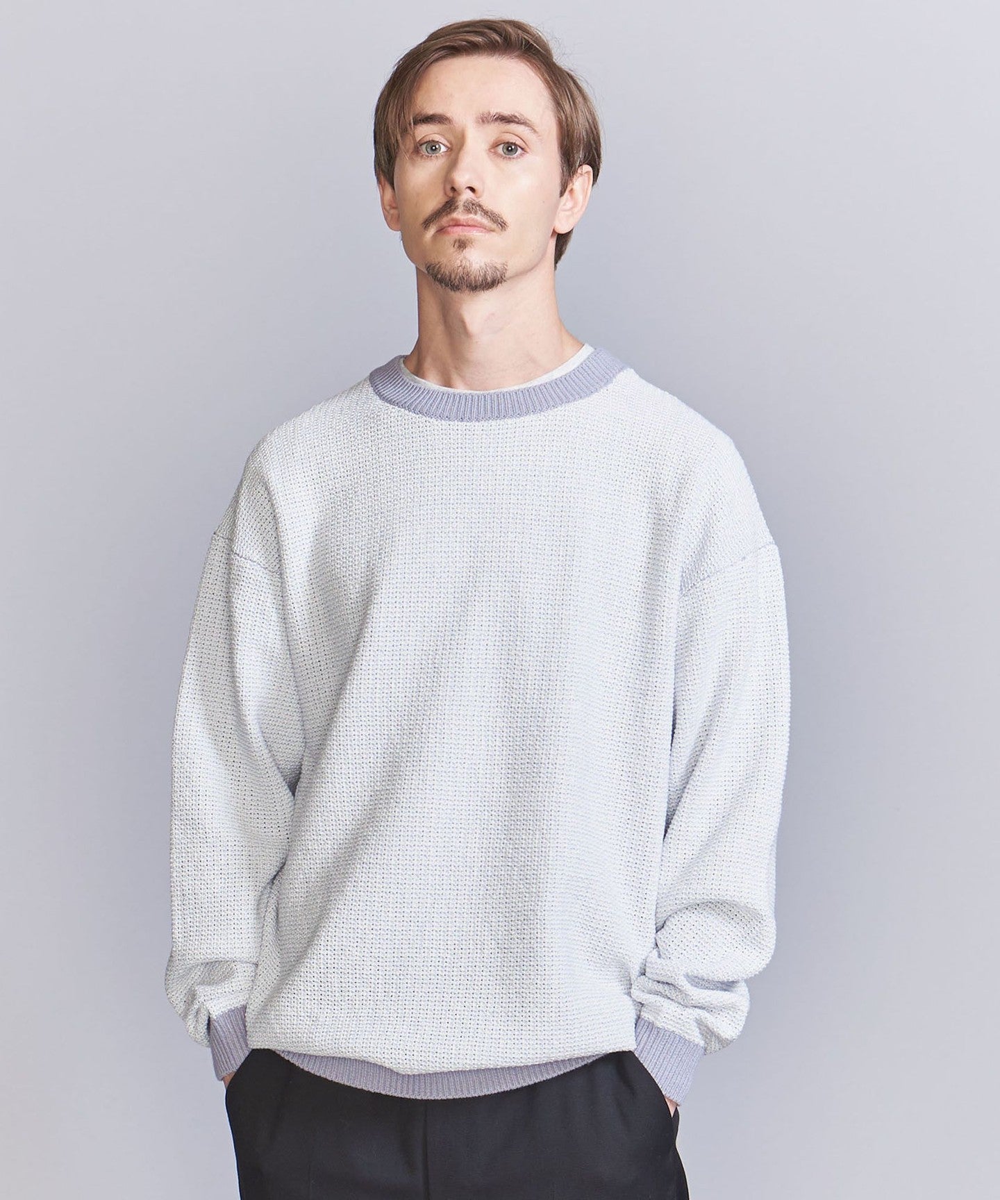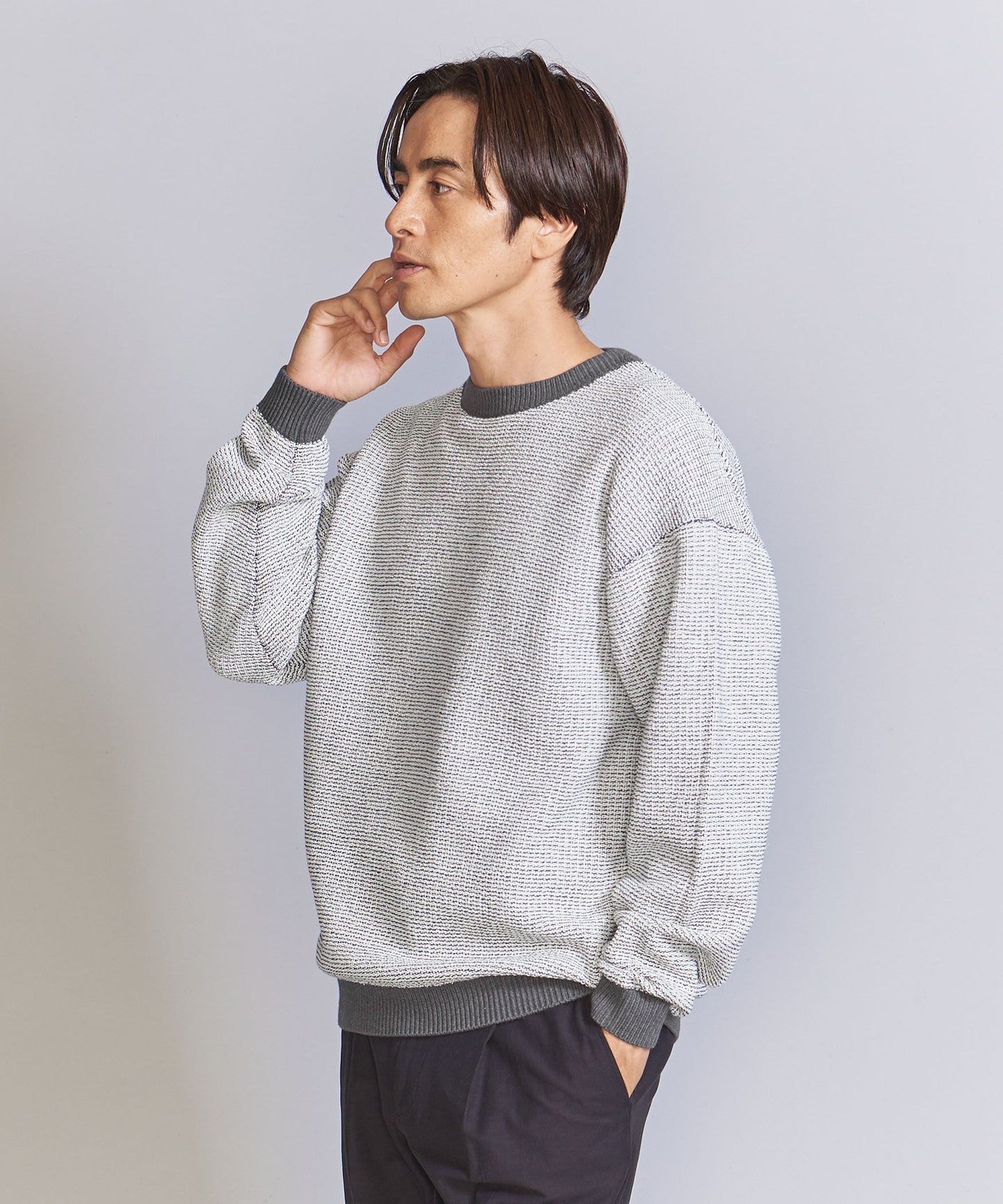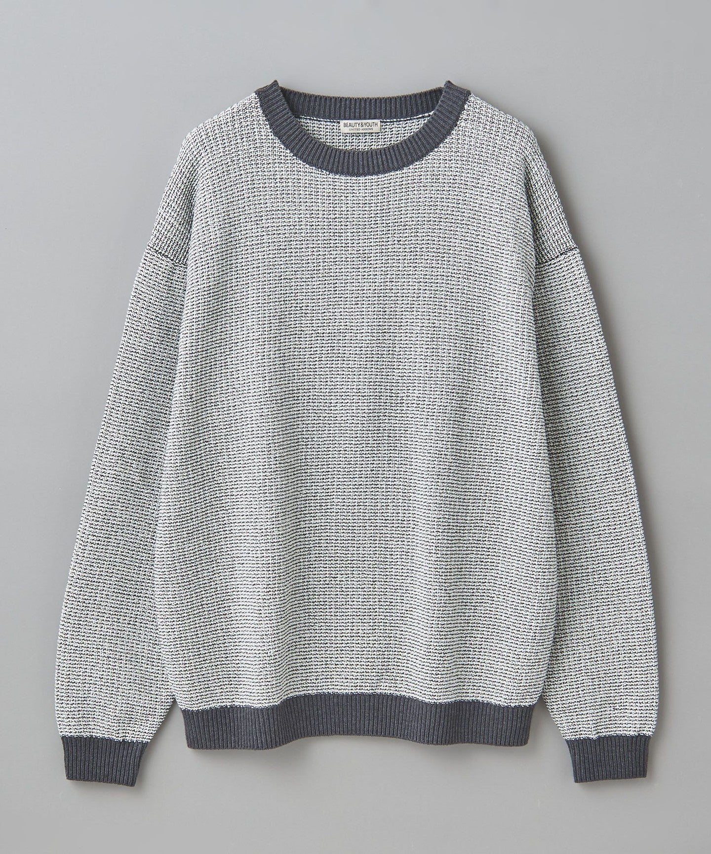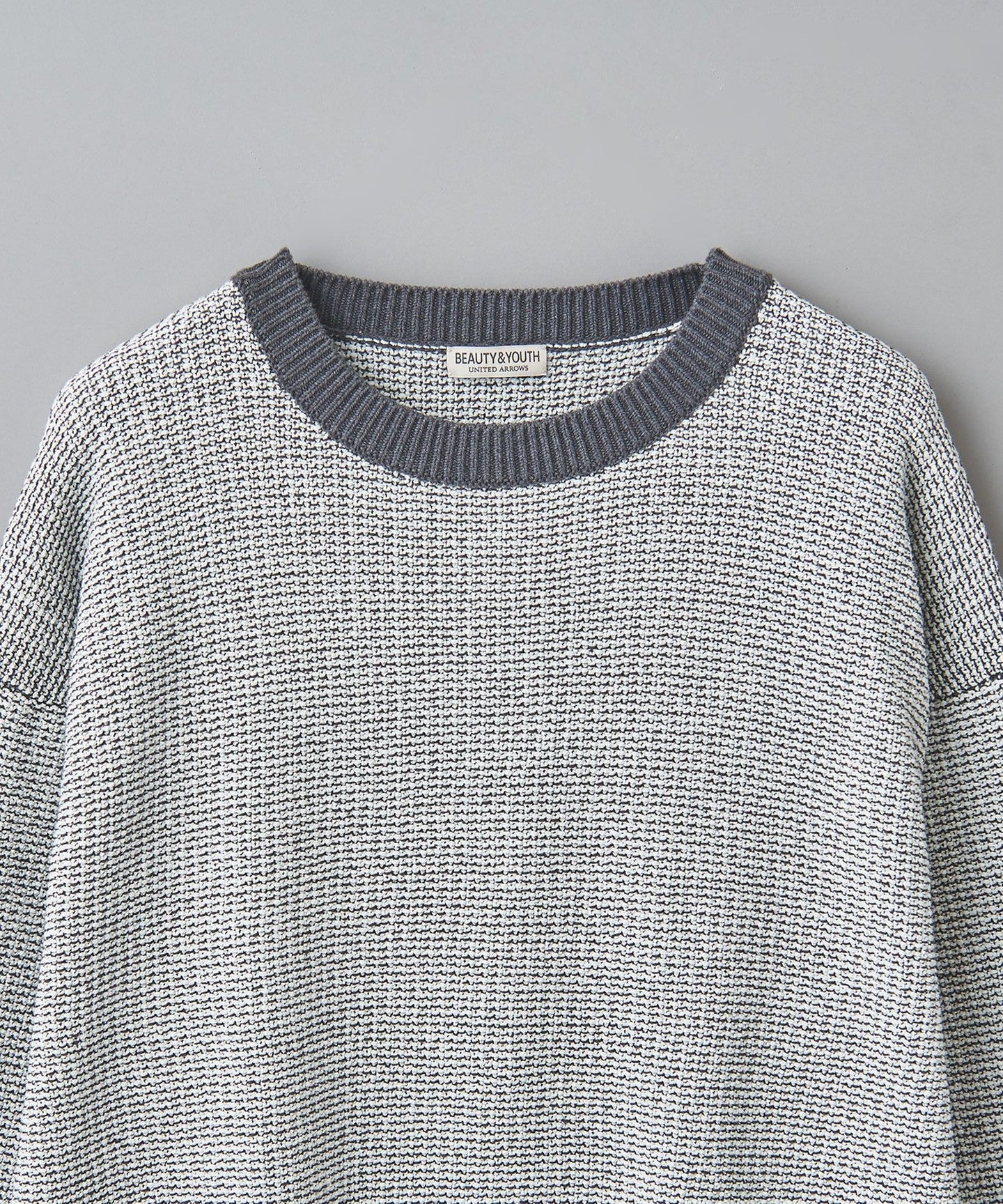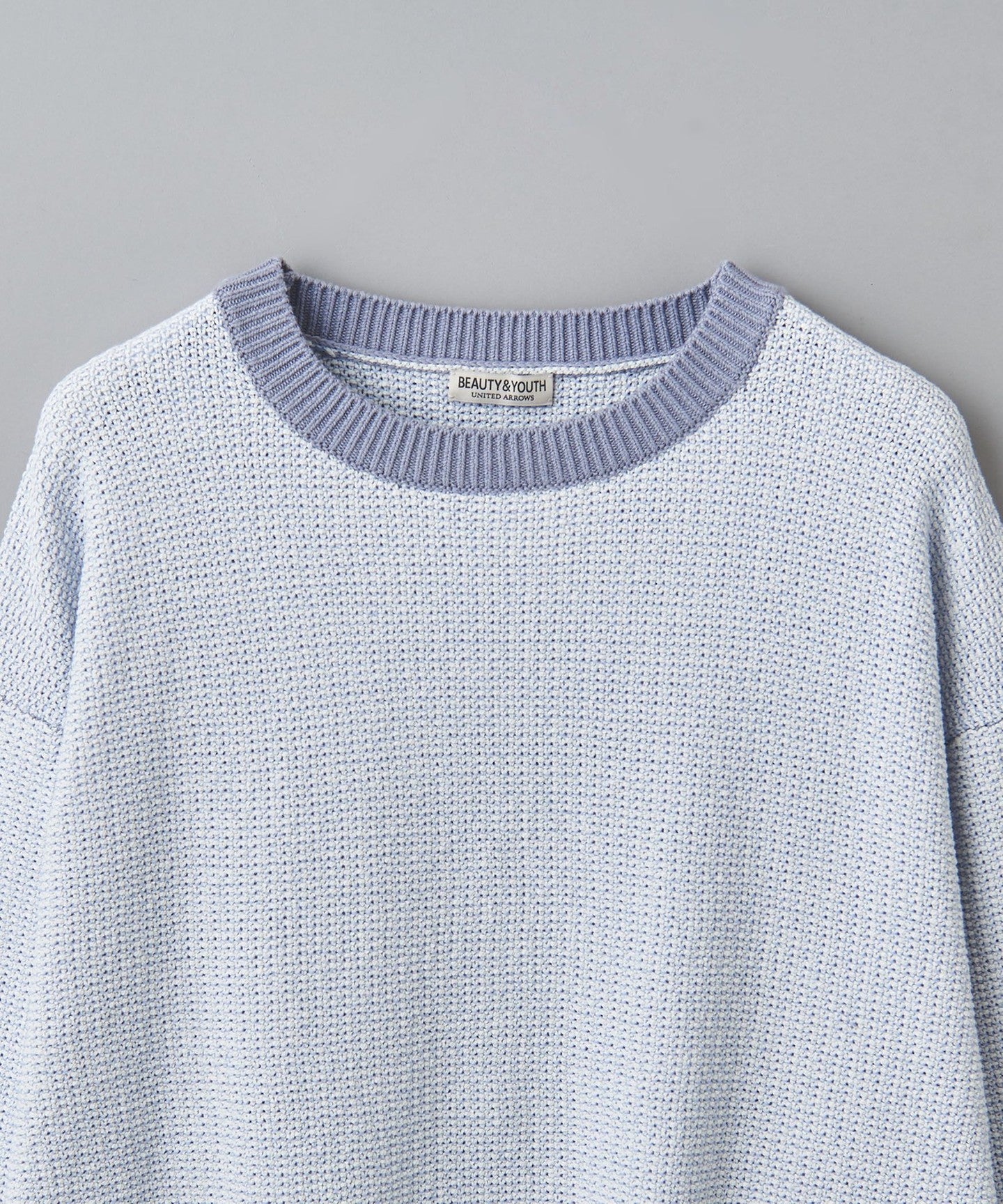 neck, SLEEVEHEMThe crew neck features a subtle ringer design at the opening. KNIT .