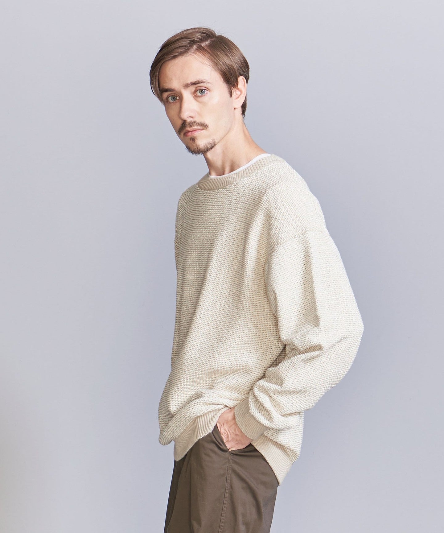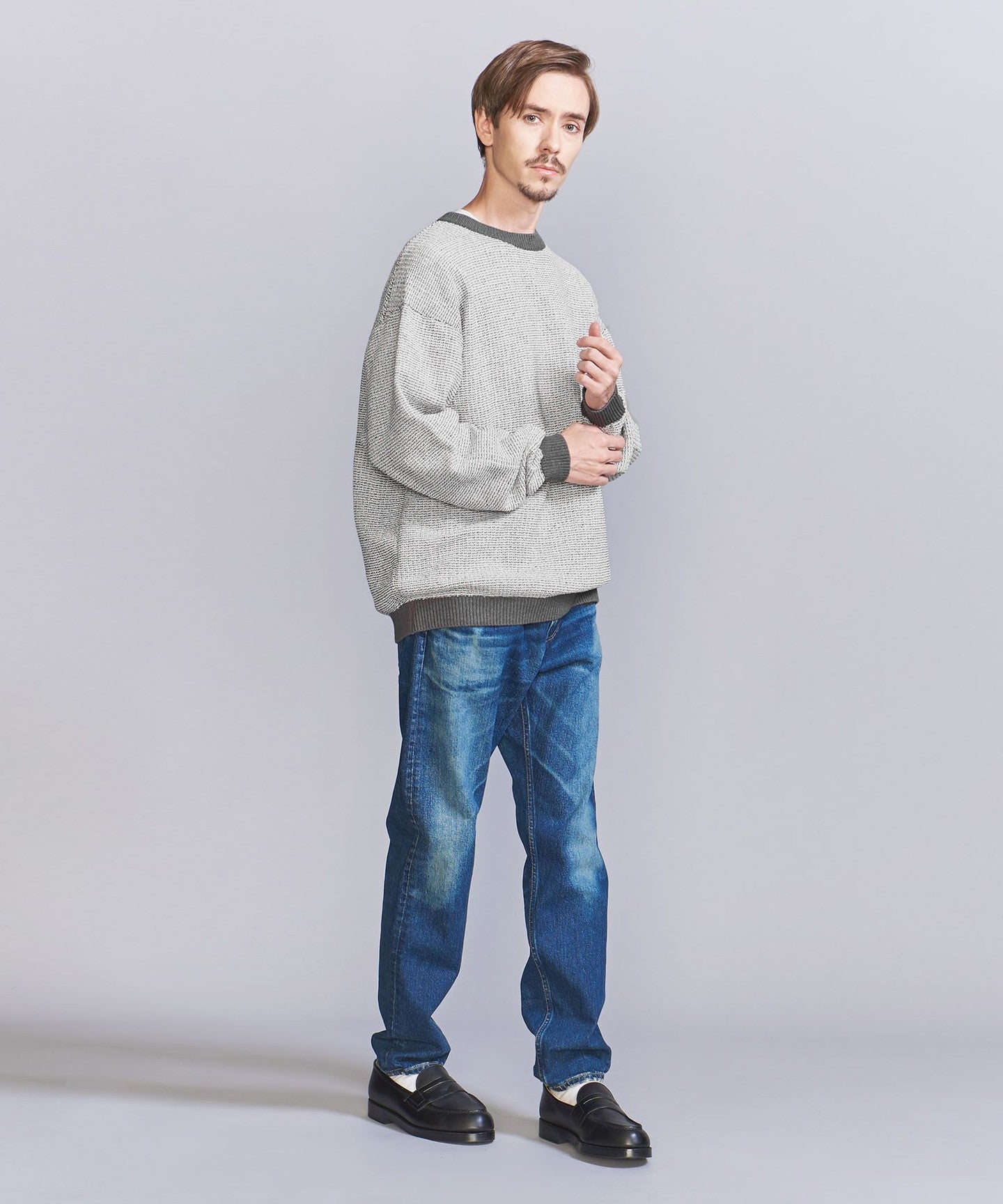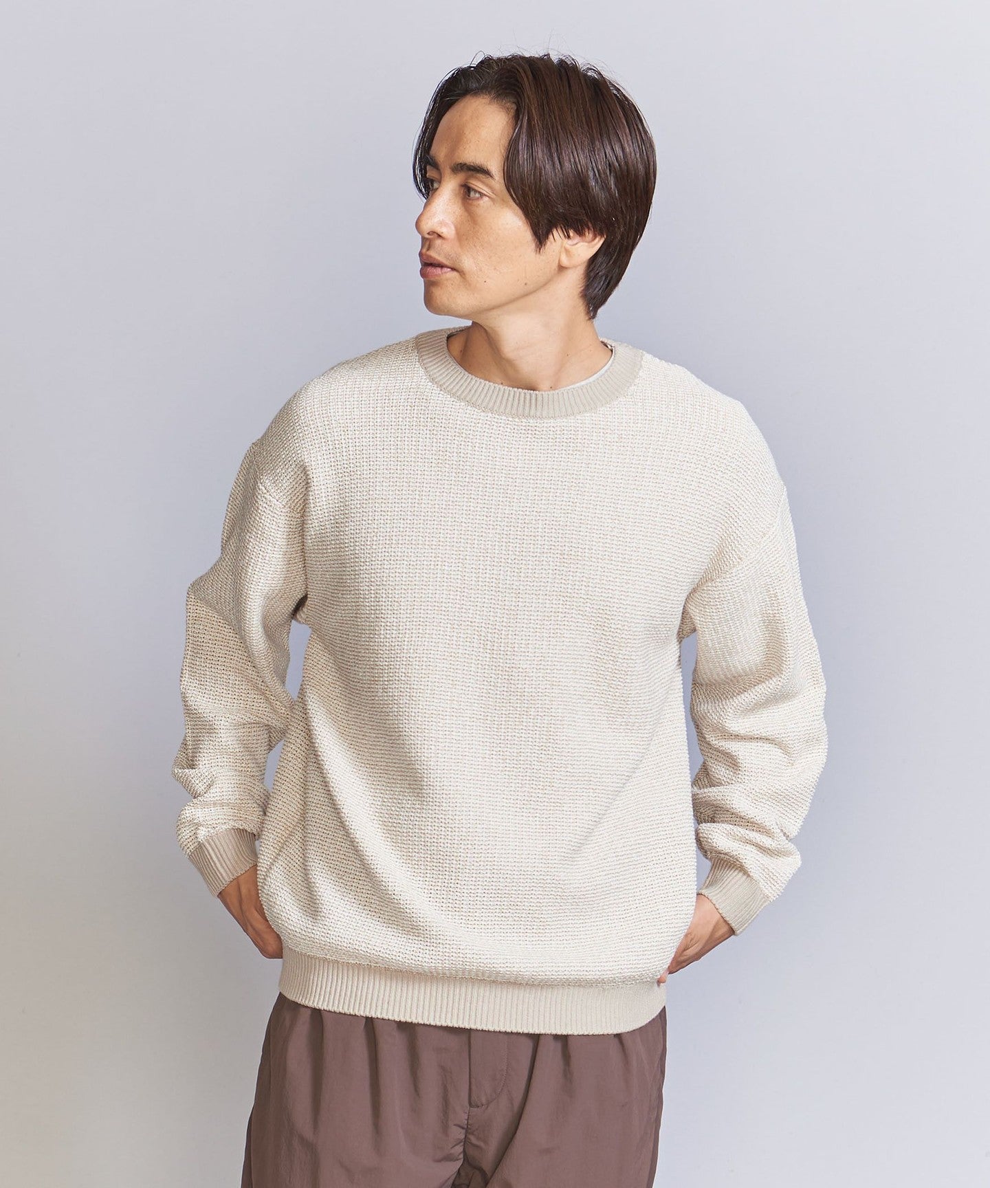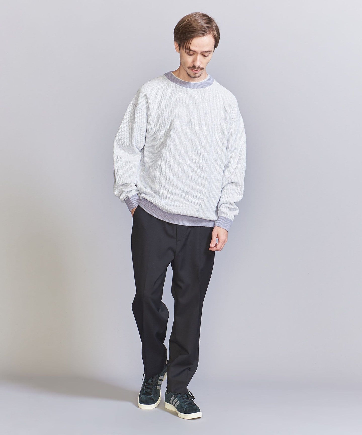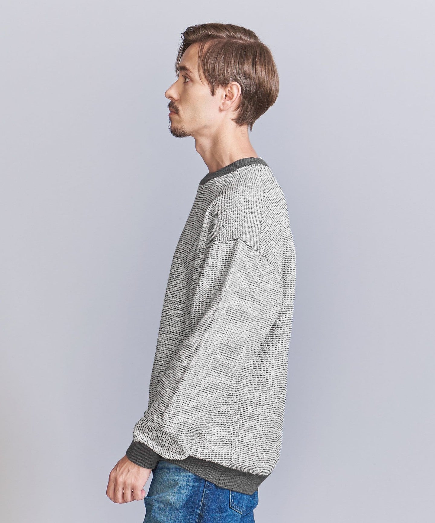 neck, SLEEVEHEMThe crew neck features a subtle ringer design at the opening. KNIT .