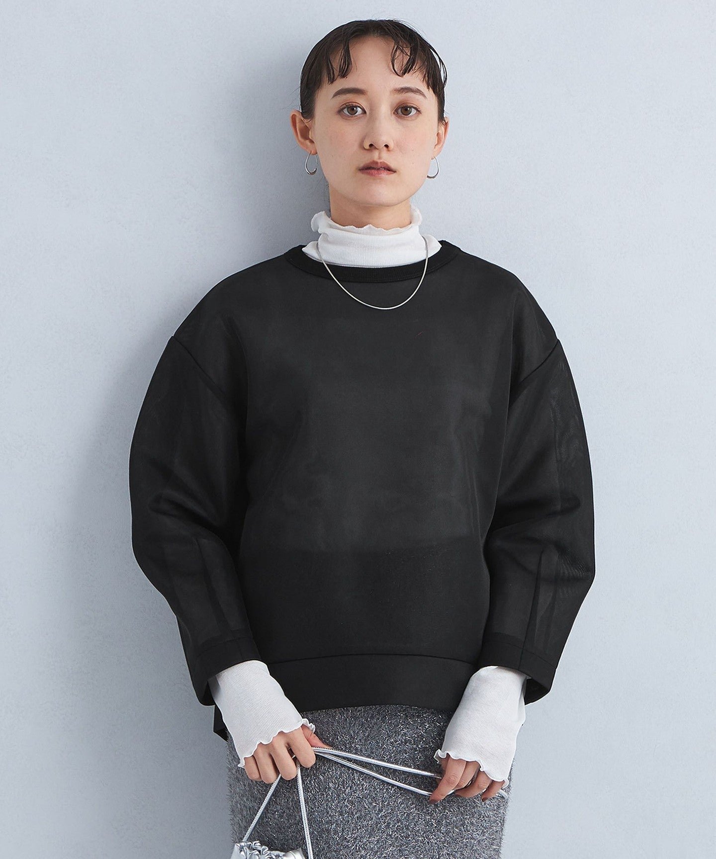 green label relaxingMesh Skipper Knit Pullover - Washable-