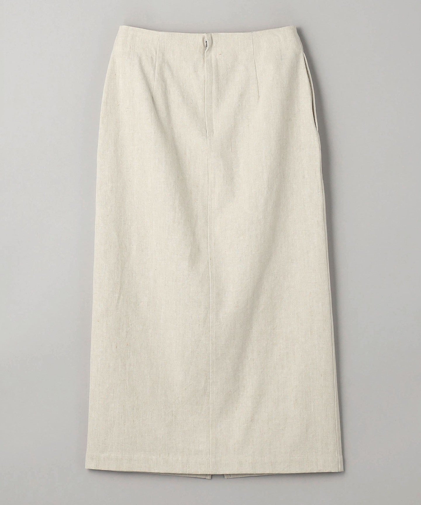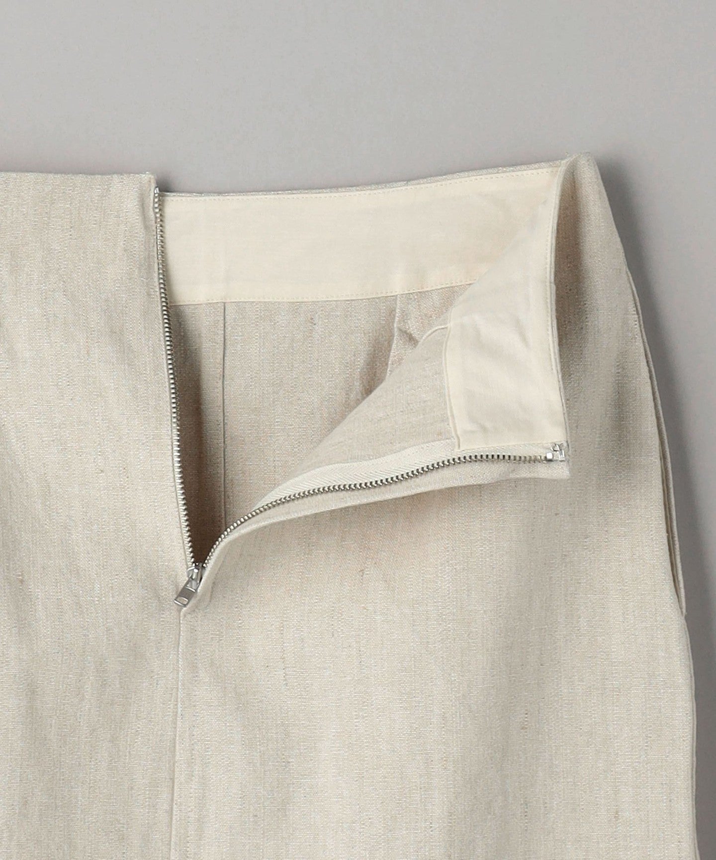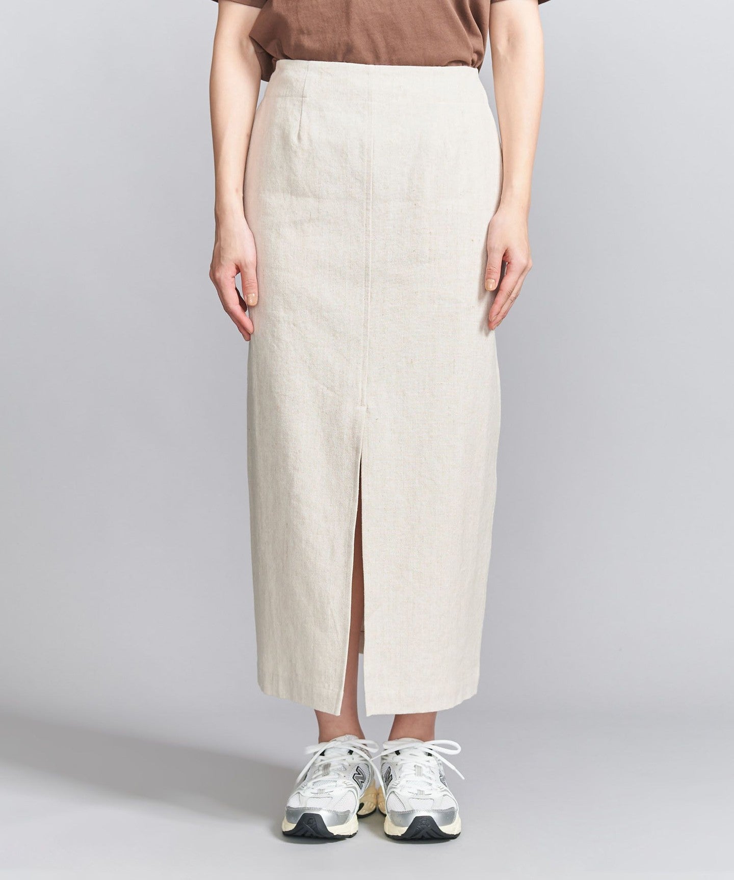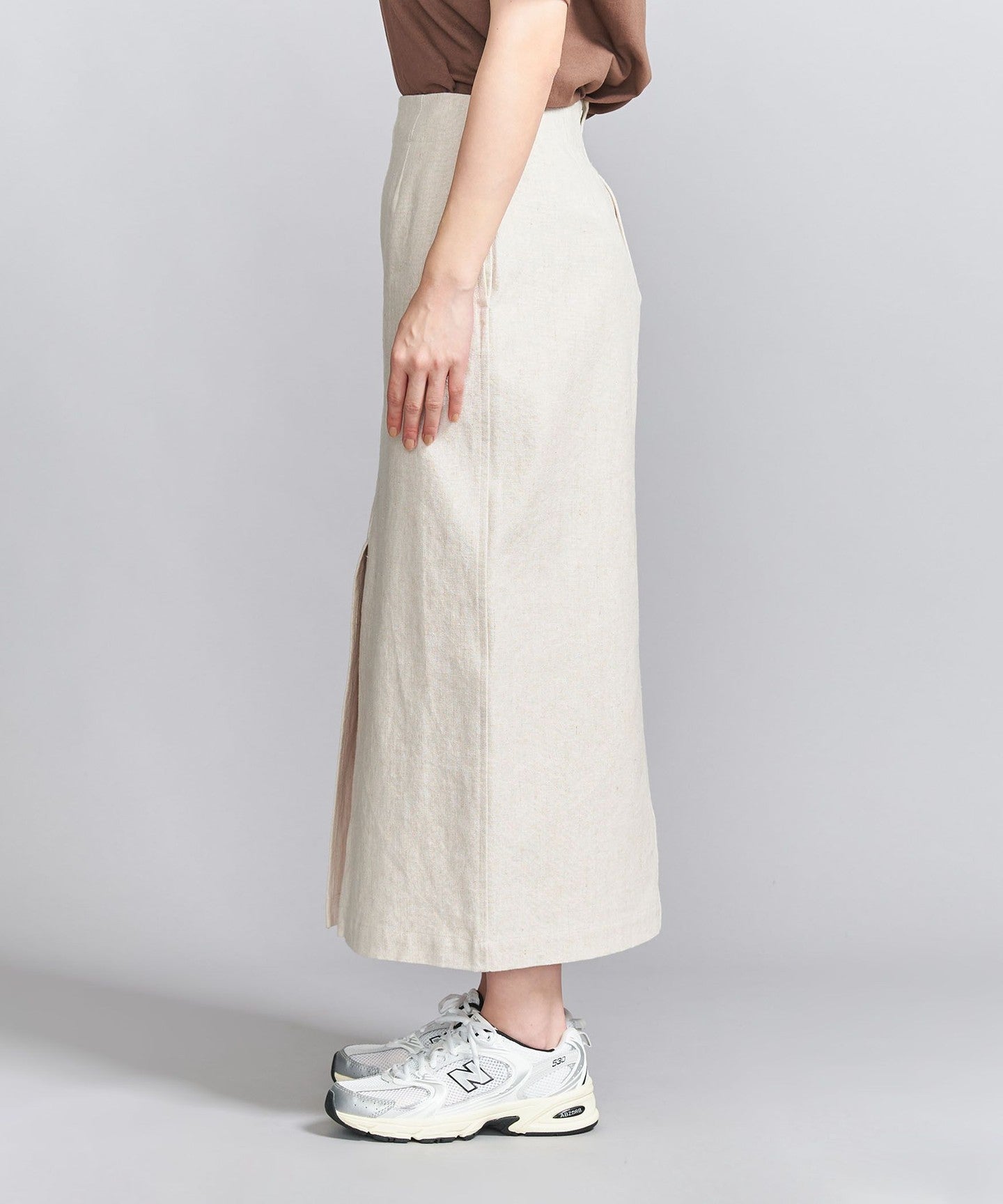 A slit skirt that eliminates accessories such as a belt and makes the most of the texture of the fabric.