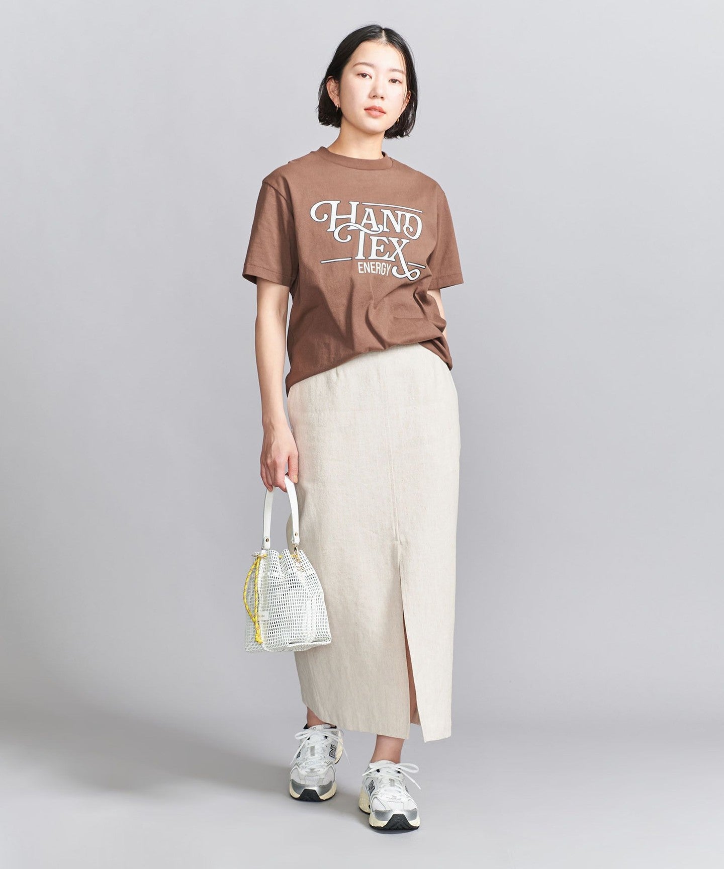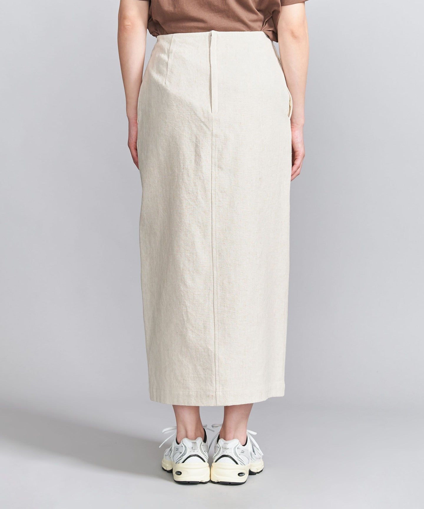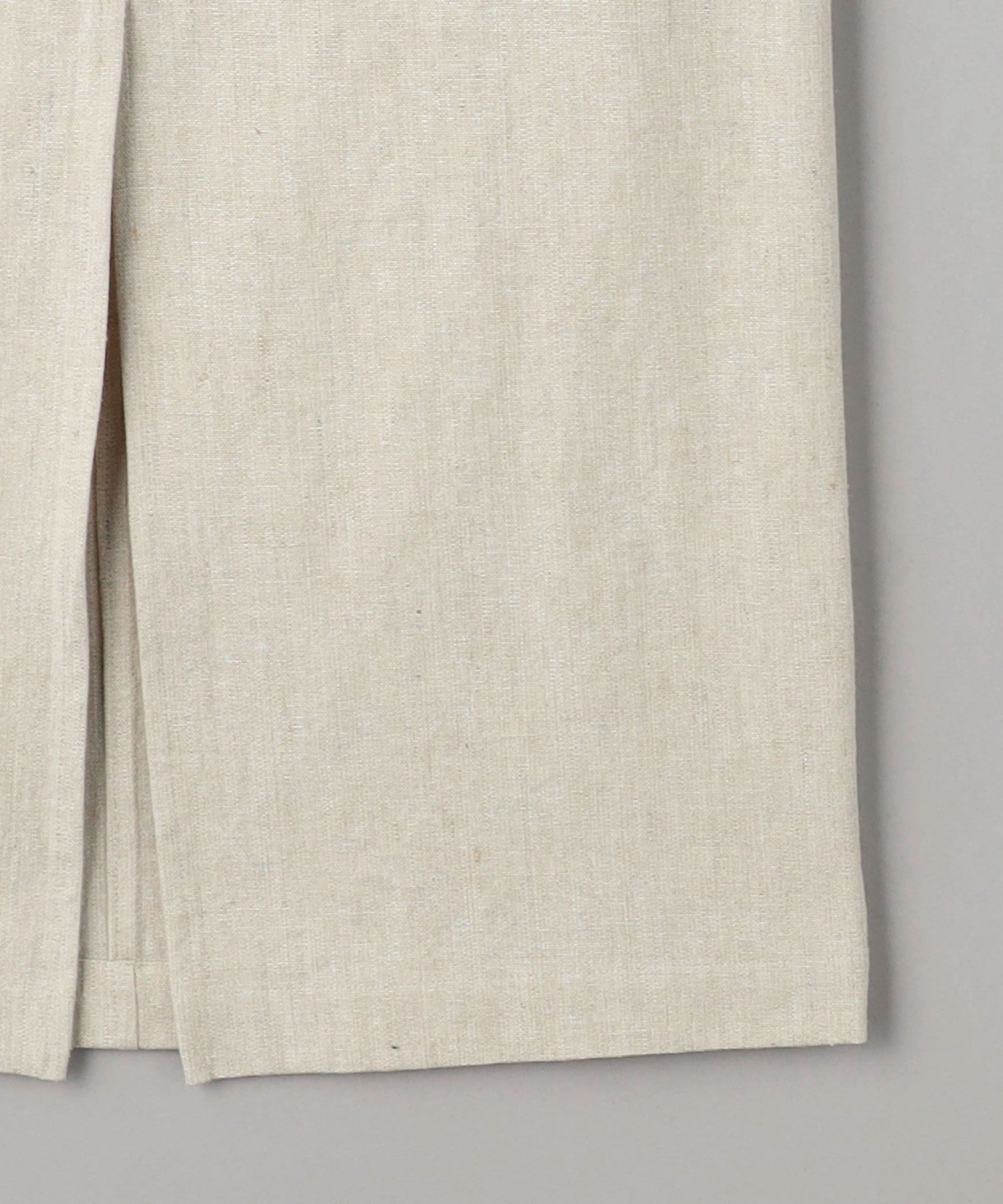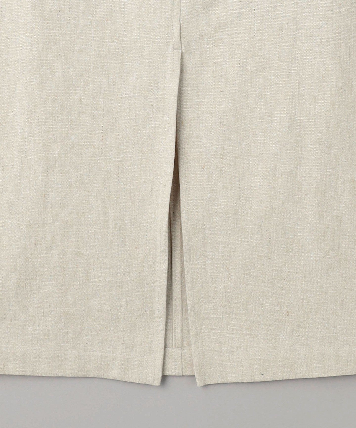 A slit skirt that eliminates accessories such as a belt and makes the most of the texture of the fabric.