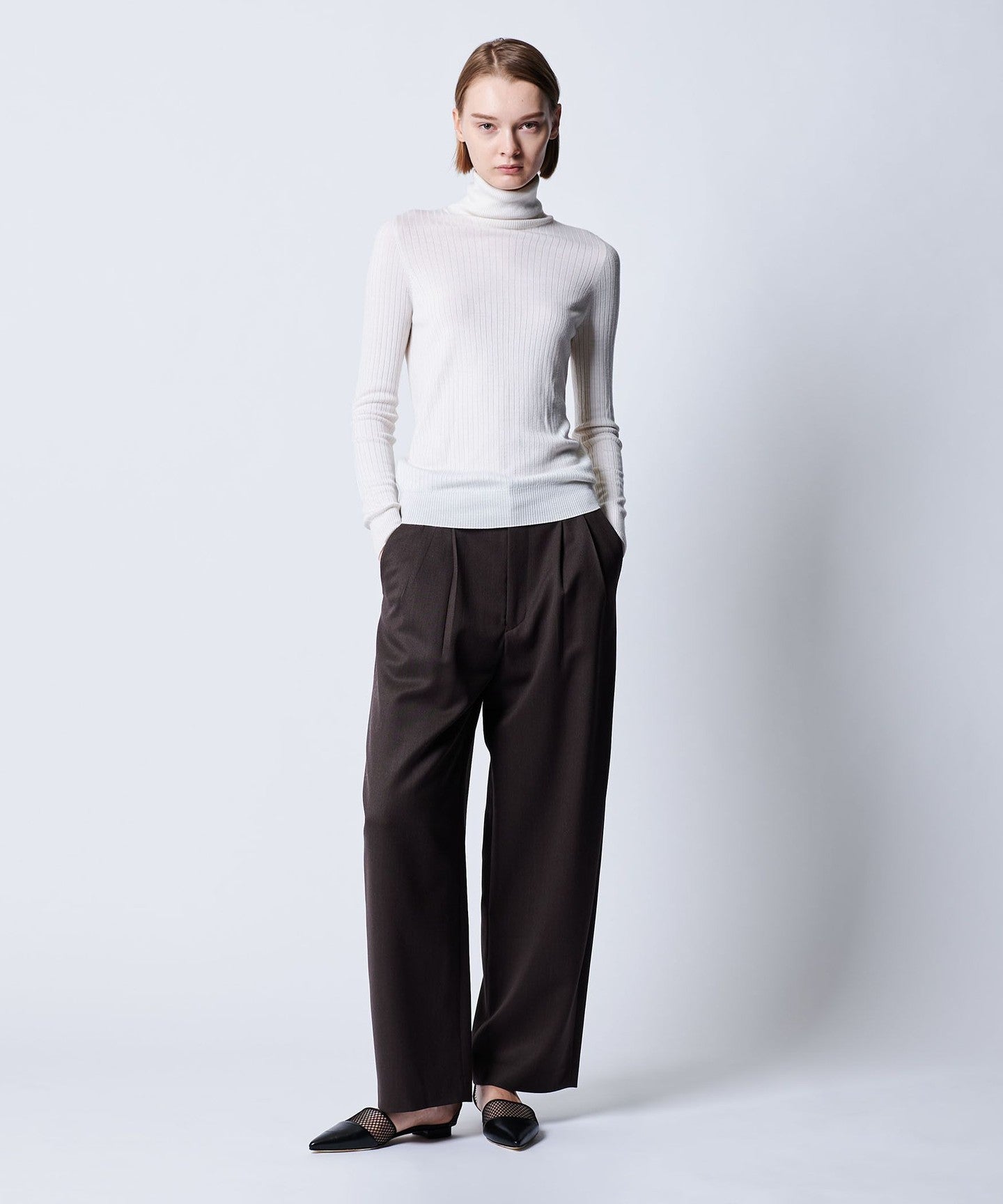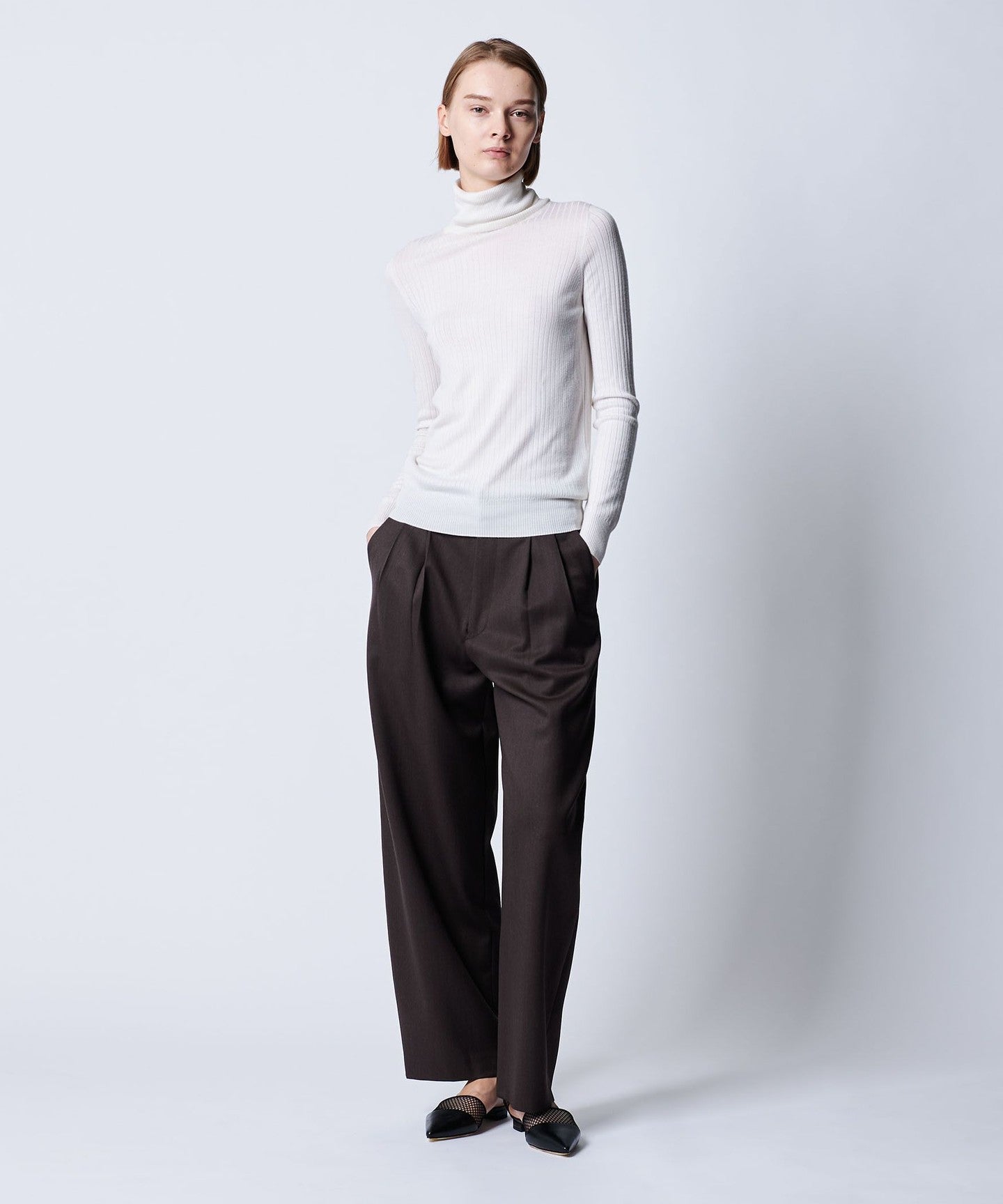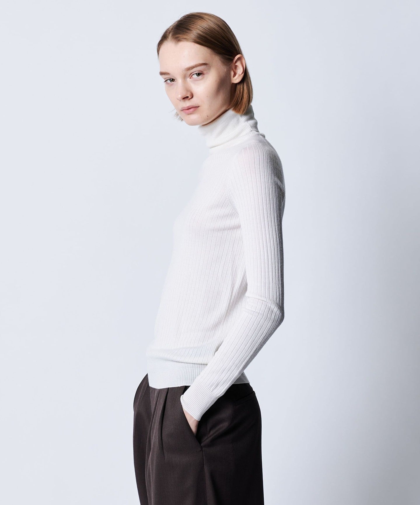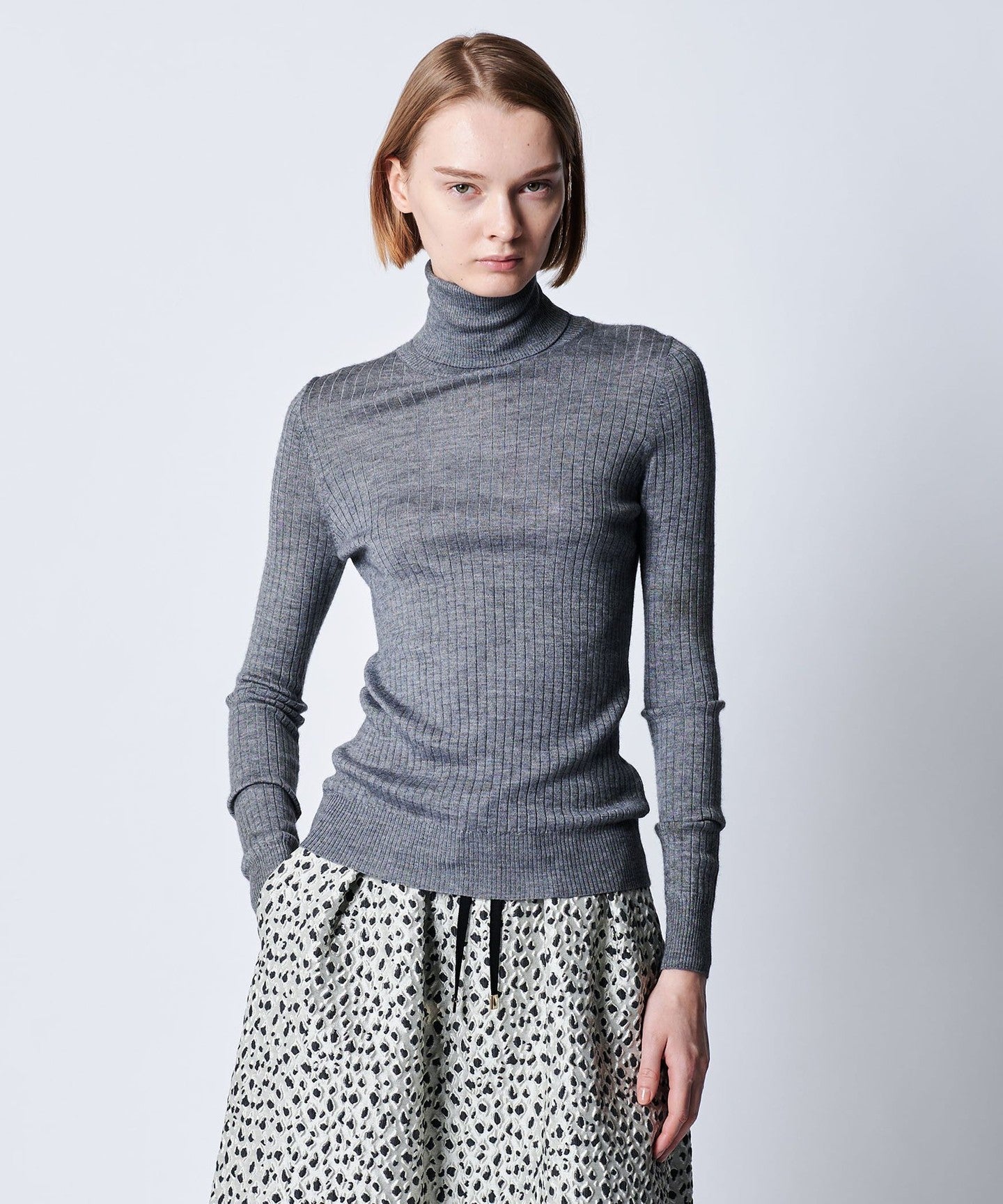 High-gauge ribbed turtleneck knit with a smooth feel