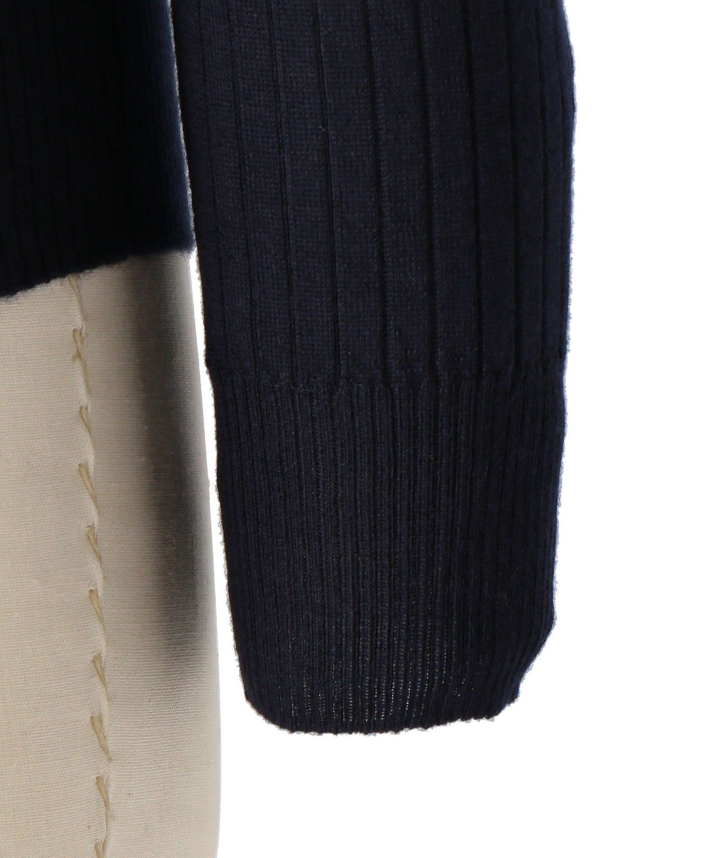 A knit made from cashmere and silk yarns and knitted at 18 gauge.