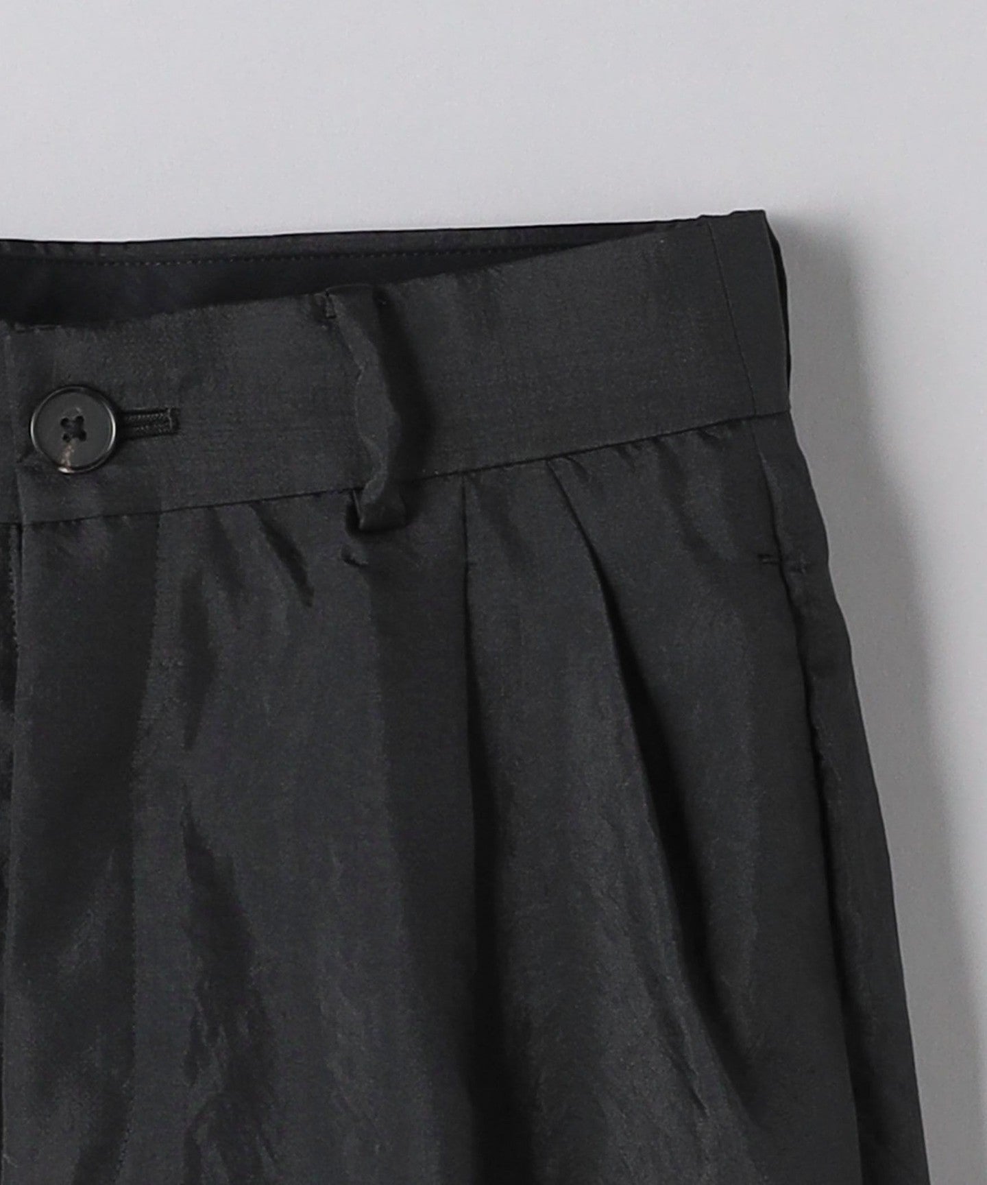 A wide skirt with a mannish design and feminine sheer material. PANTS .
