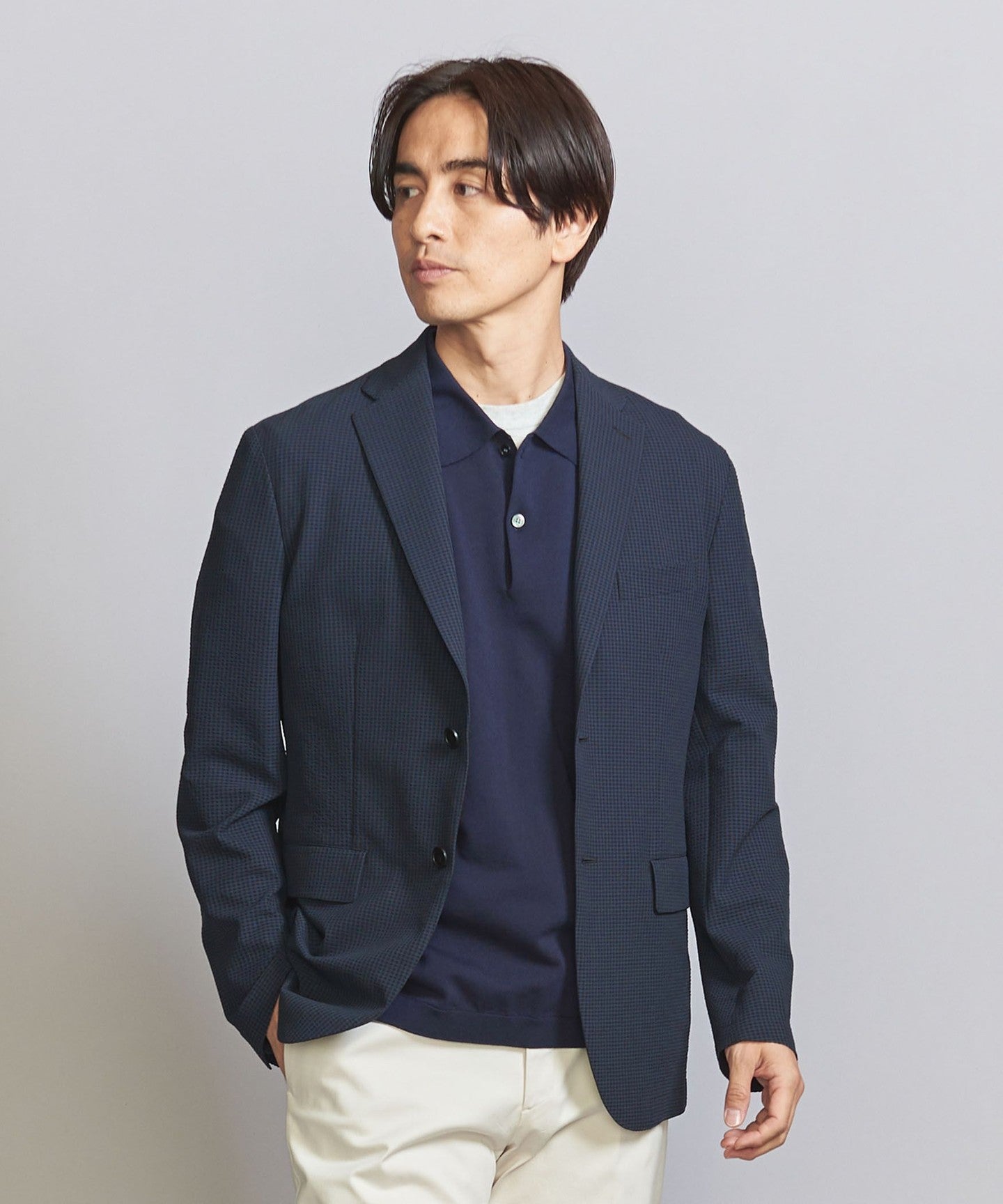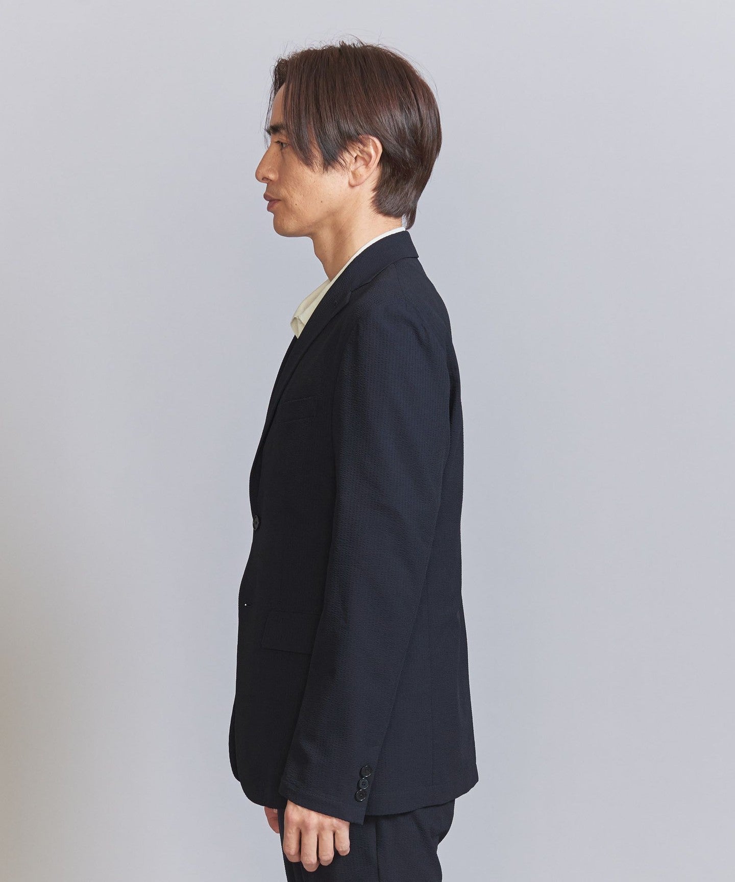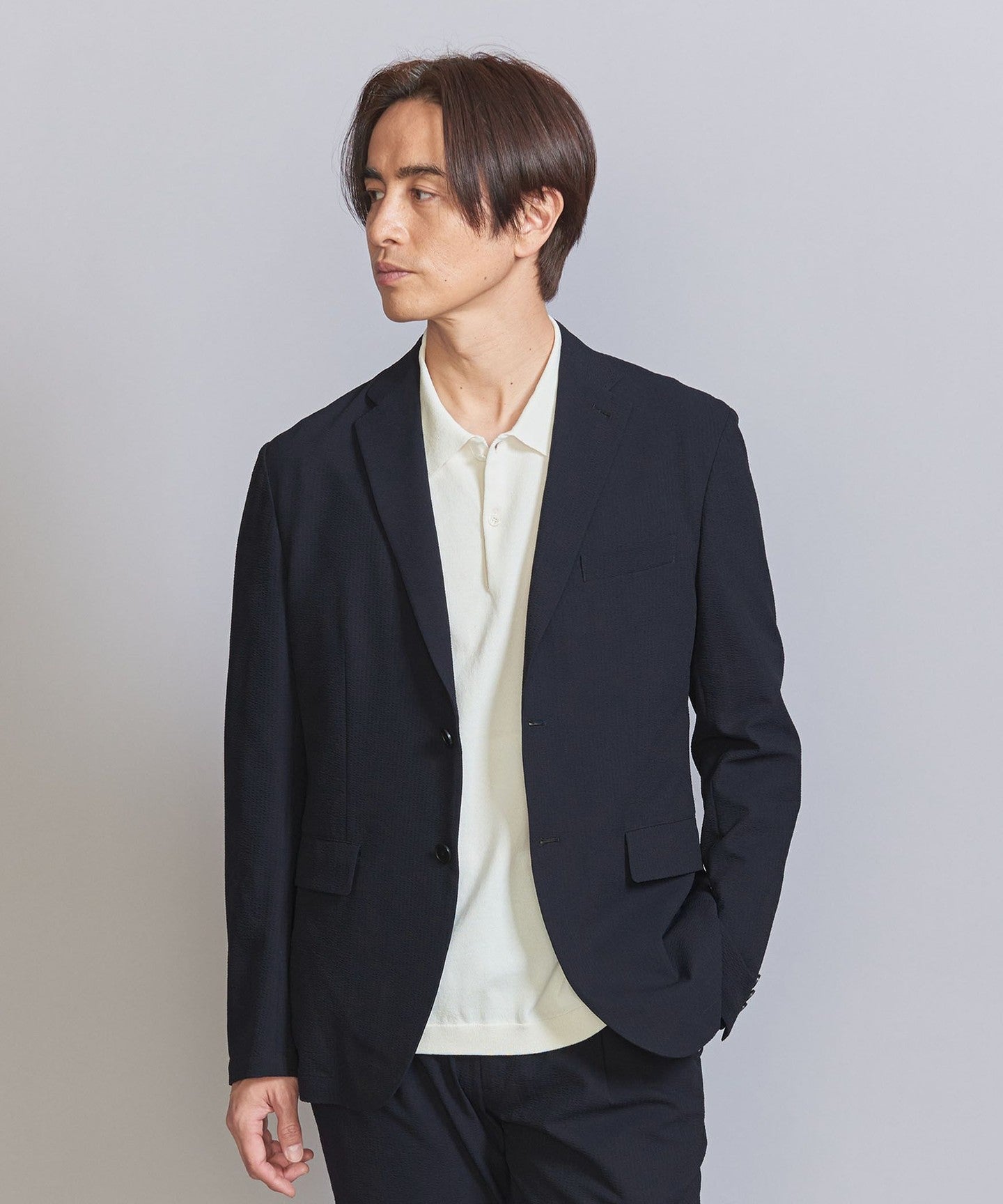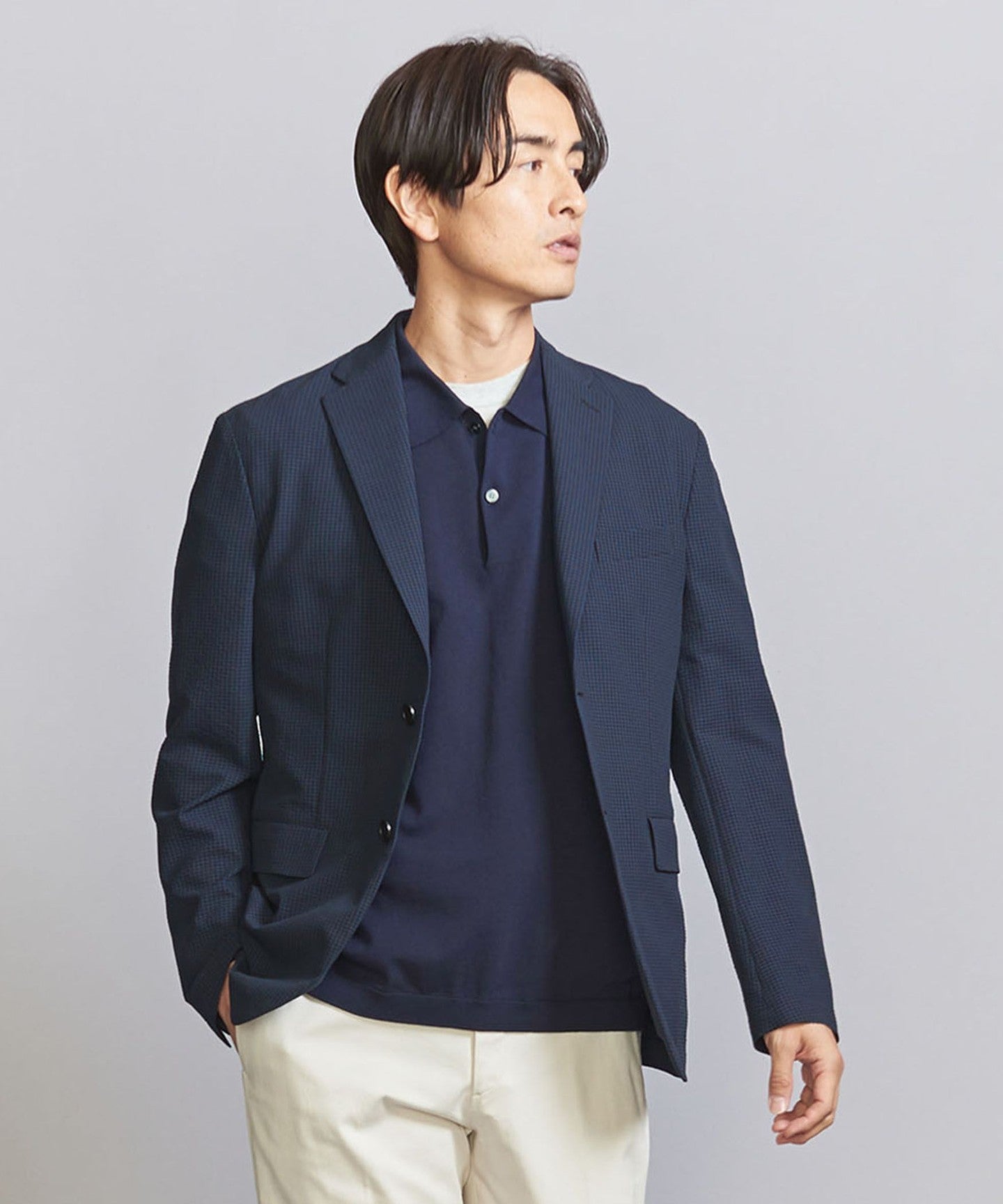 The jacket can be worn on its own, but we also have pants made from the same fabric, so we recommend coordinating them as a set.