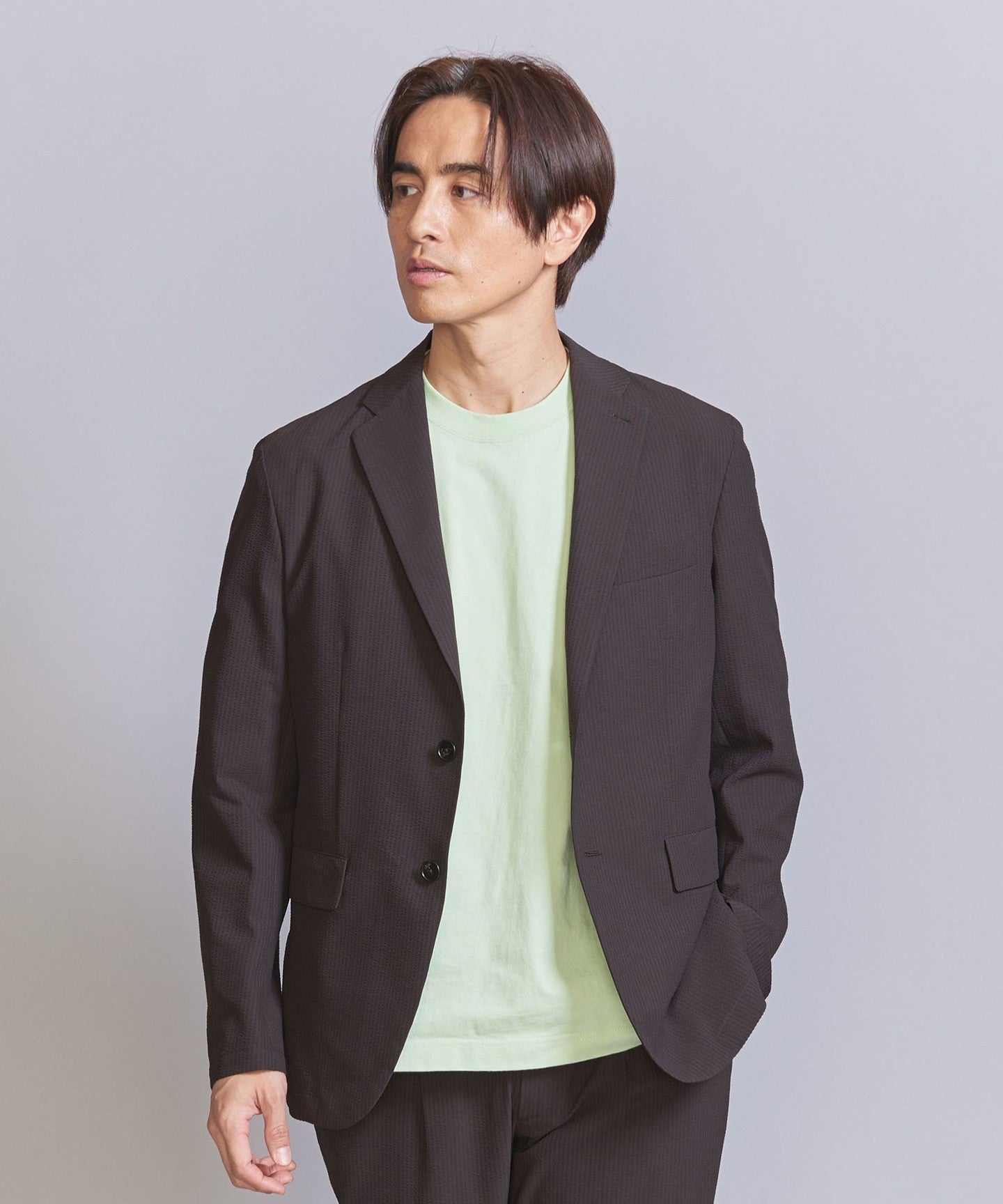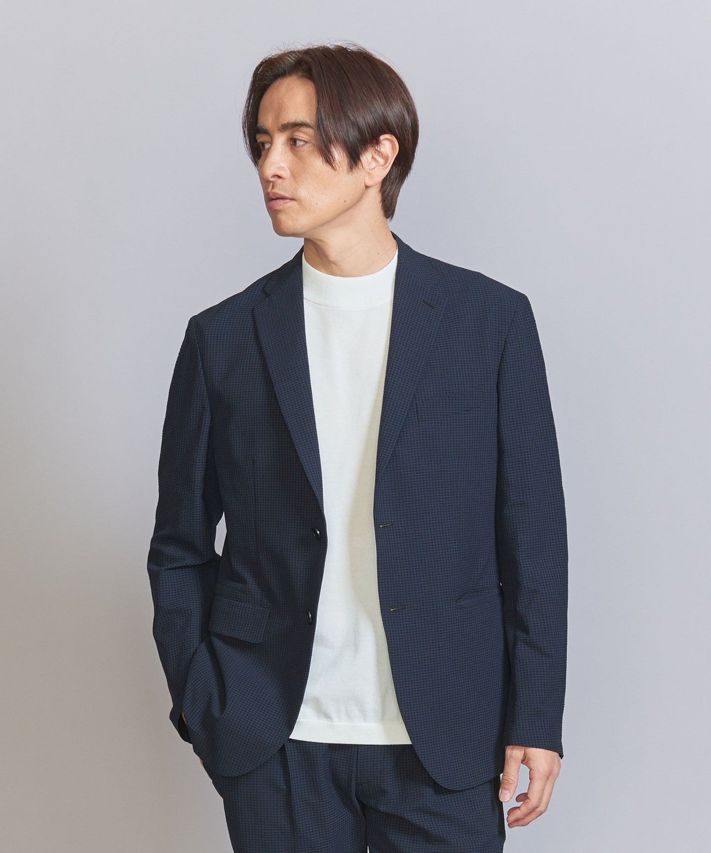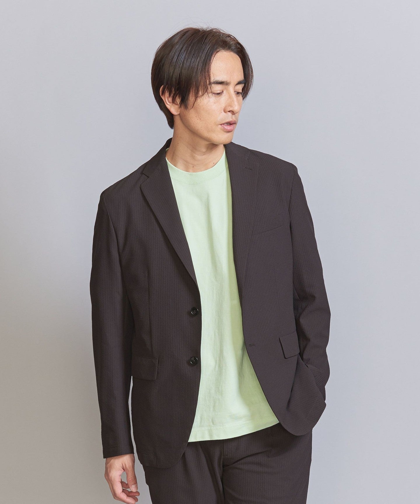 The jacket can be worn on its own, but we also have pants made from the same fabric, so we recommend coordinating them as a set.