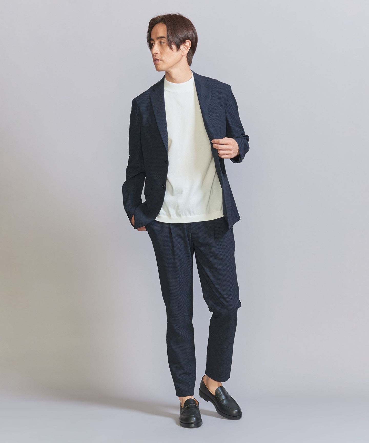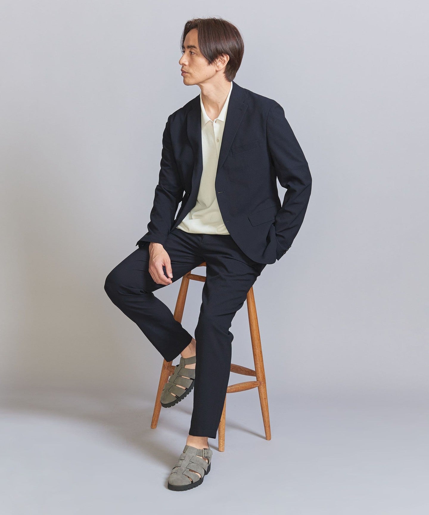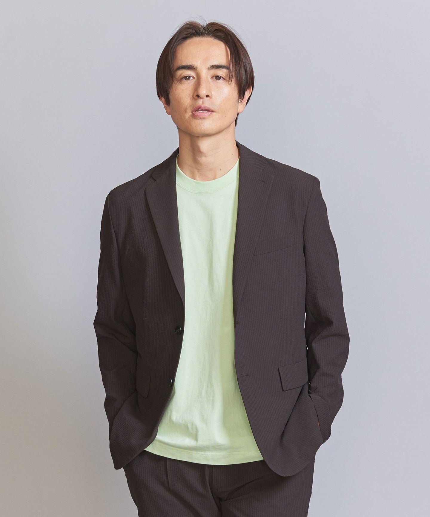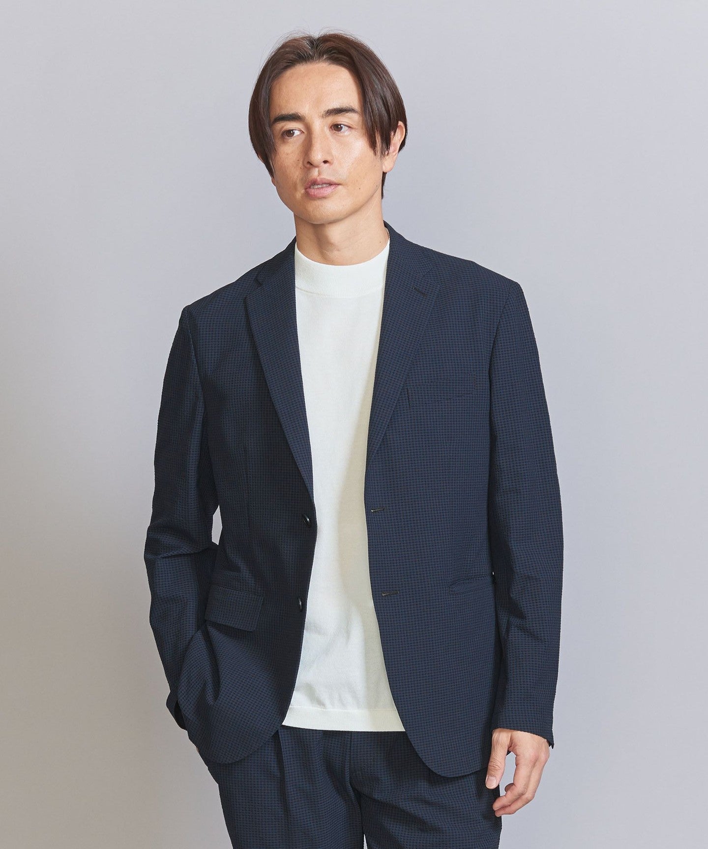 The jacket can be worn on its own, but we also have pants made from the same fabric, so we recommend coordinating them as a set.