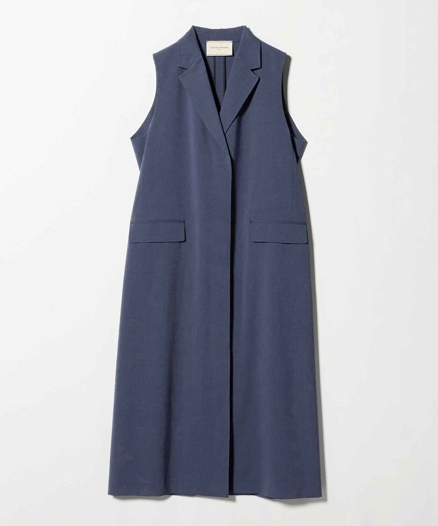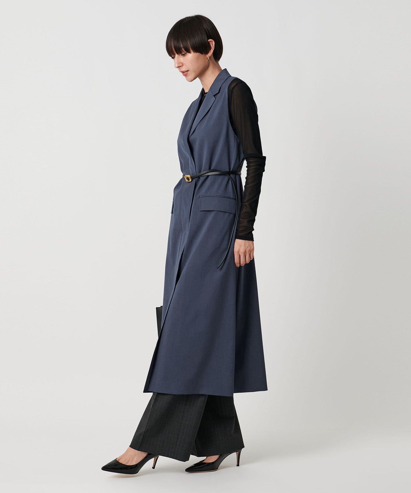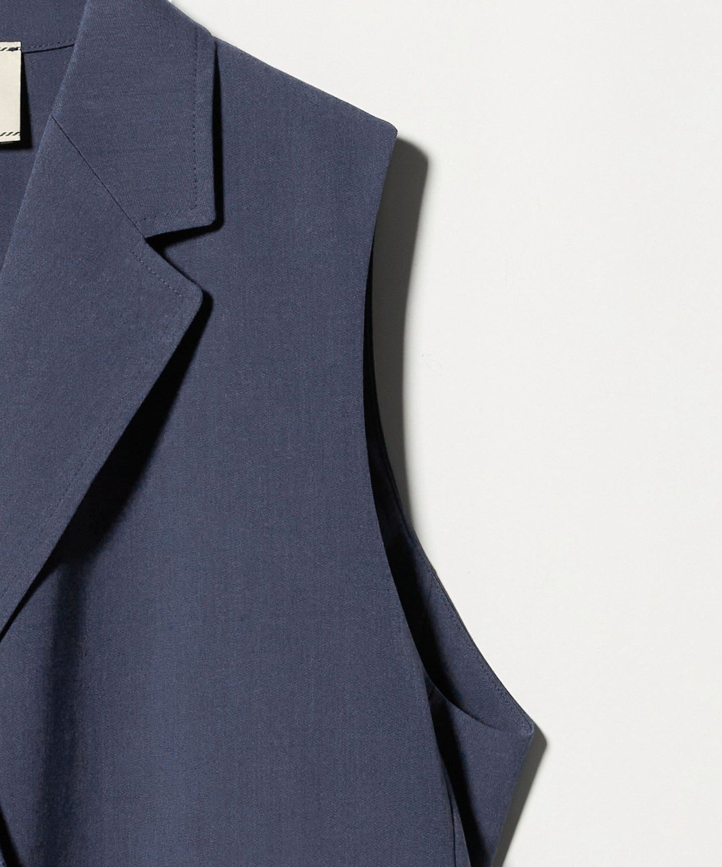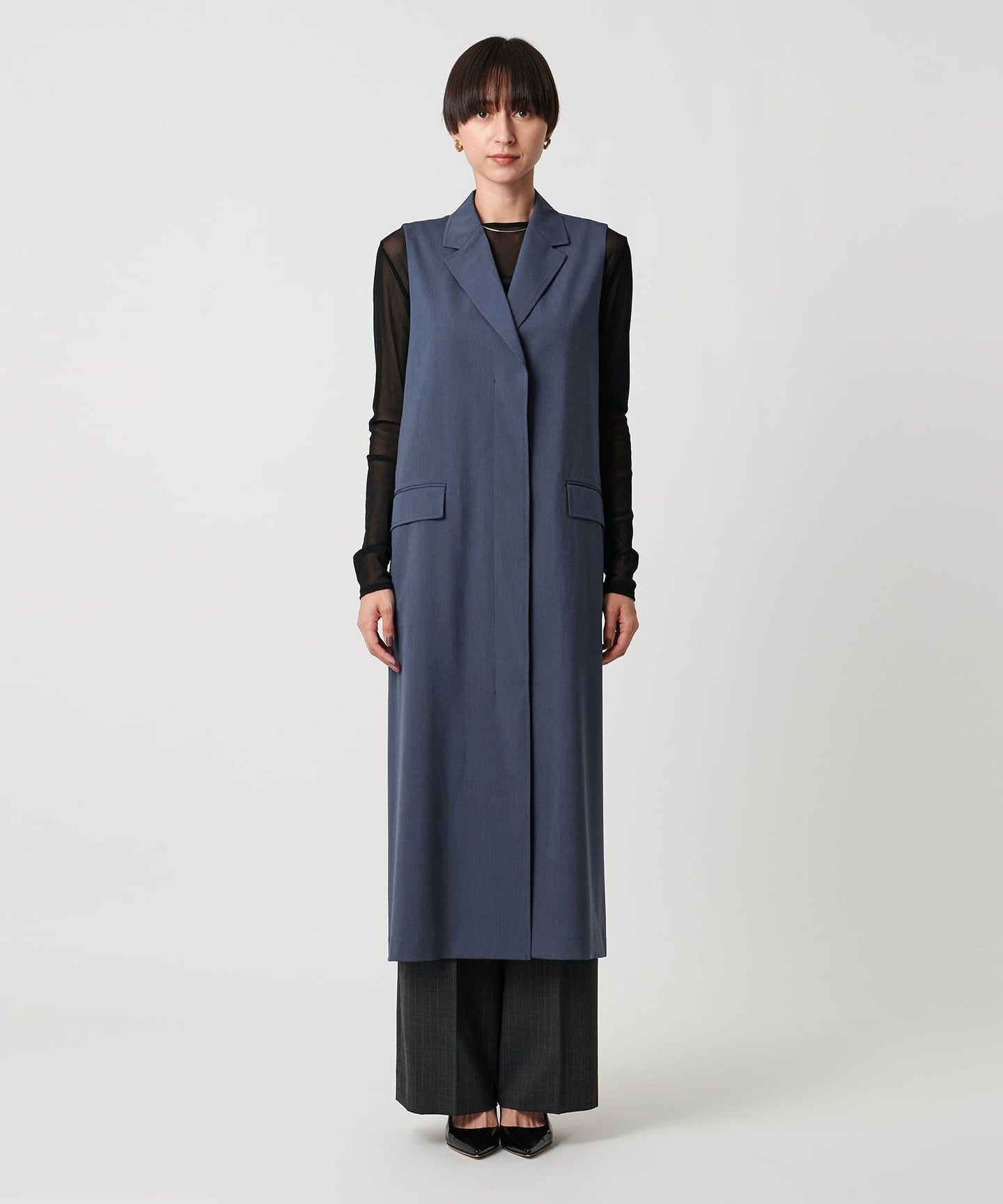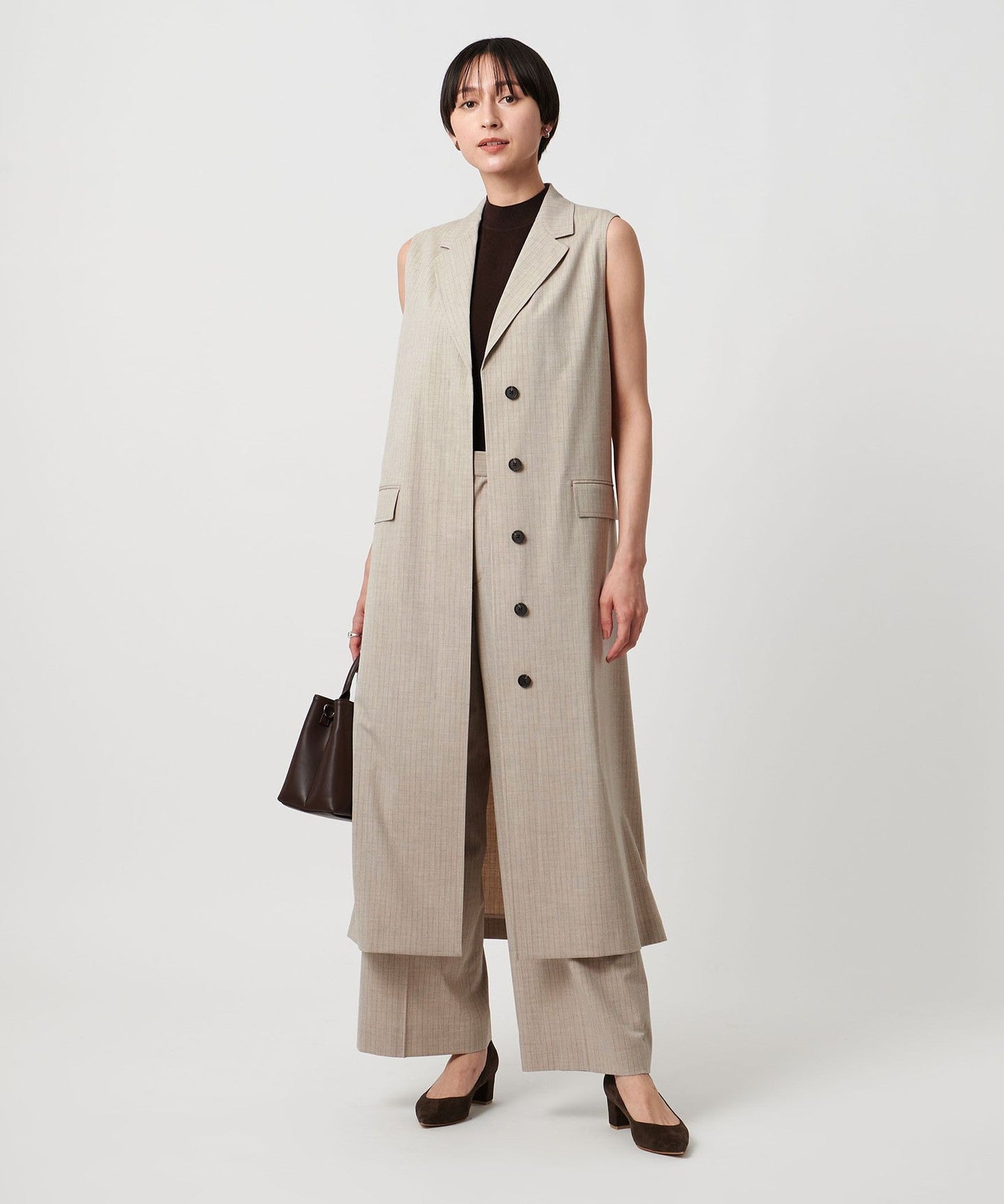 It can be worn as a set with pants made of the same material, or as a long vest with neat dress pants or denim, and goes well with a variety of bottoms.