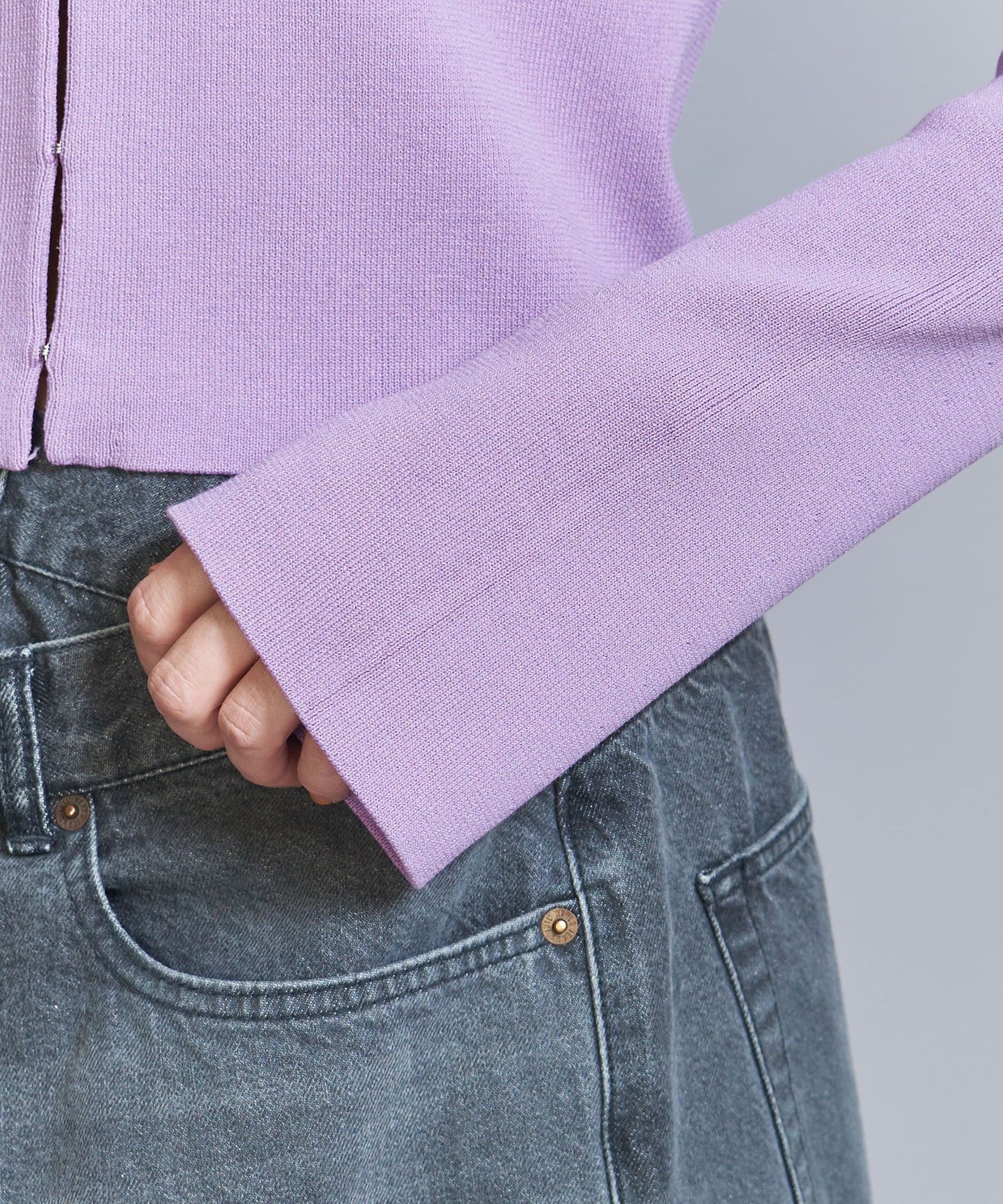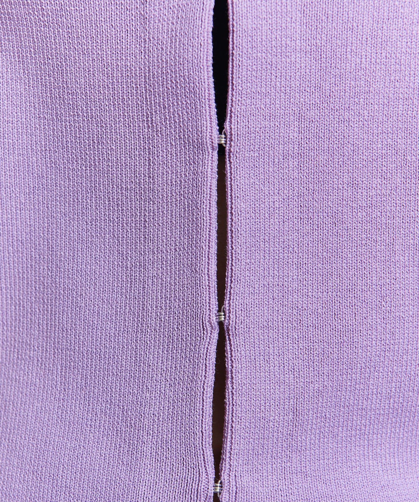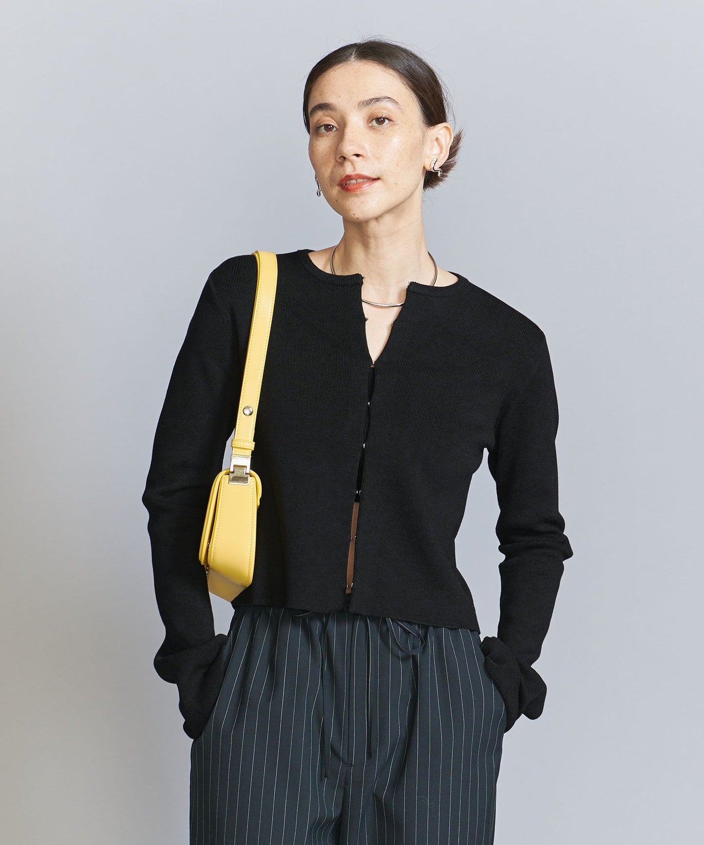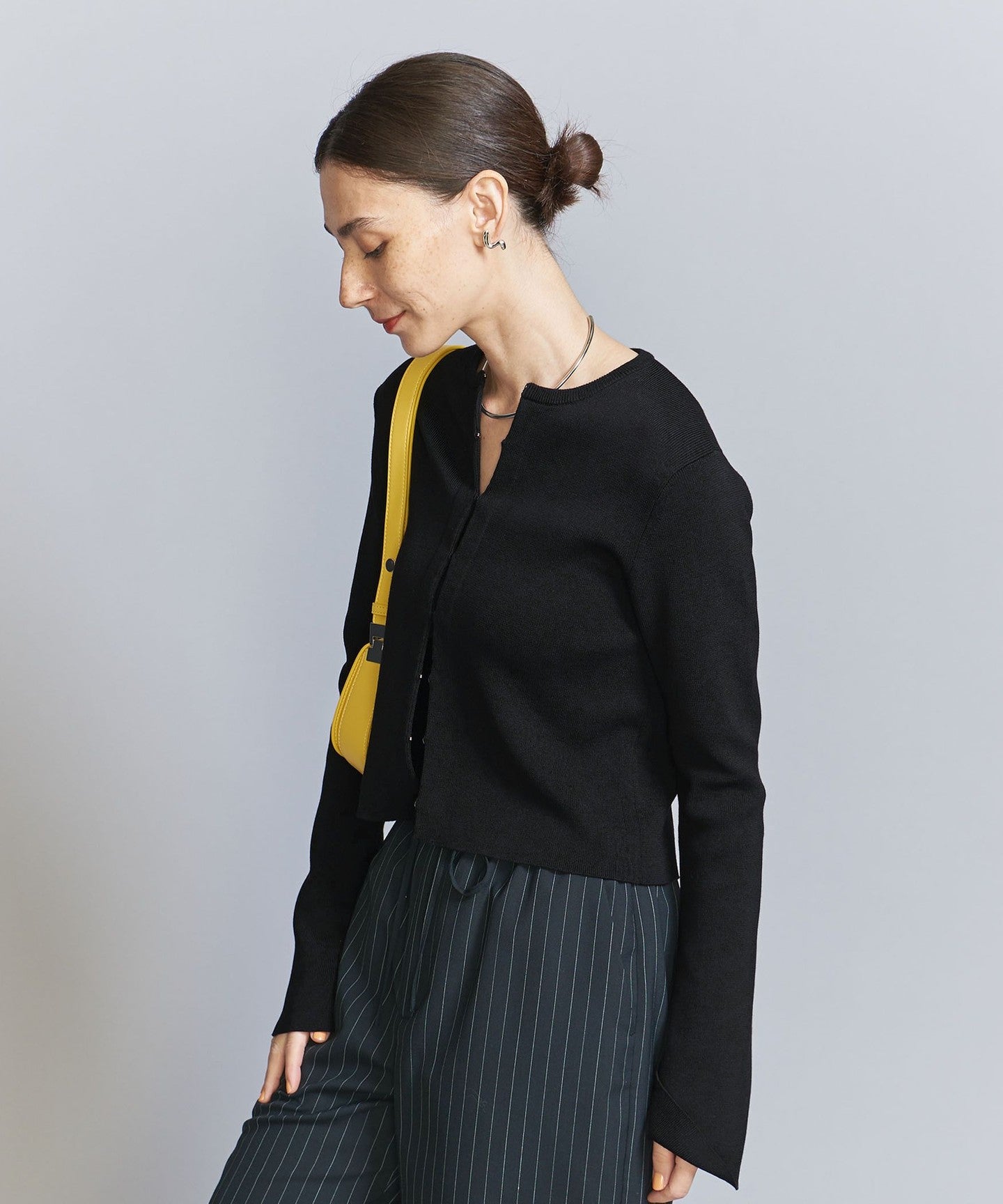 A simple, compact knit cardigan with a ribbed construction that is comfortable to wear.