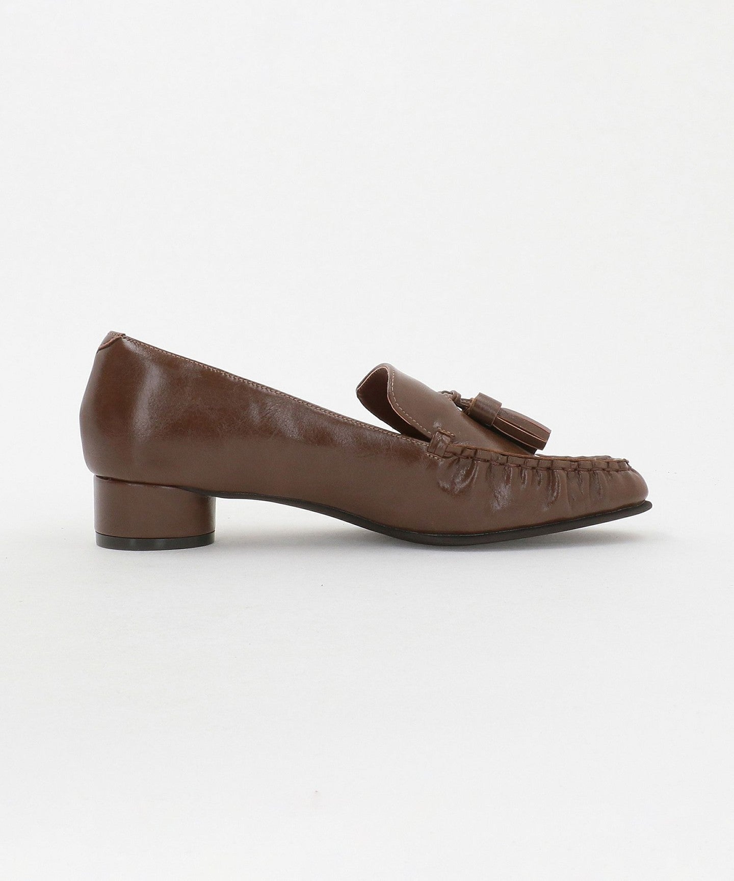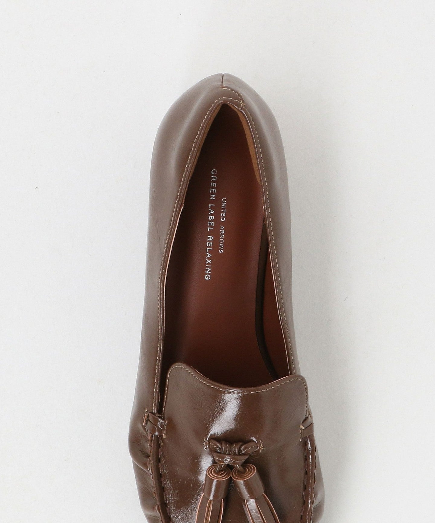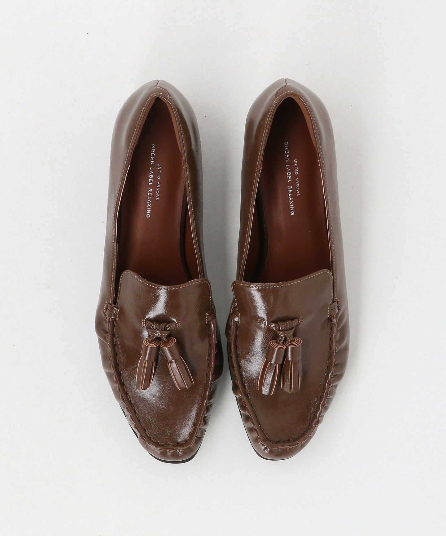 The subtle toe peeking out from the bottom of the wide pants and the tassels add a touch of casualness.