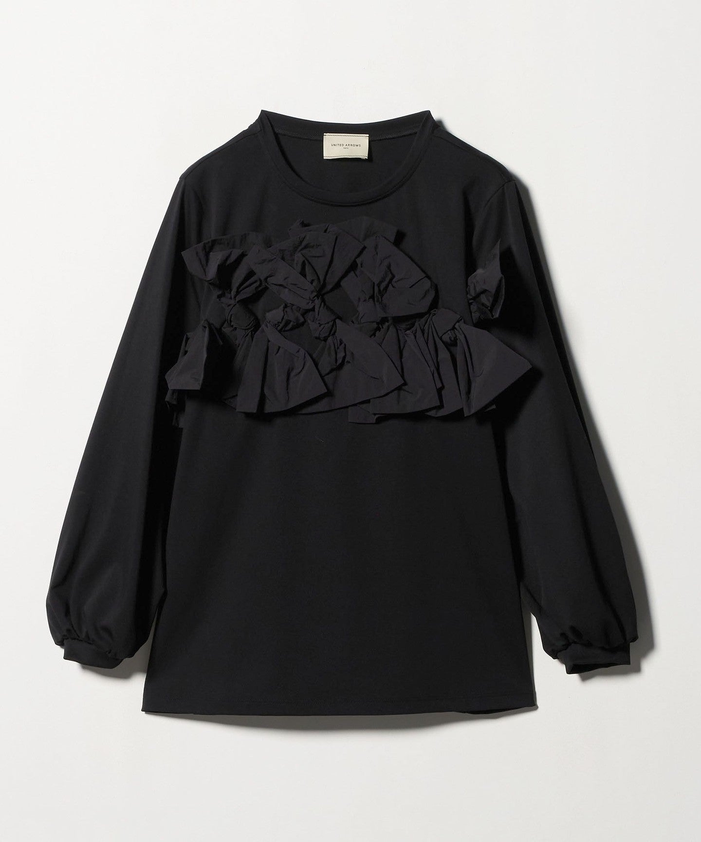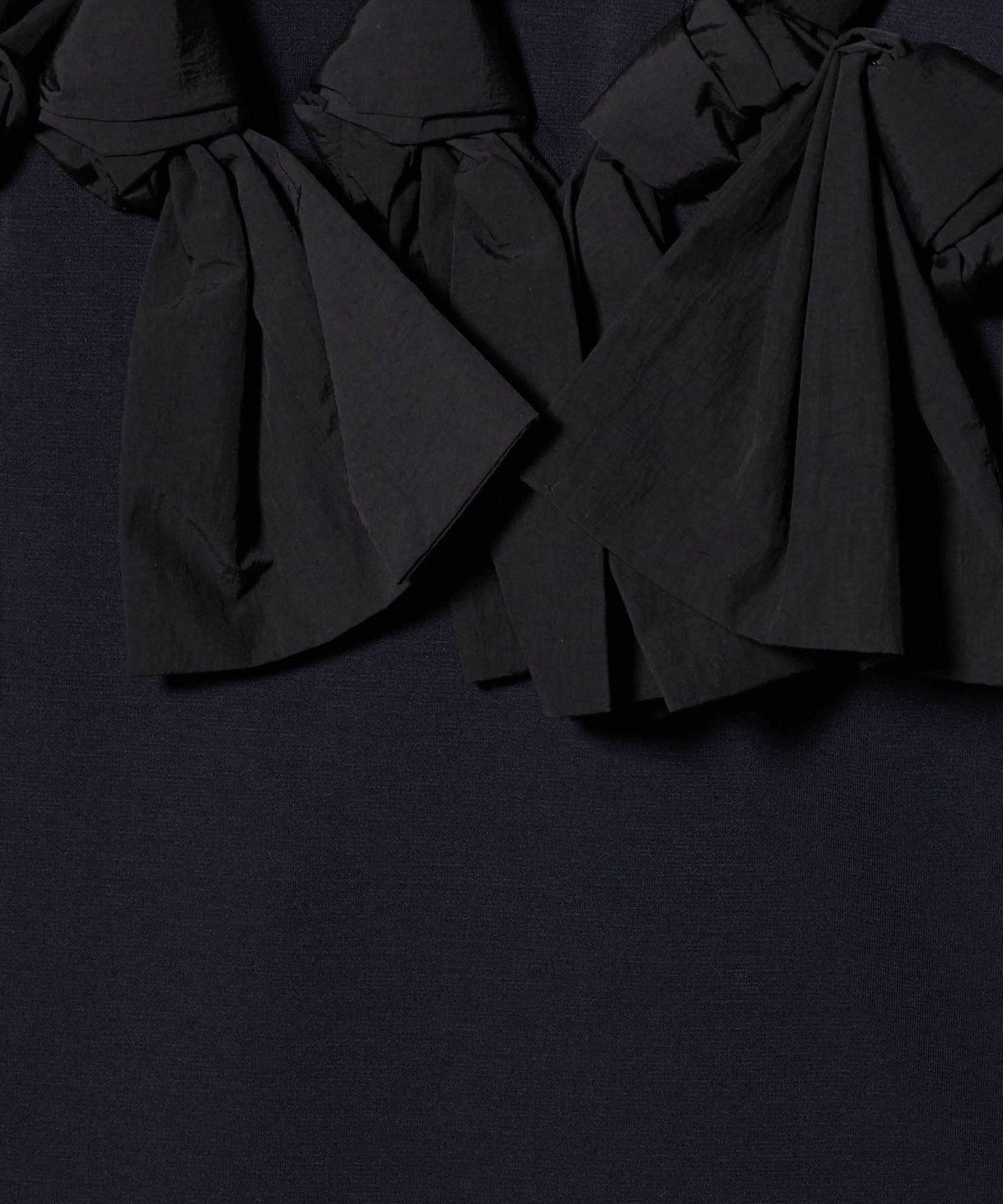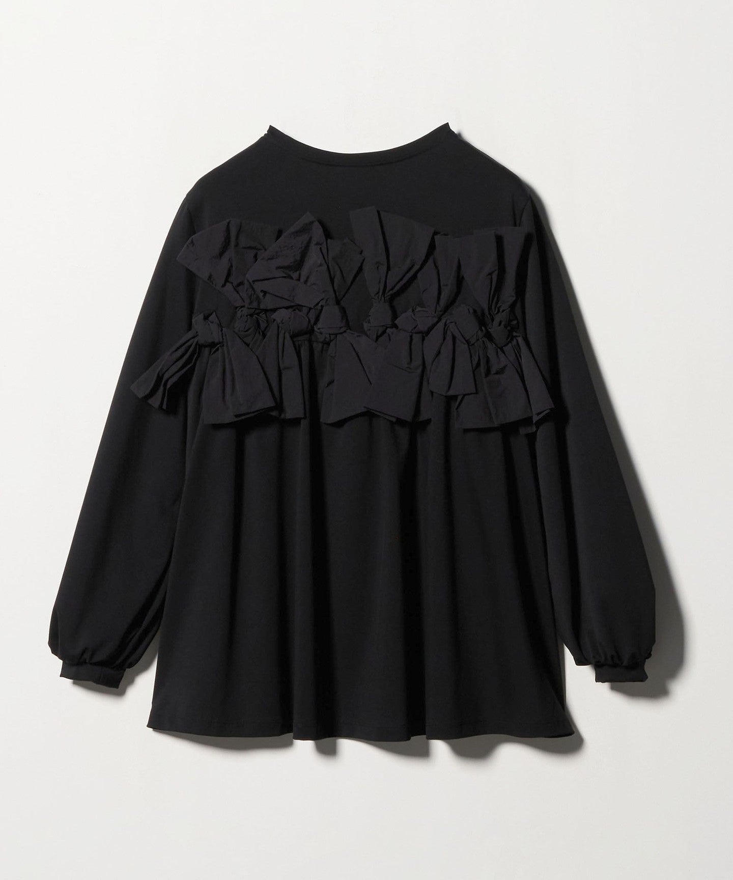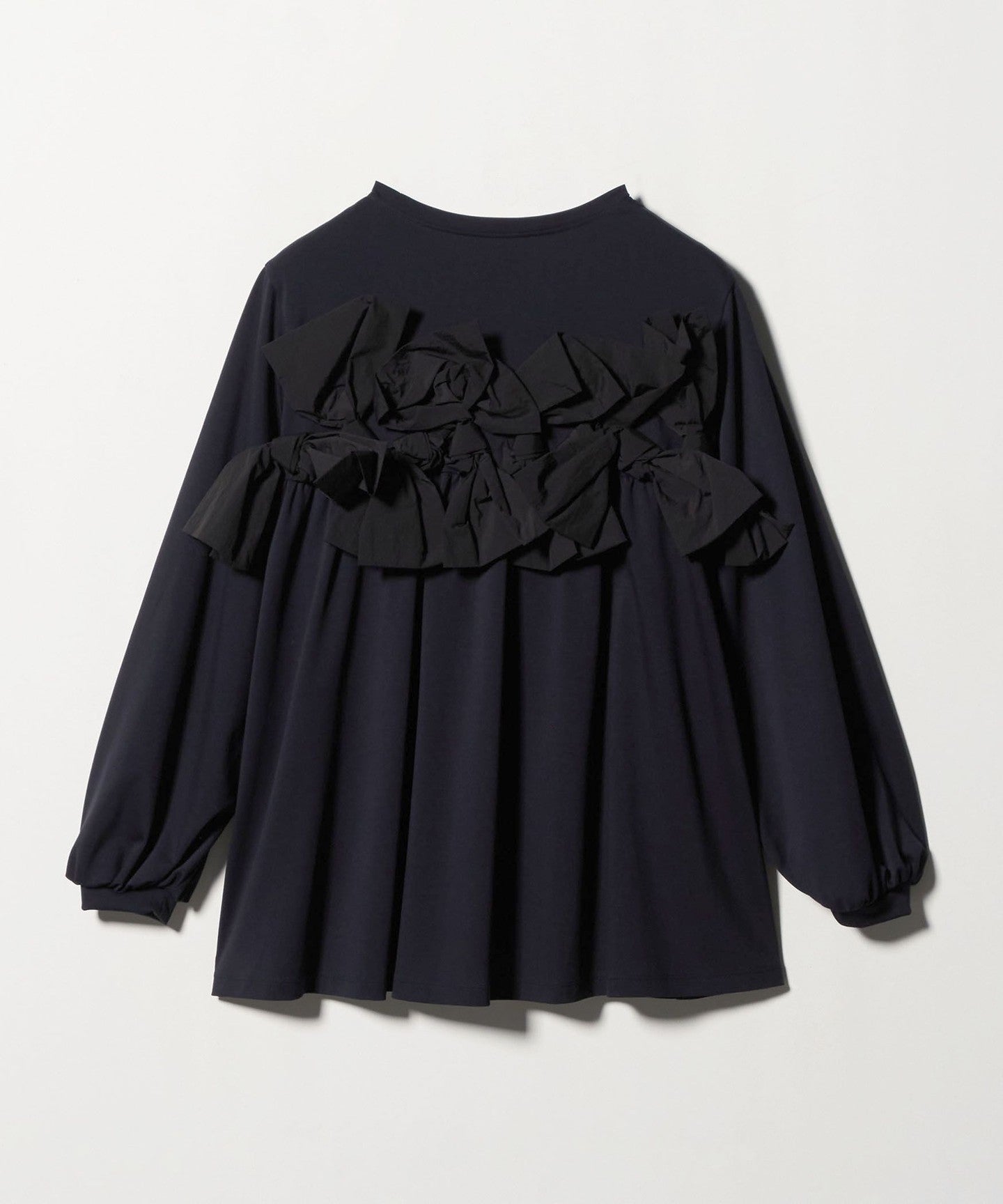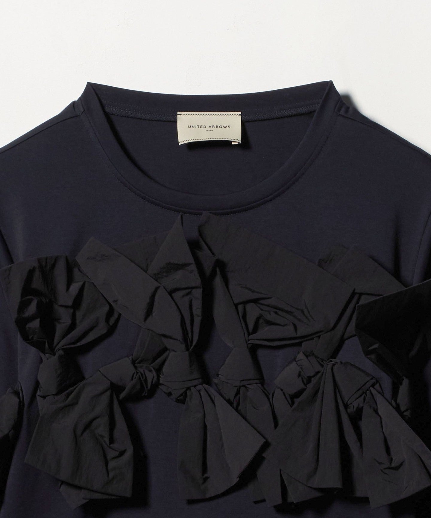 立体感のあるリボンモチーフを前後両面に大胆にあしらったデザインカットソー。