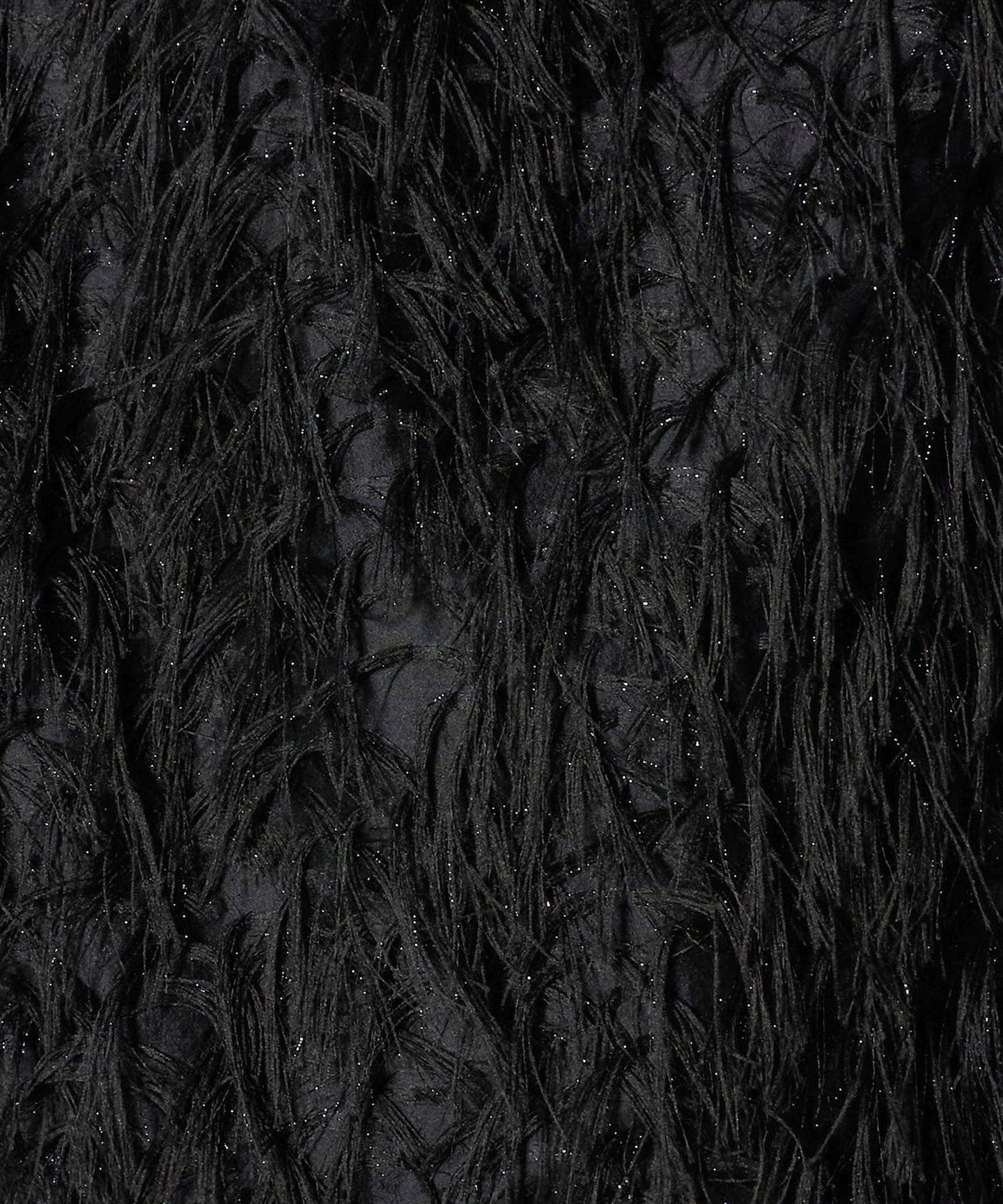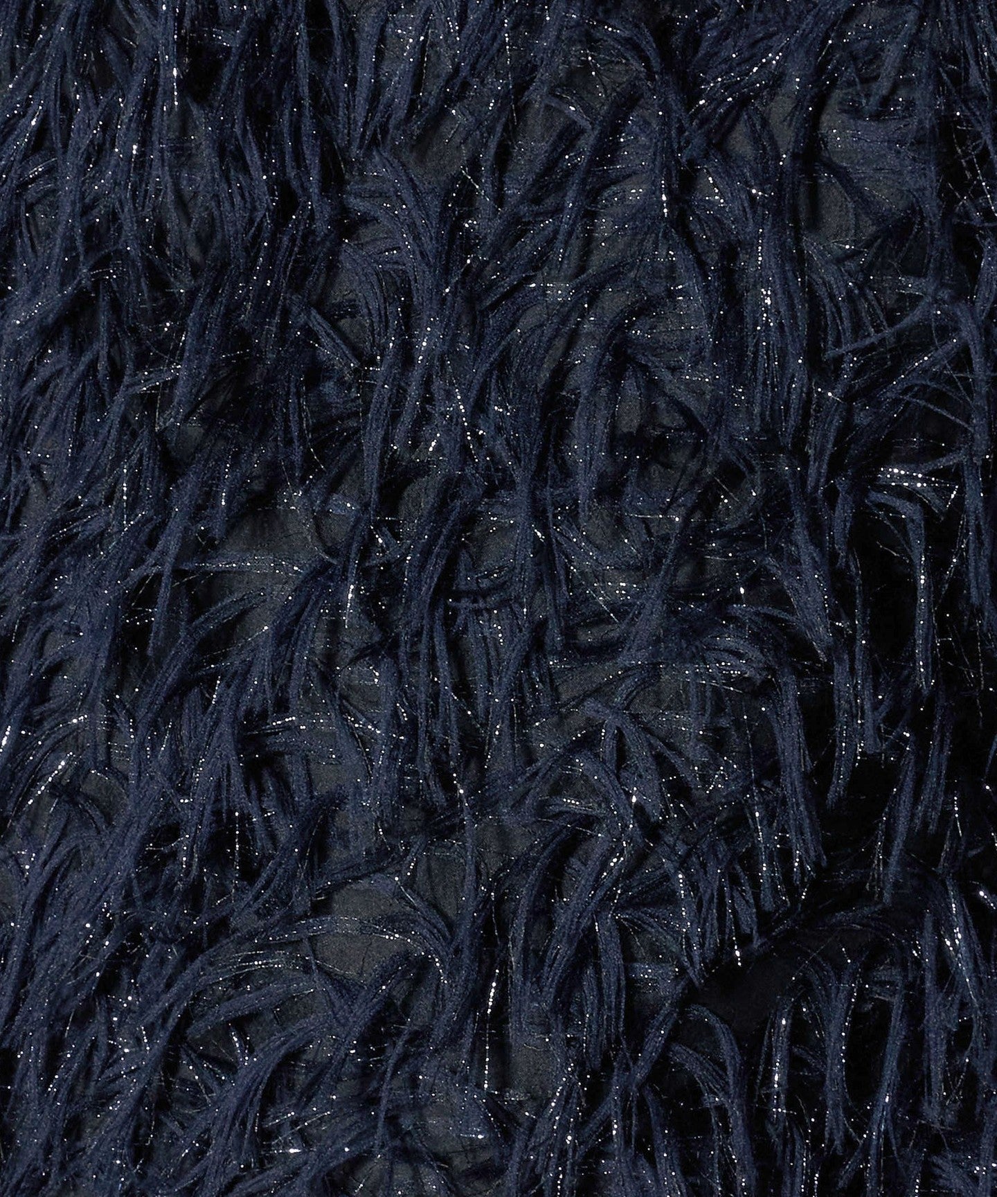 A wide layer of woolly polyester in several colors is woven onto a sheer base and carefully cut.