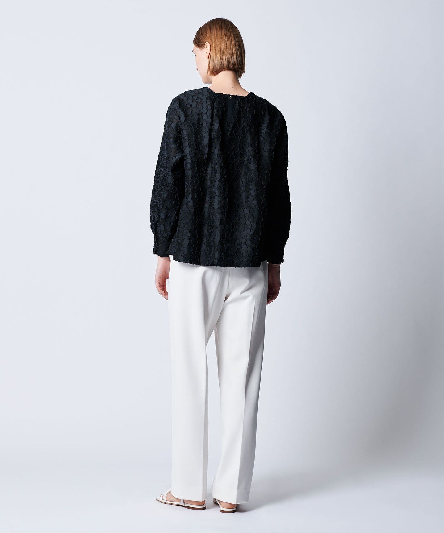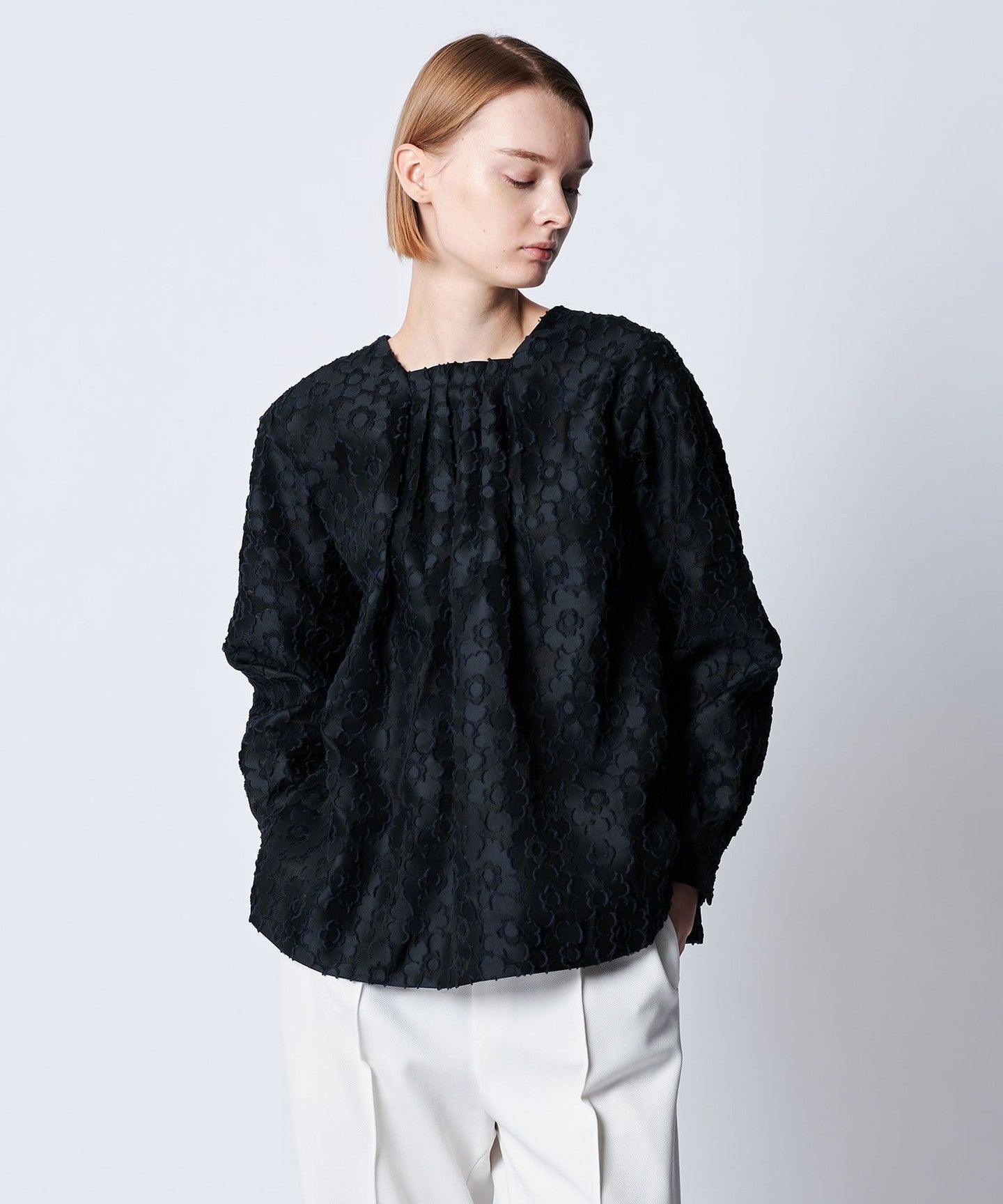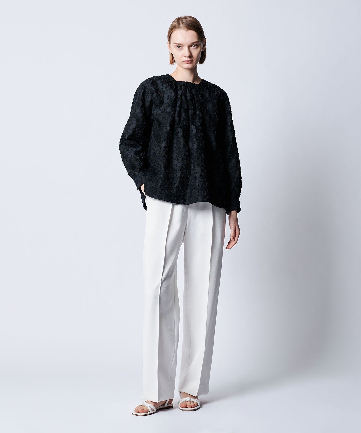 The feminine form with tucks and gathers is combined with the cuff design to add a handsome impression.