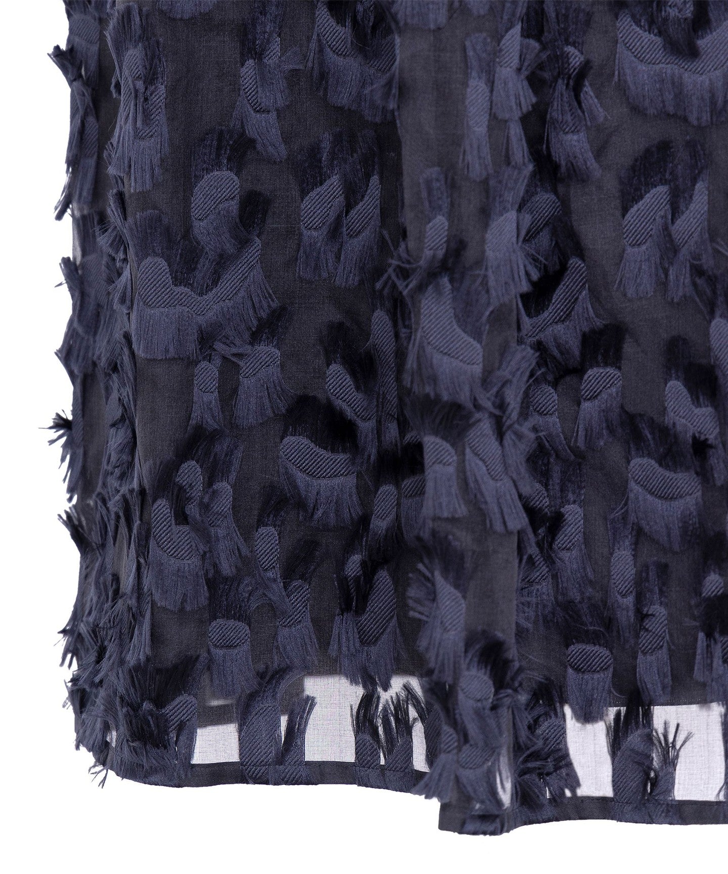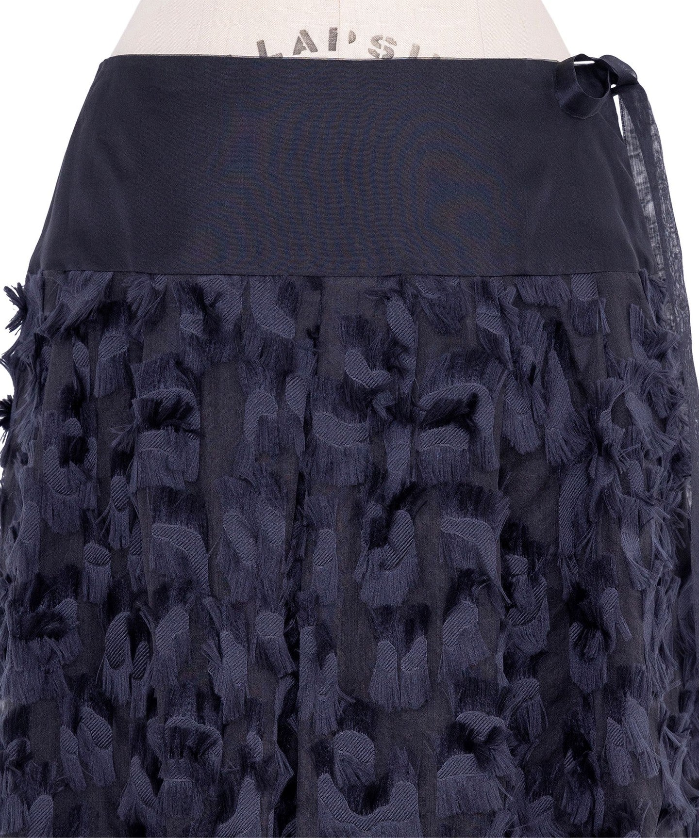 A flared skirt made of sheer yet expressive jacquard material that sways beautifully.