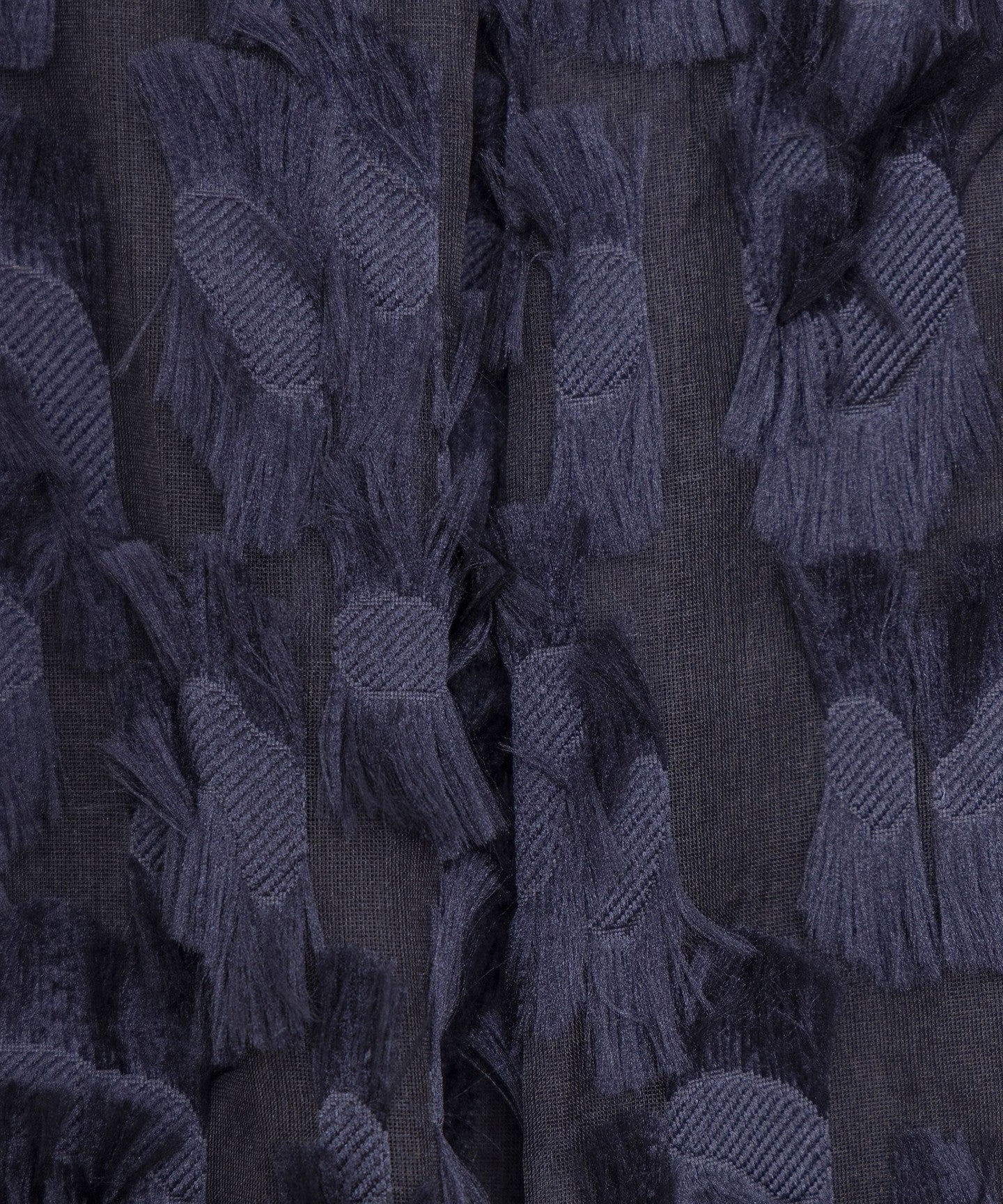The base is sheer organza with a geometric pattern and cut jacquard material with a fur-like pile.