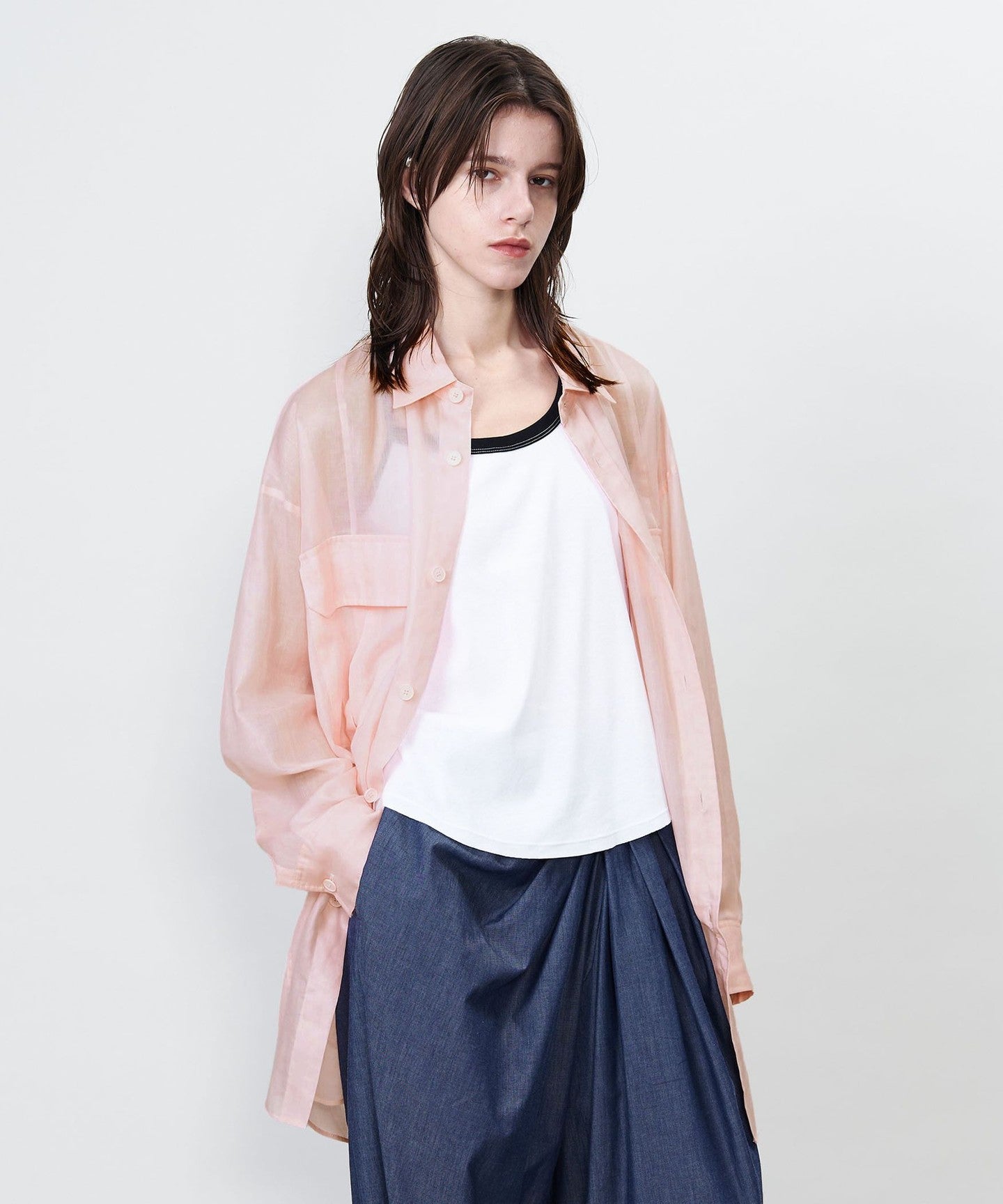 ASTRAETSheer regular collar shirt with flap pocket