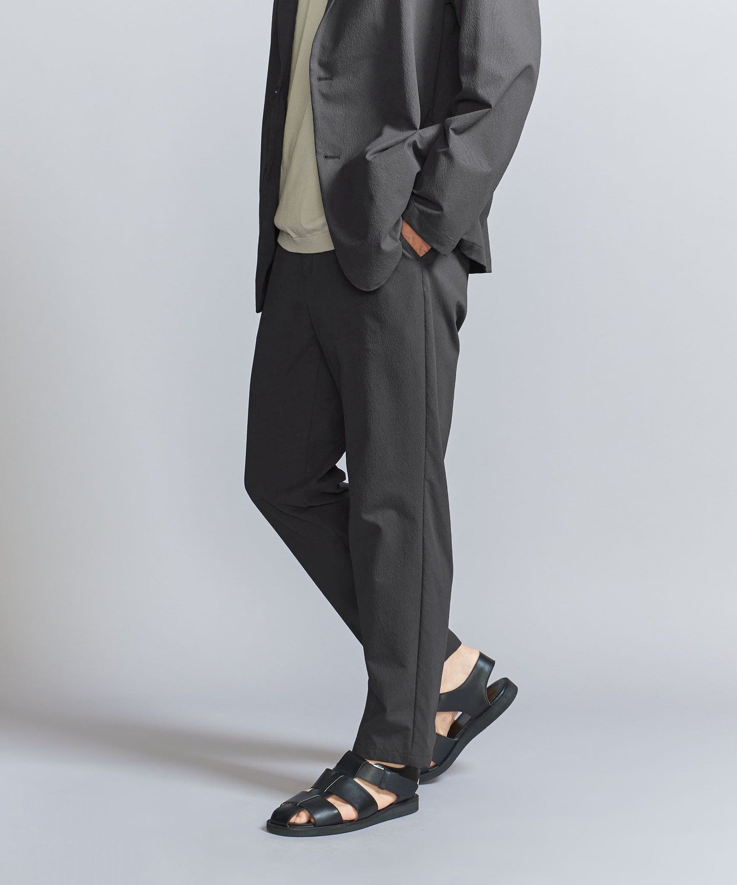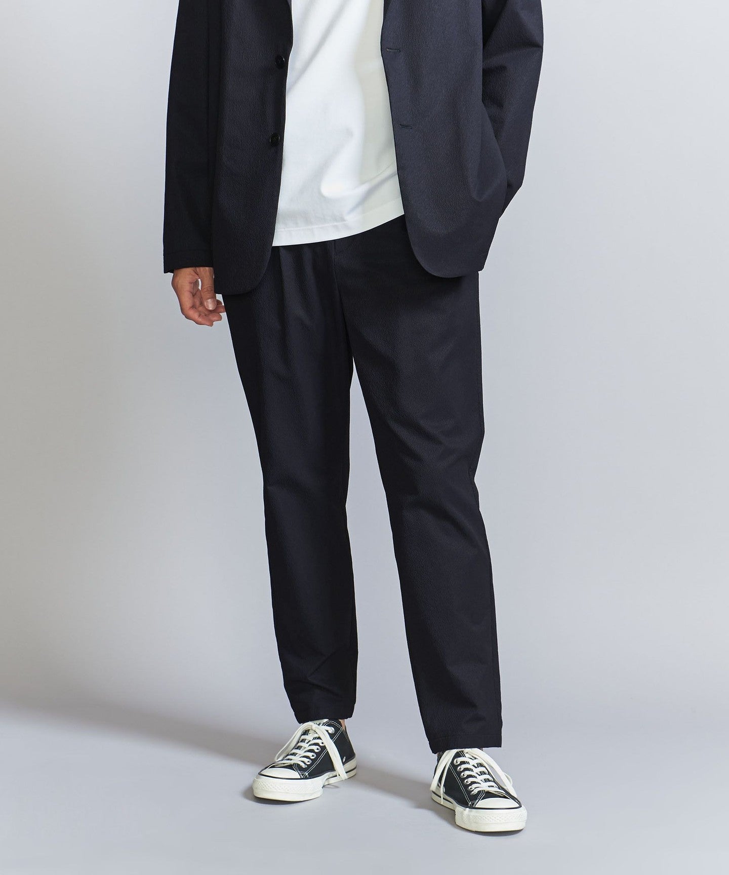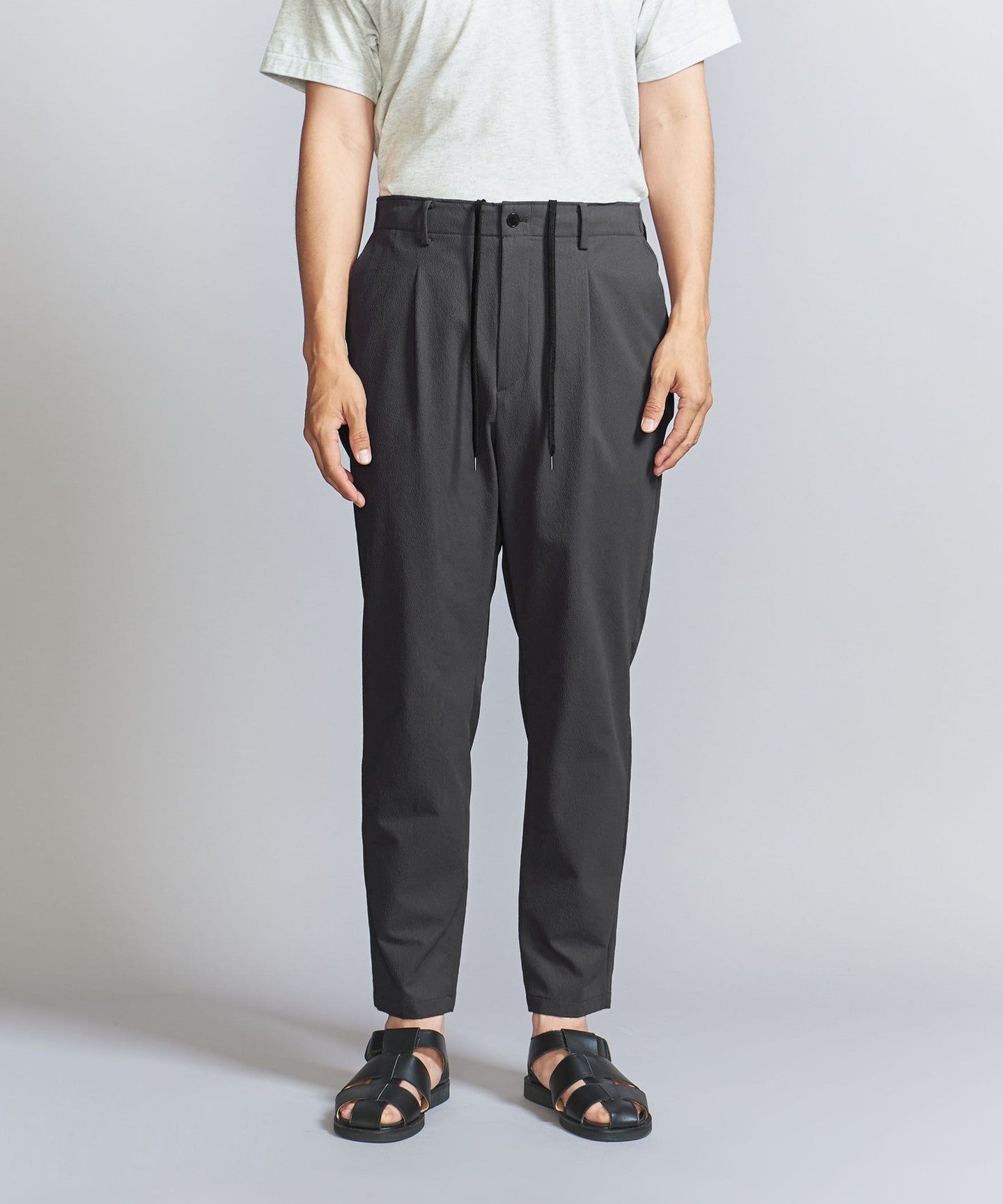 Wrinkle 1 pleat tapered pants - Washable Set-up compatible