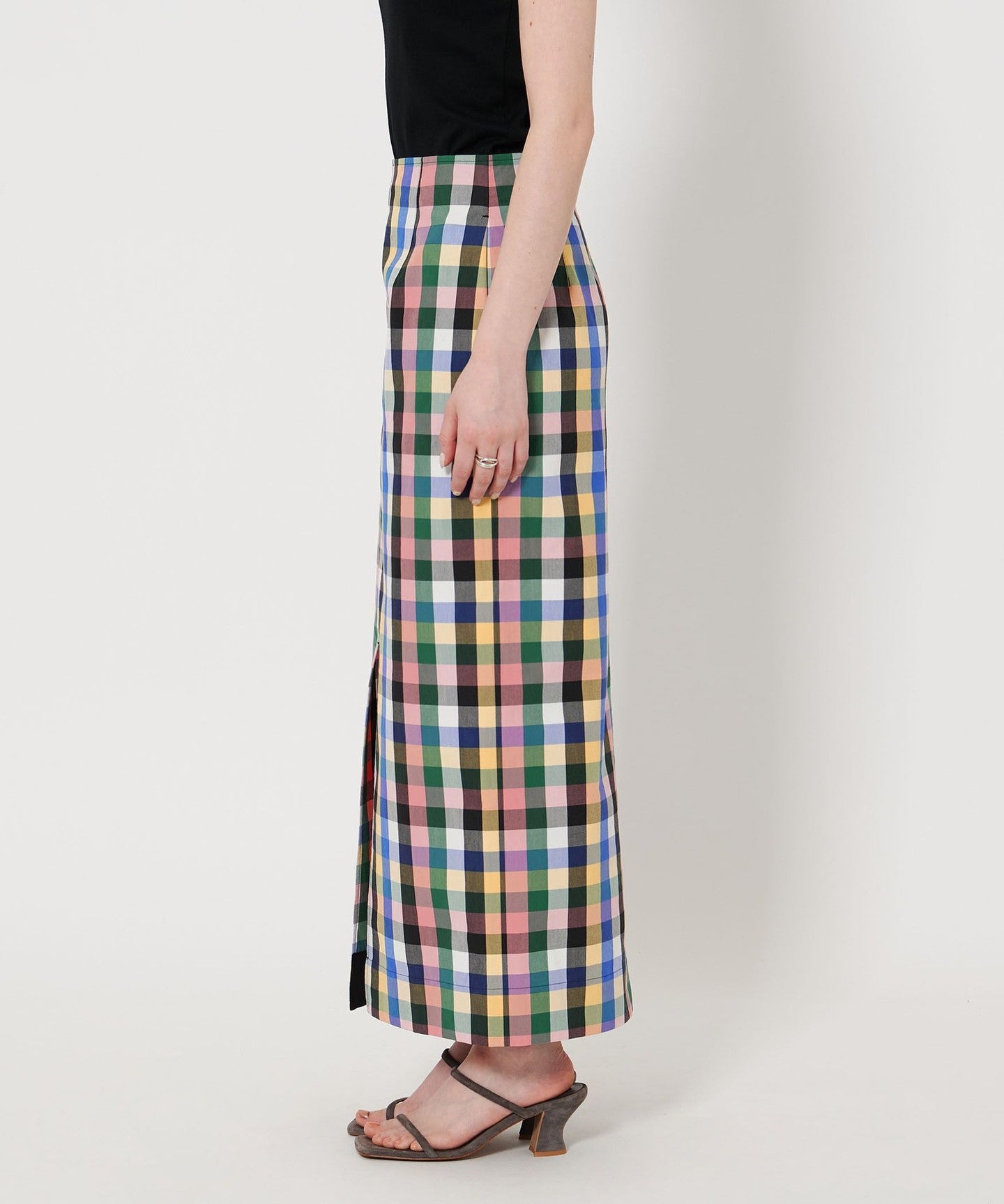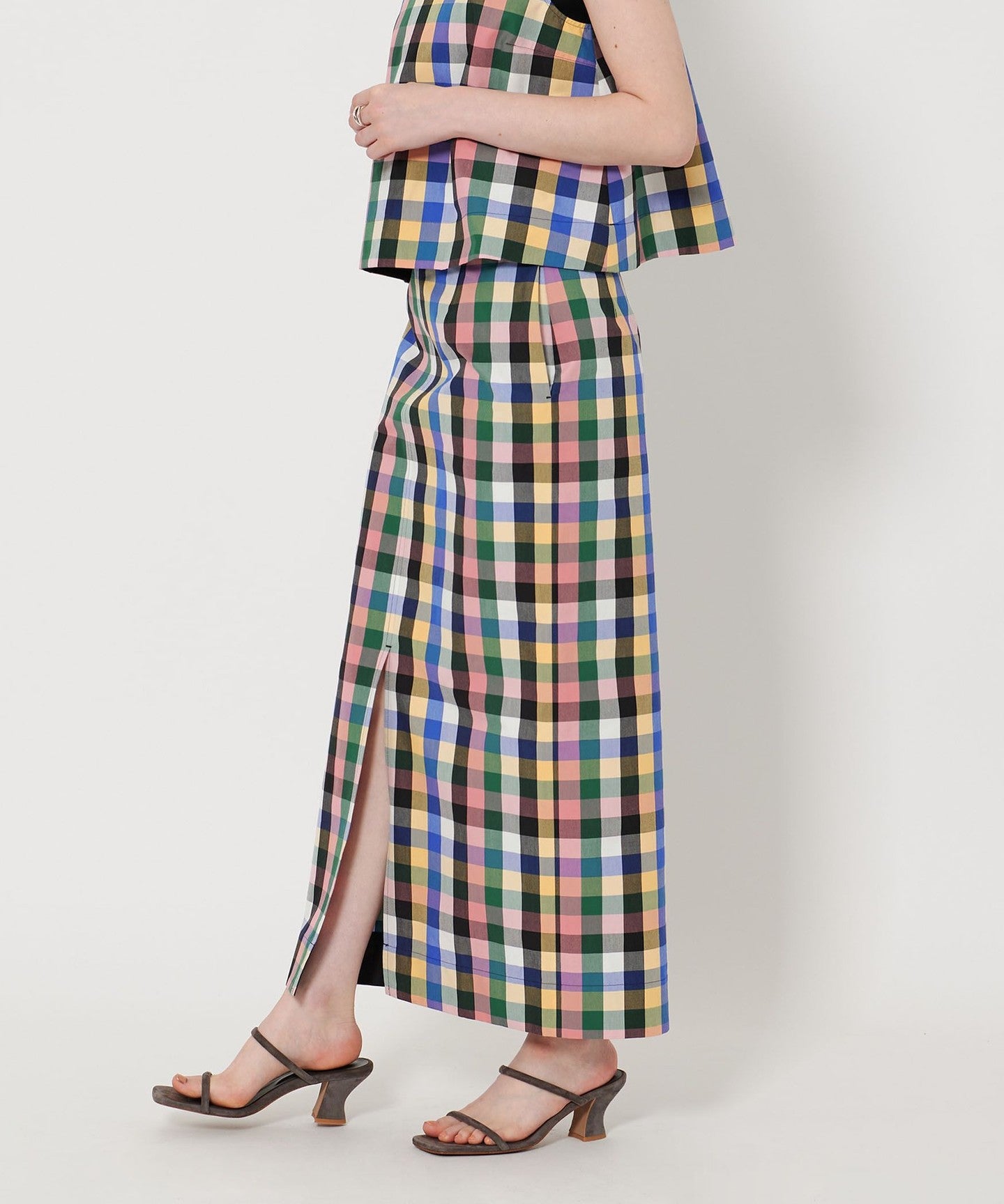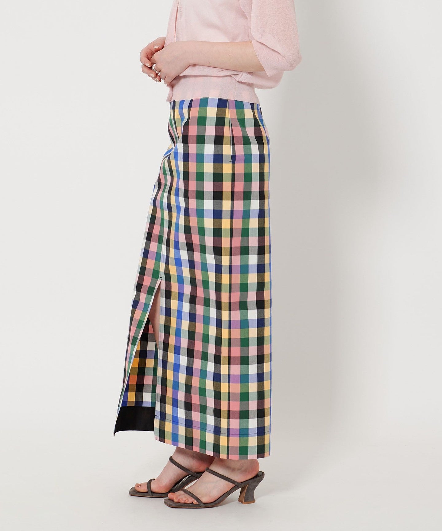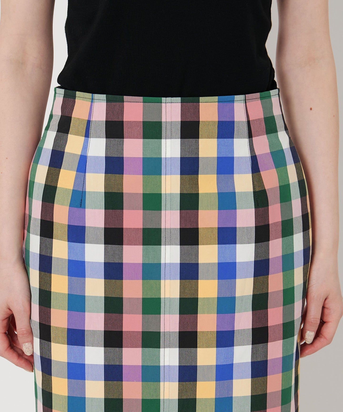 A skirt with a beautiful, dynamic silhouette and an eye-catching check pattern.