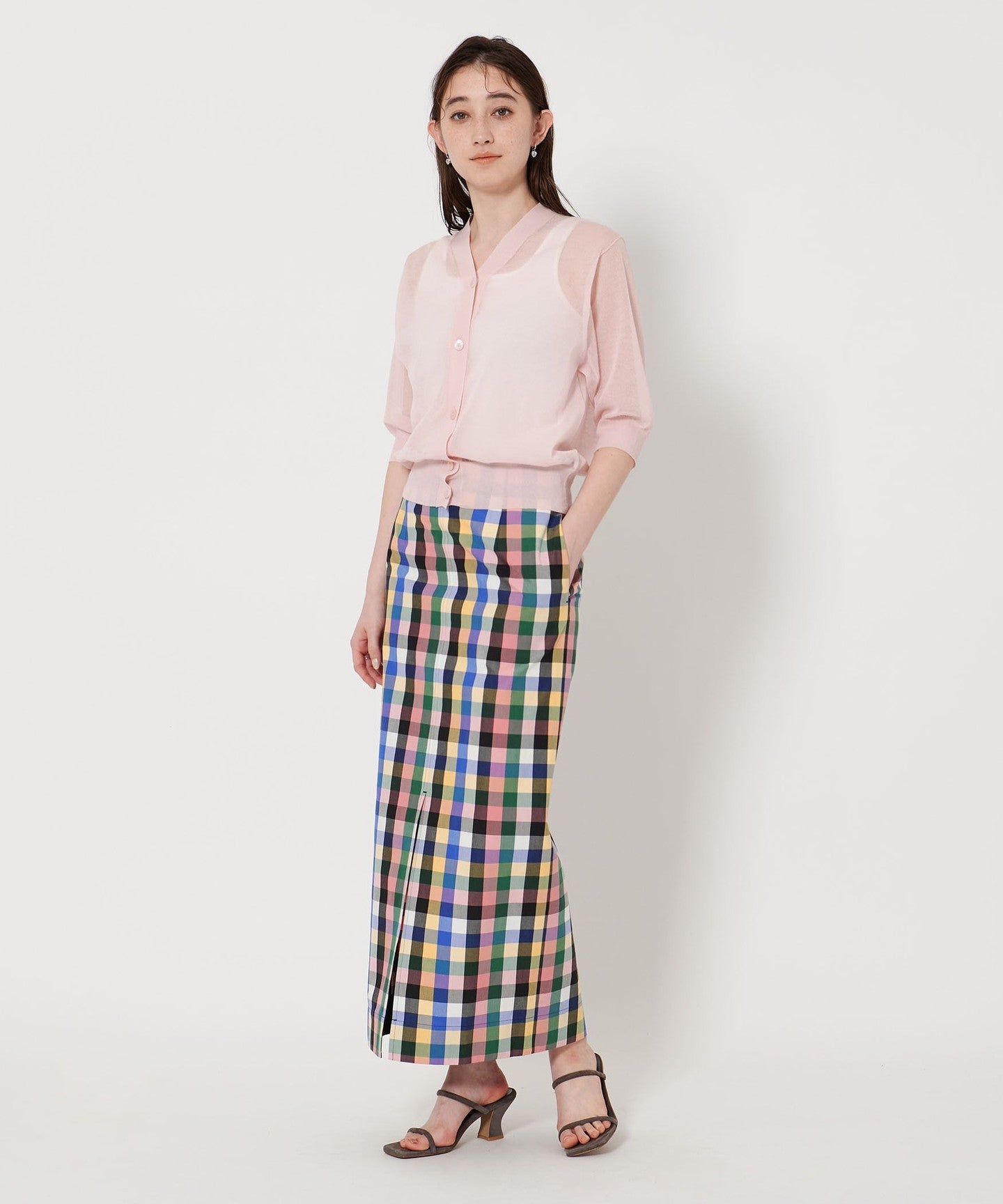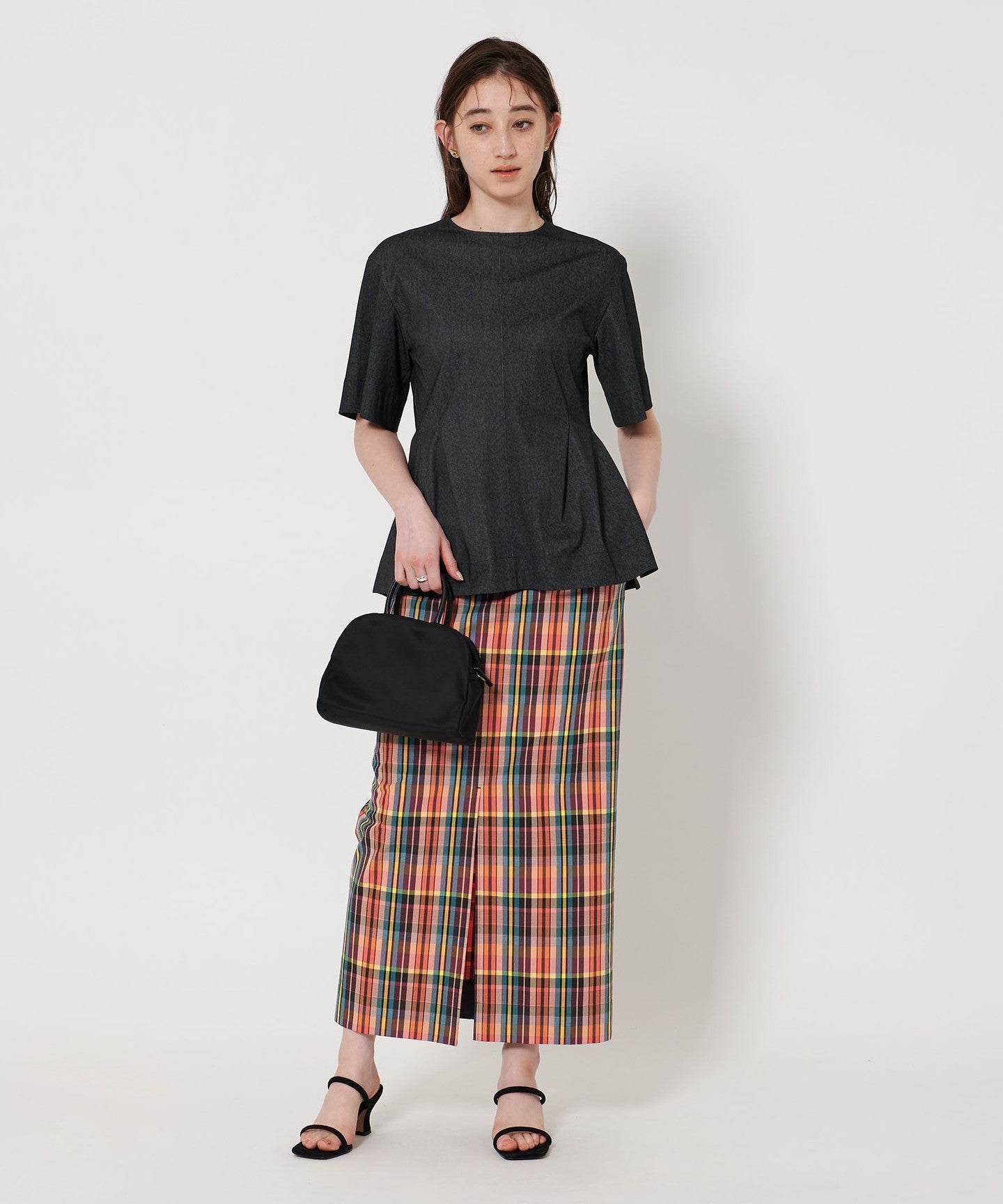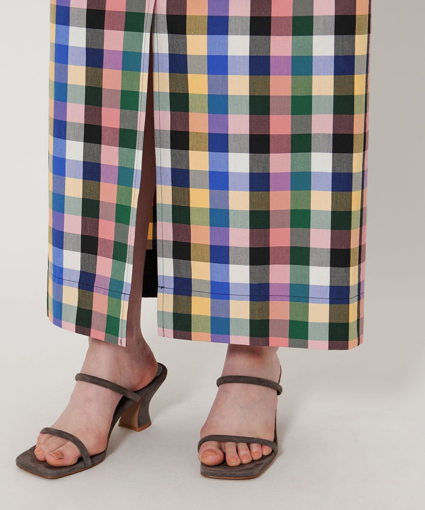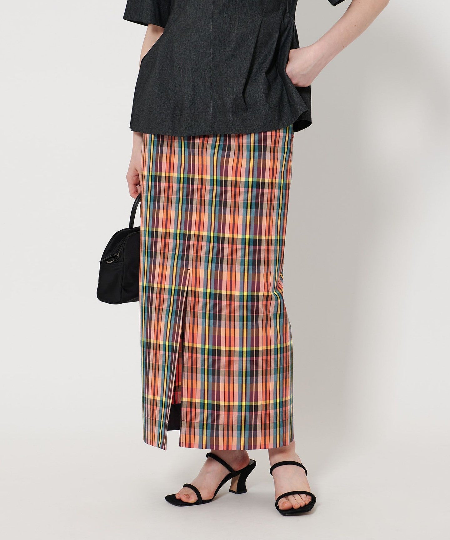 A skirt with a beautiful, dynamic silhouette and an eye-catching check pattern.