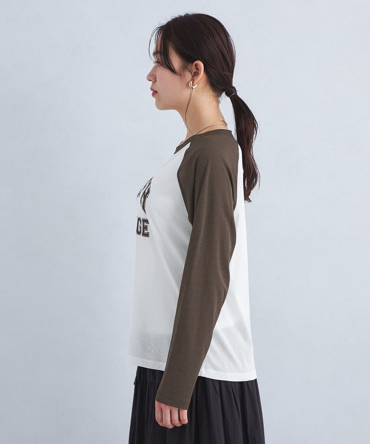 A baseball long-sleeved T-shirt with a loose silhouette that is trendy right now.