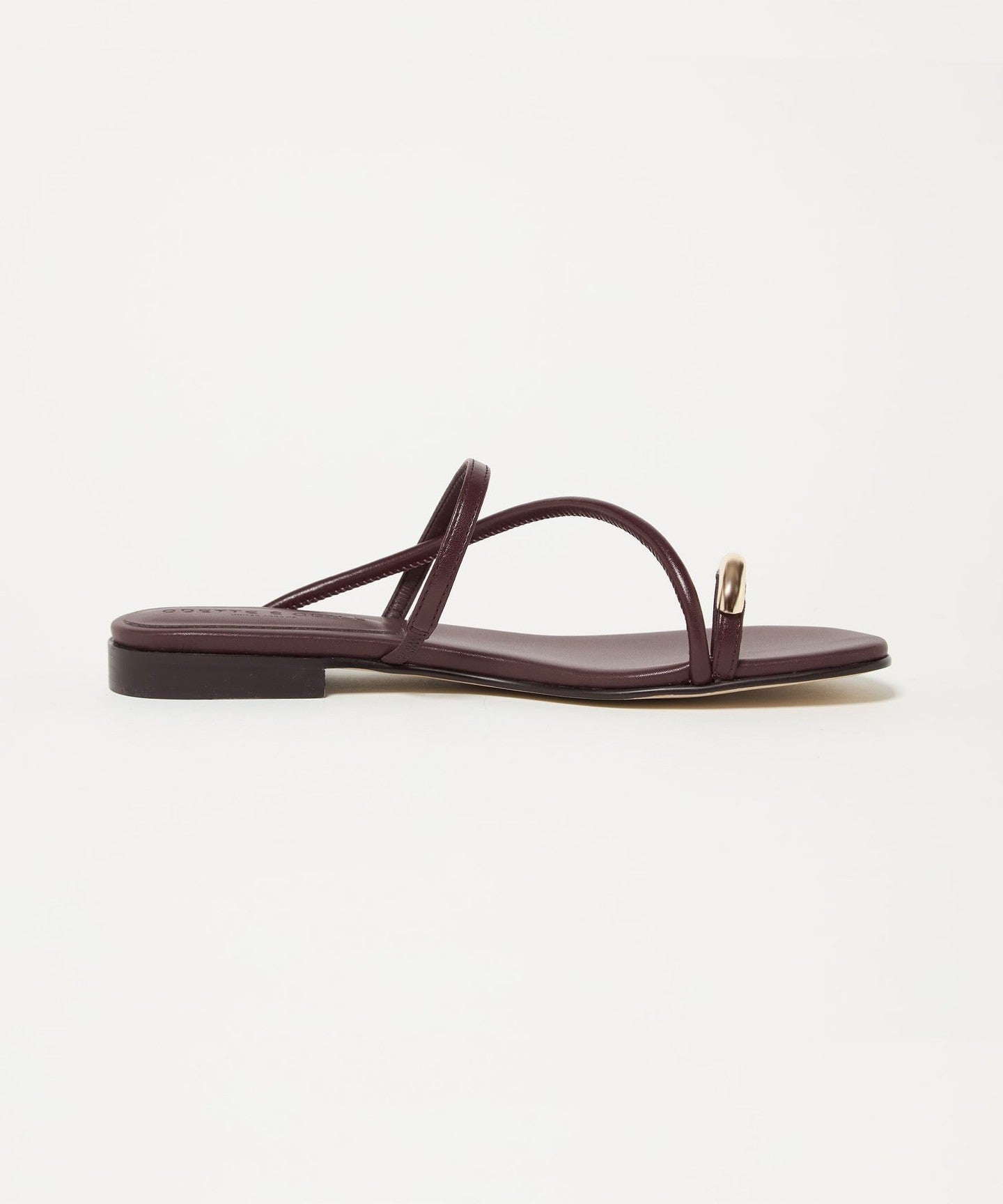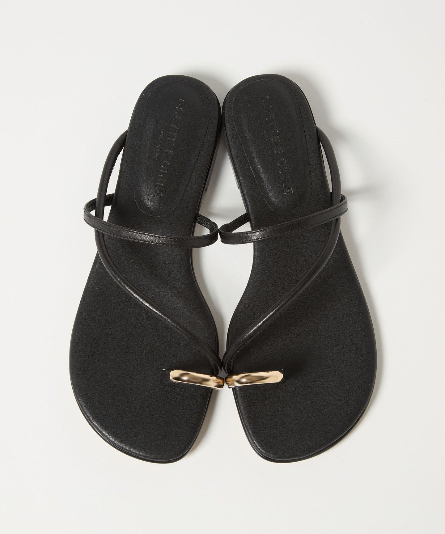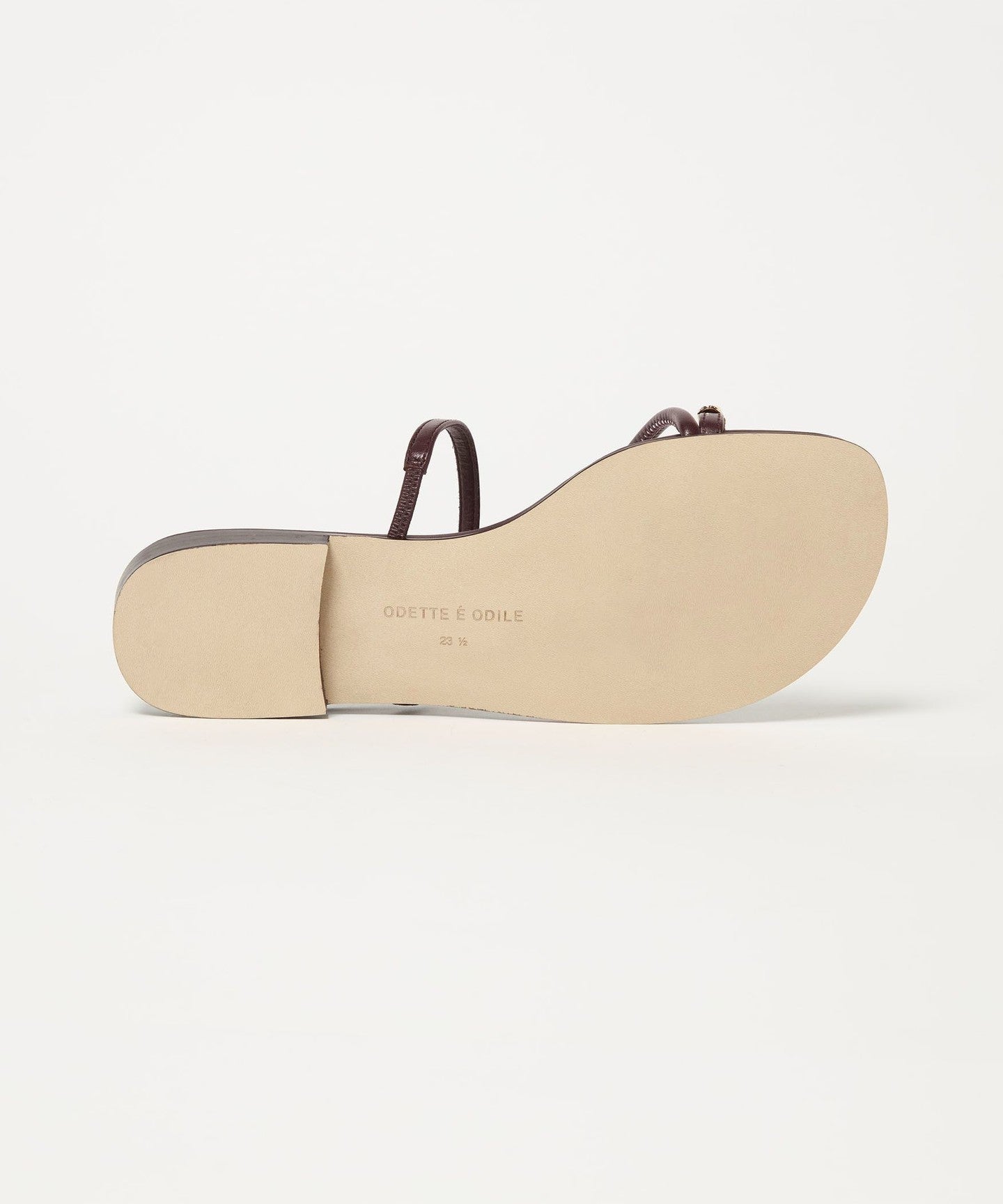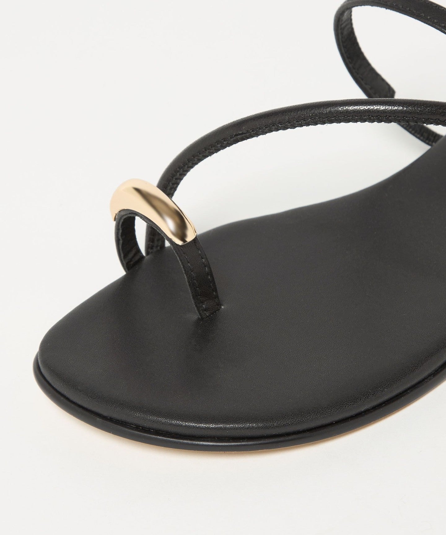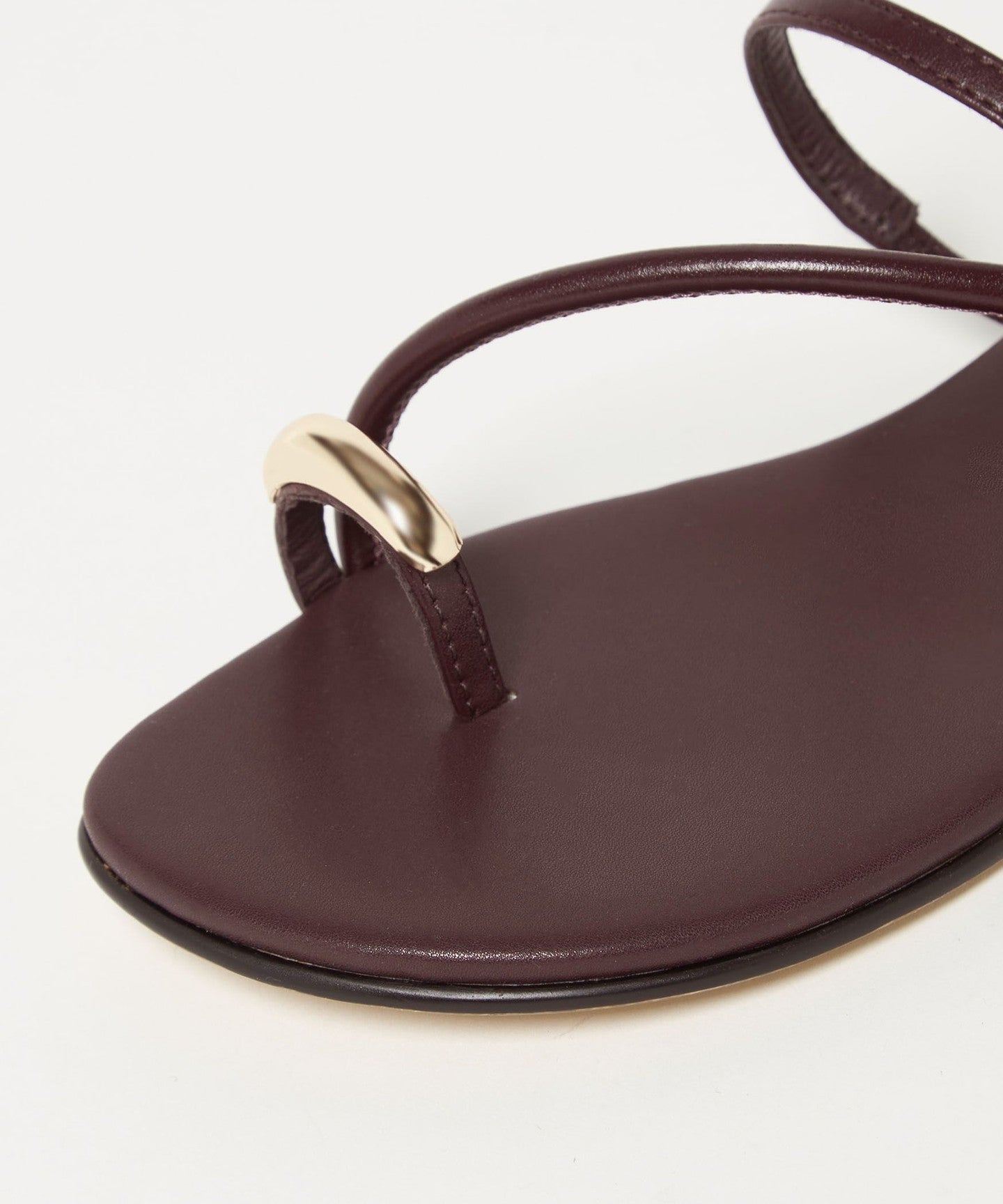 These sandals feature a metal decoration on the leather loop on the big toe.