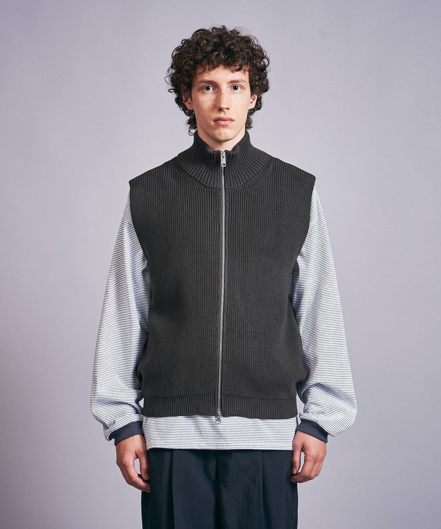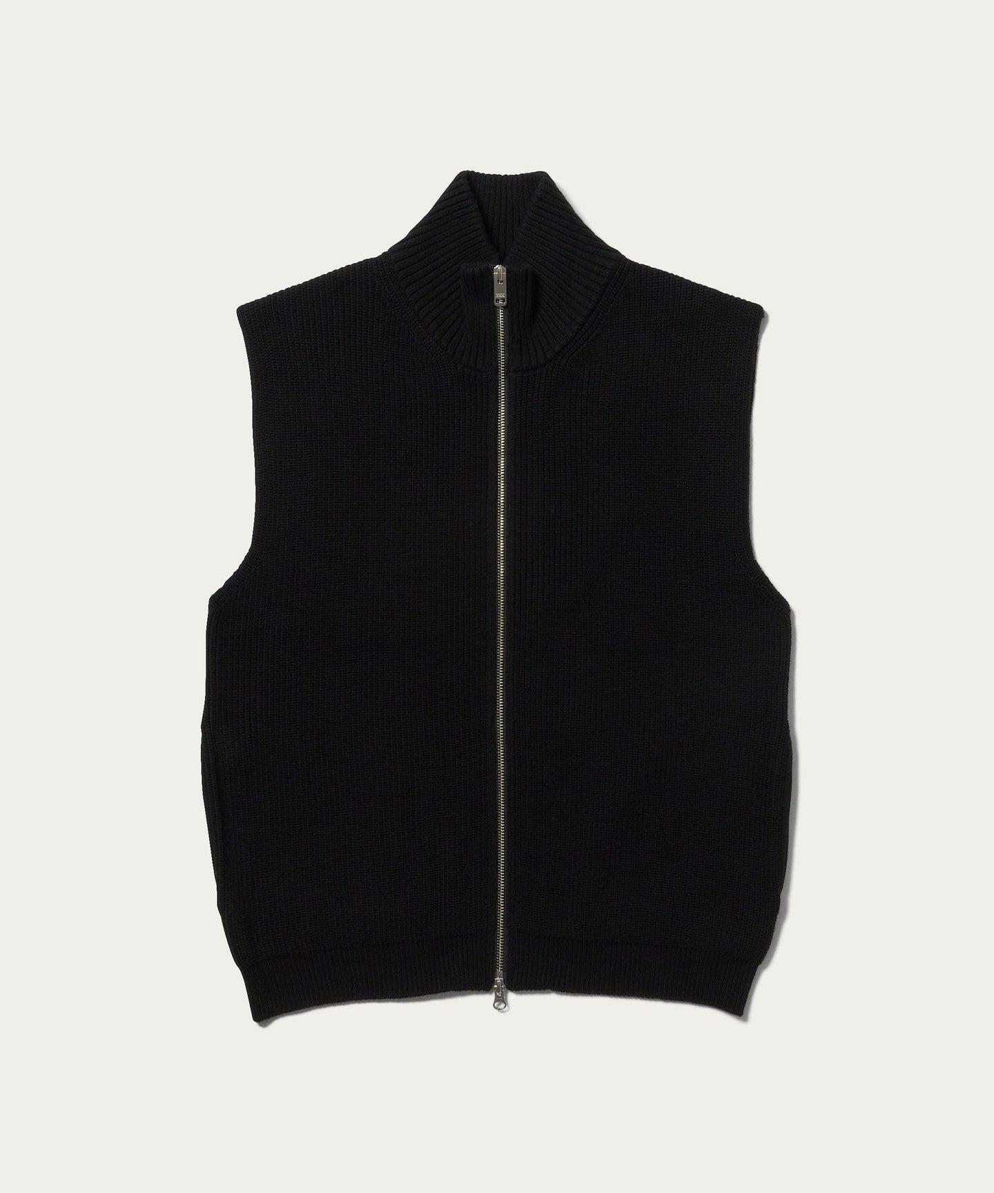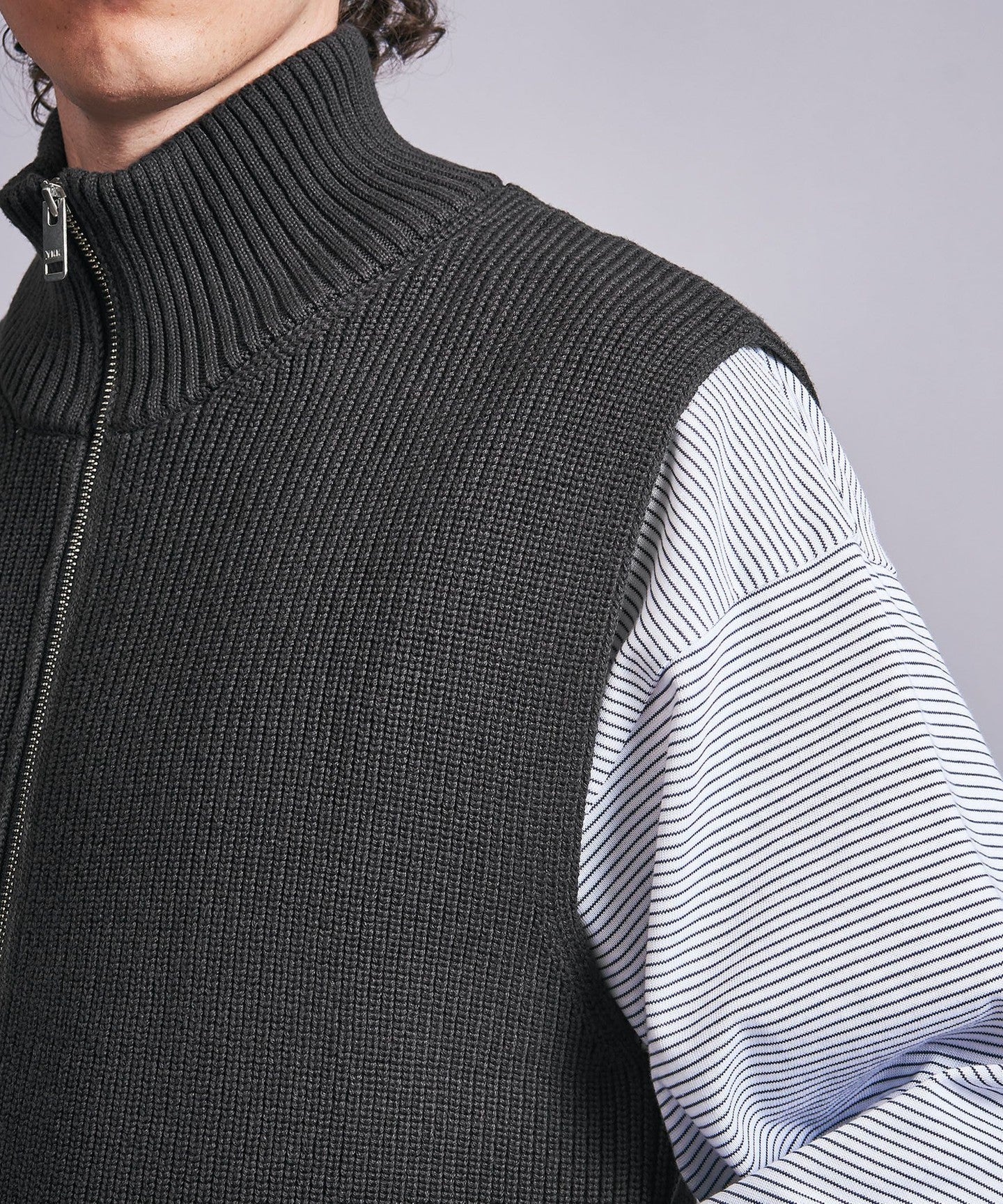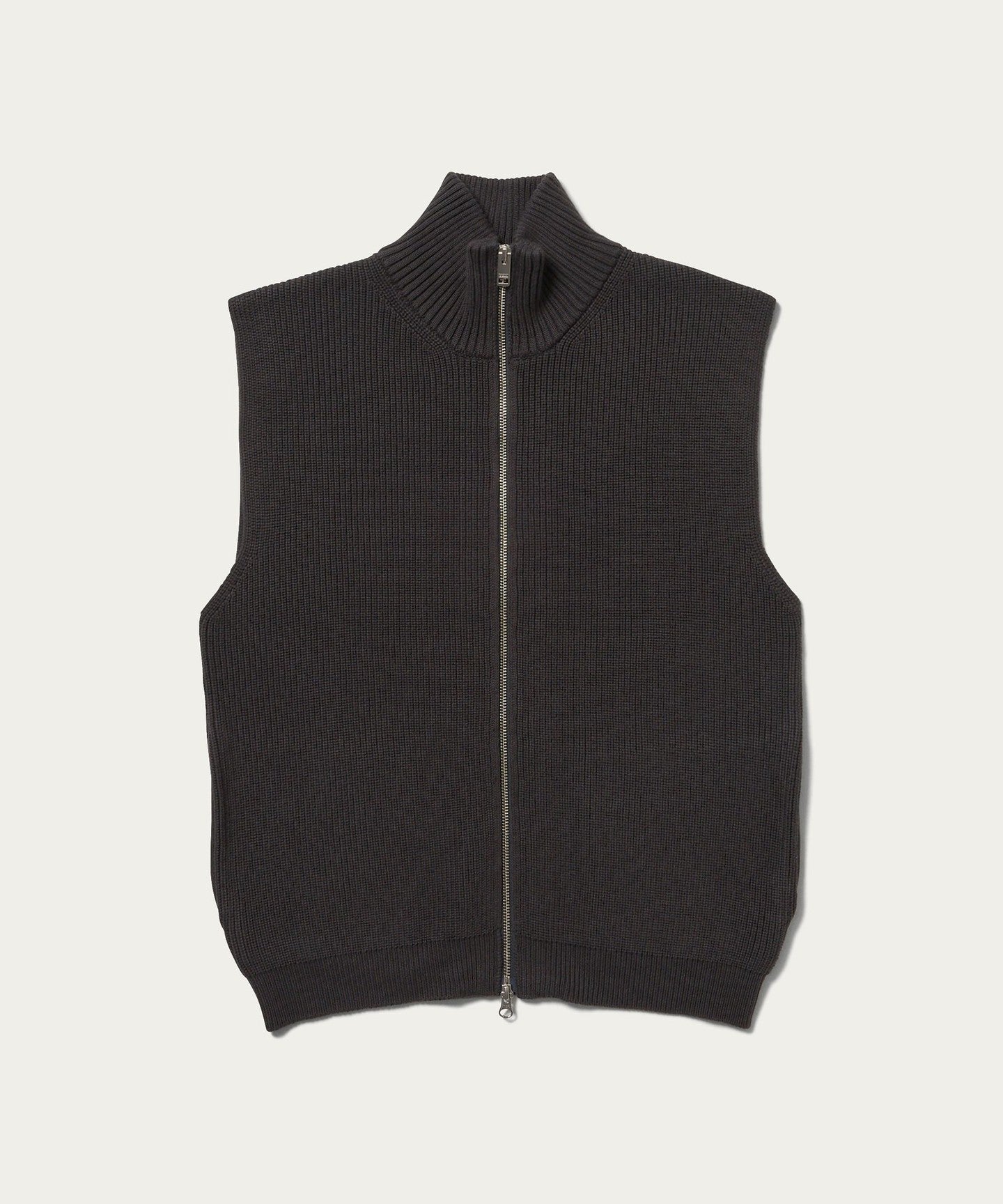 A rib knit driver's vest made from bulky acrylic cotton yarn.