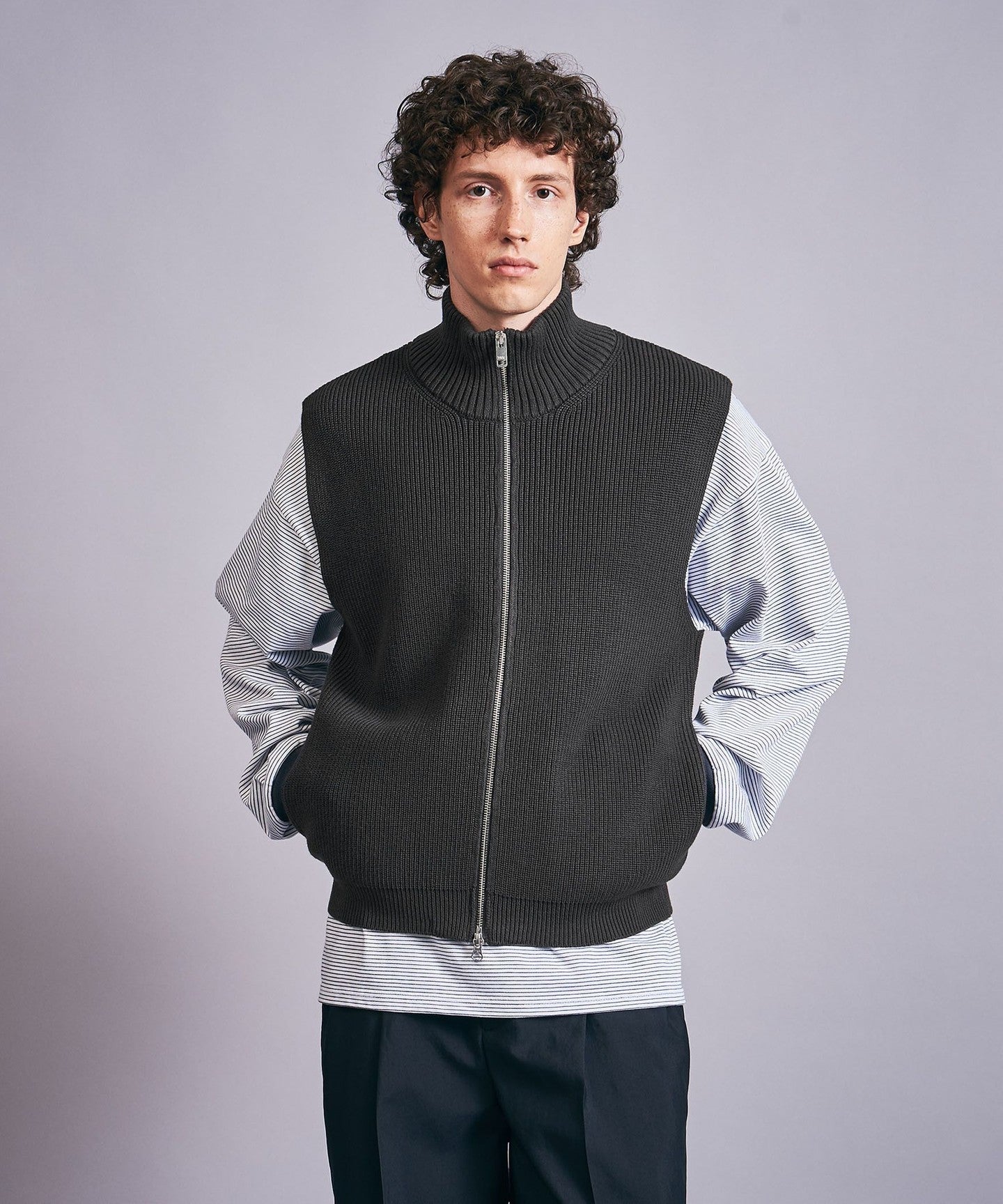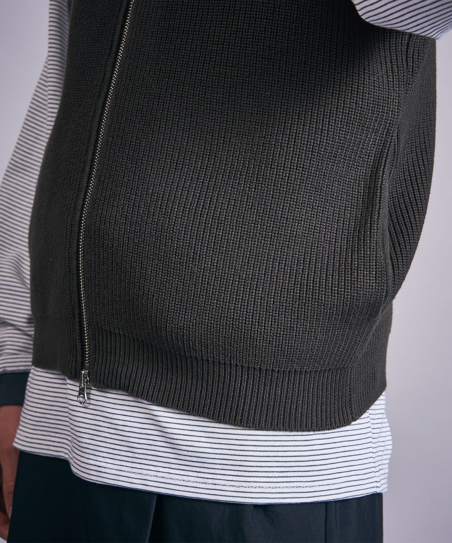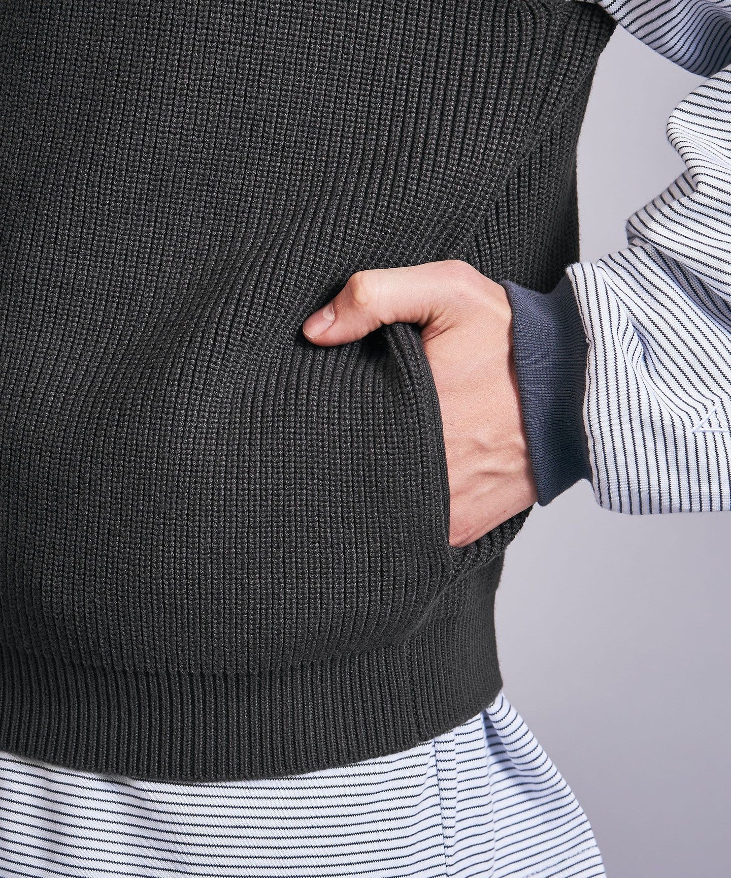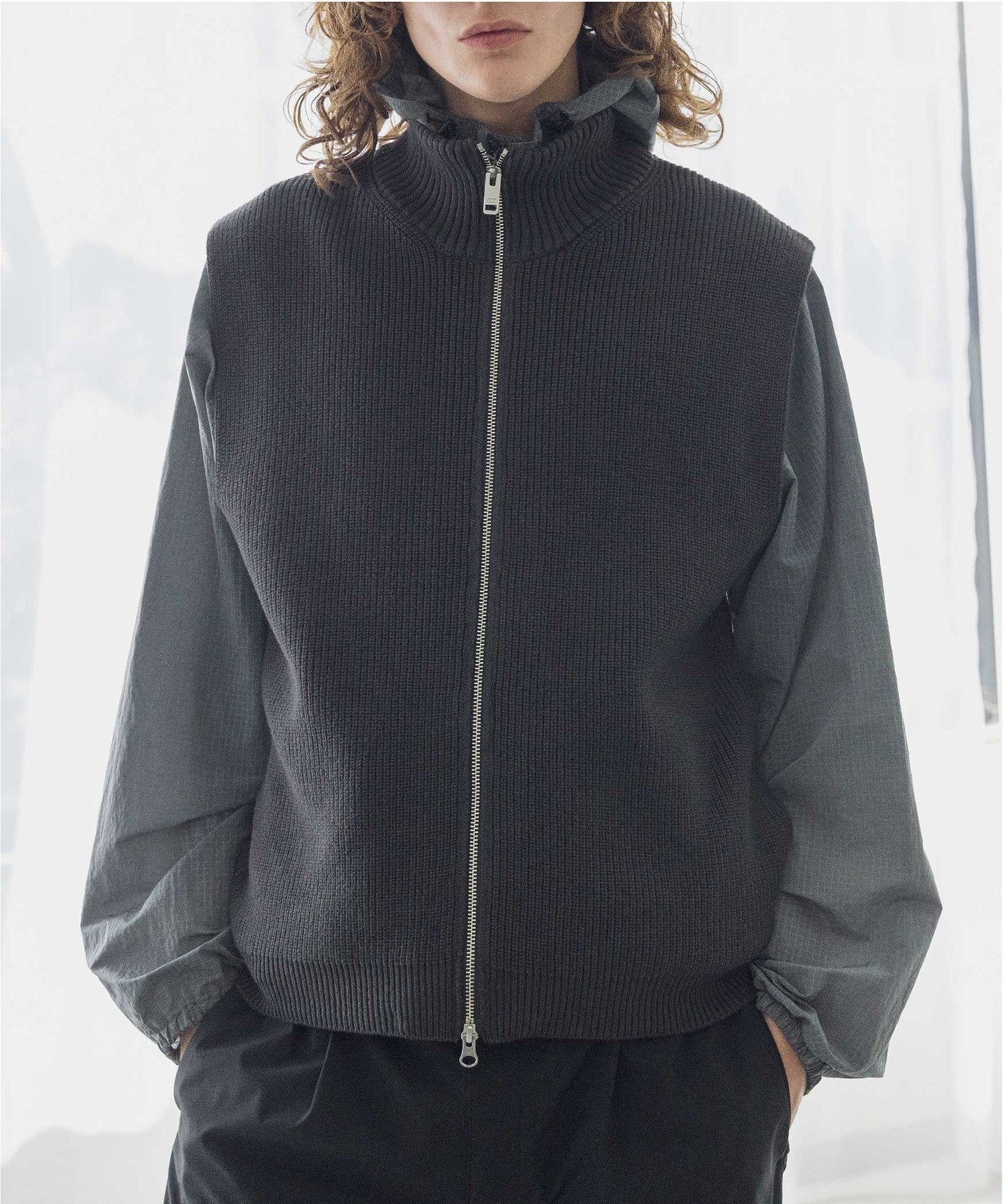 A rib knit driver's vest made from bulky acrylic cotton yarn.