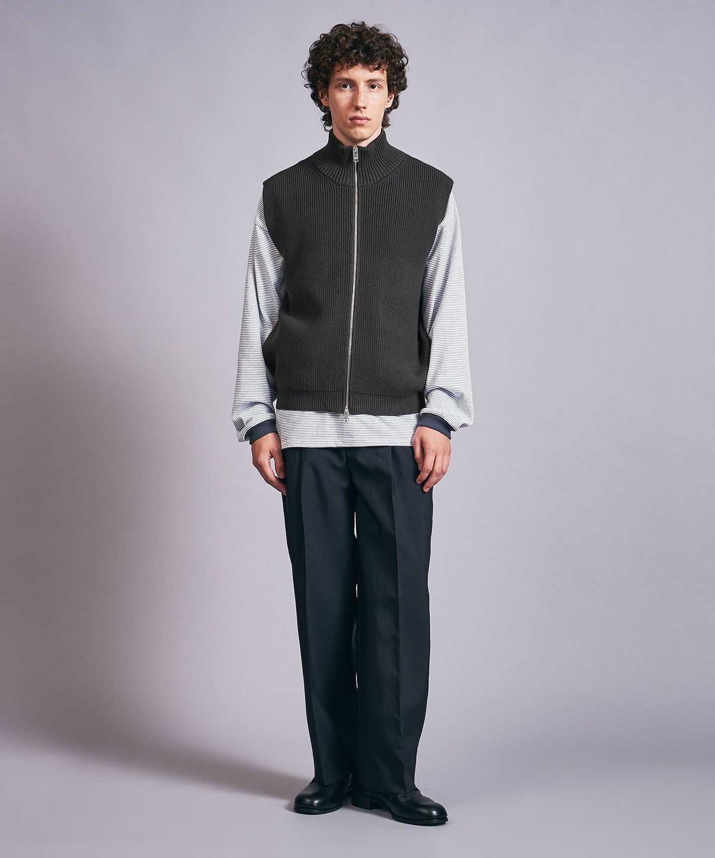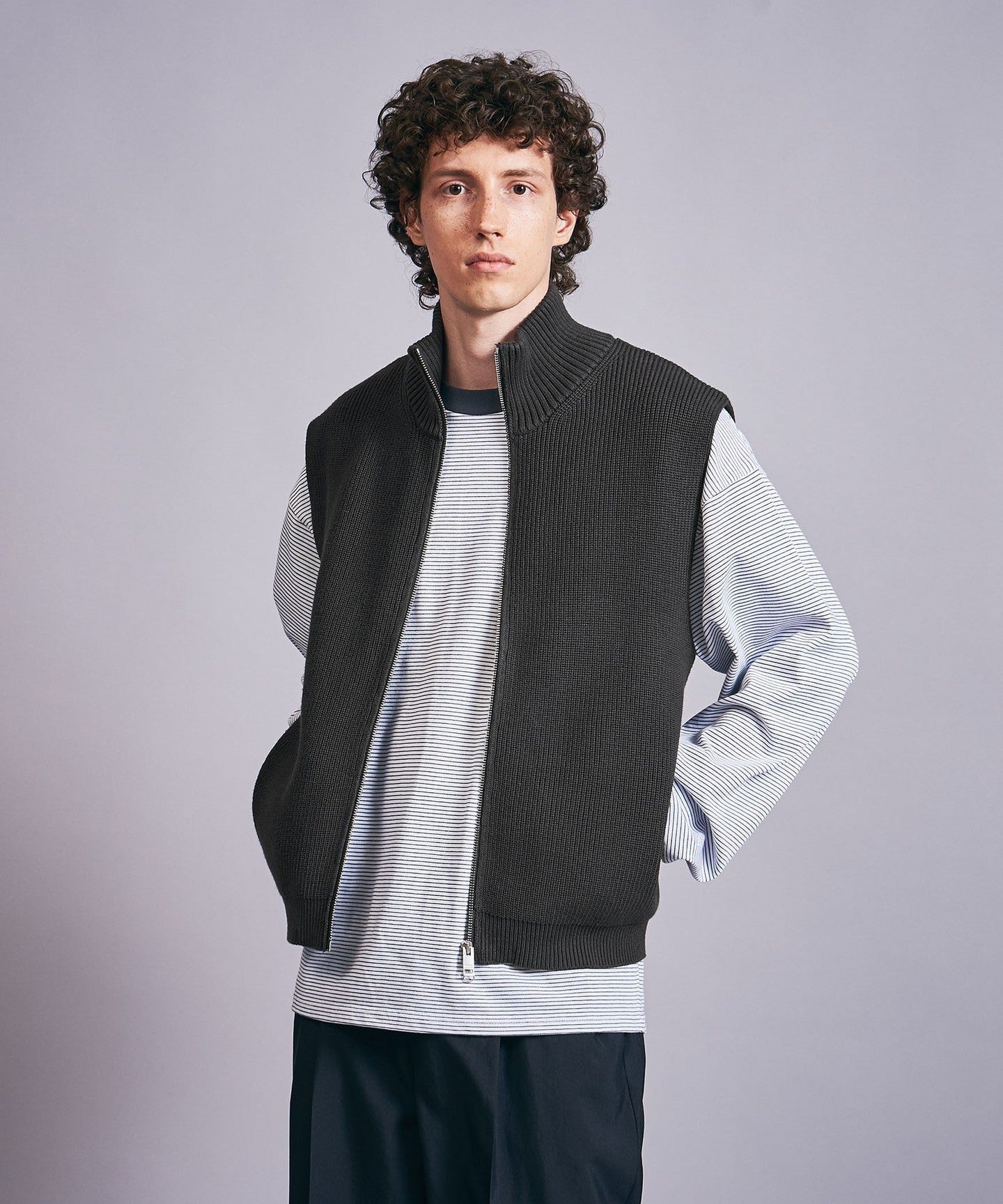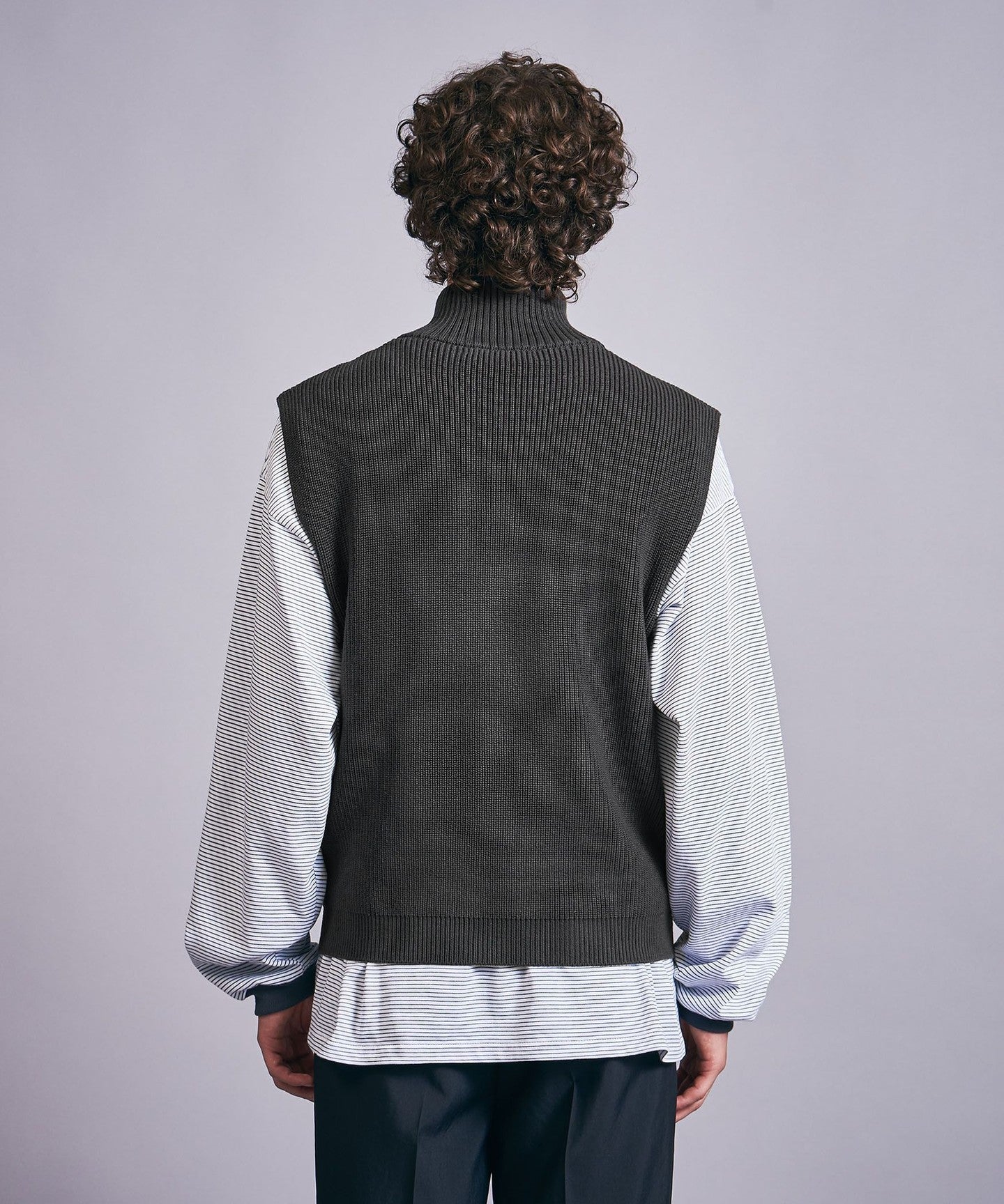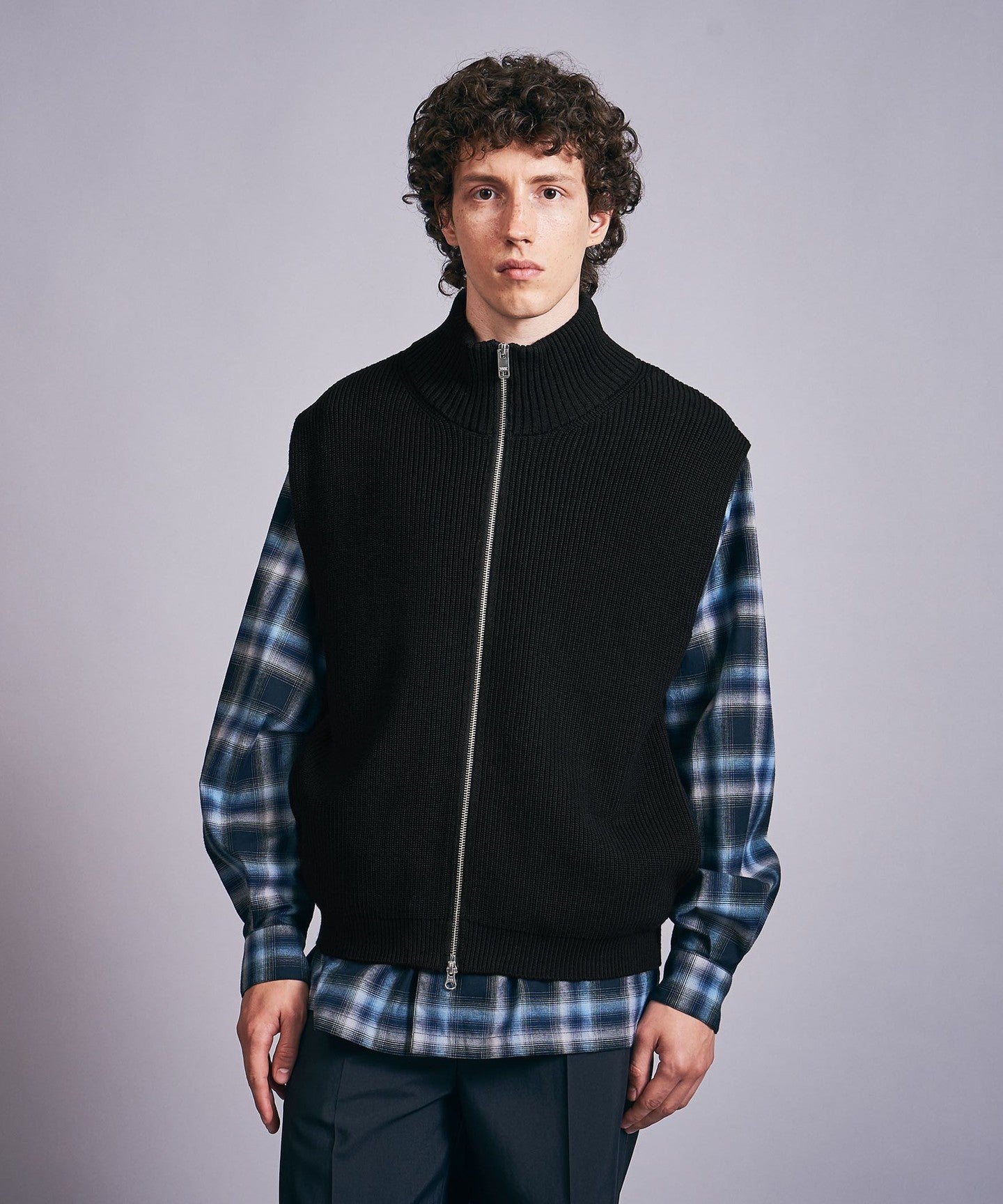 A rib knit driver's vest made from bulky acrylic cotton yarn.