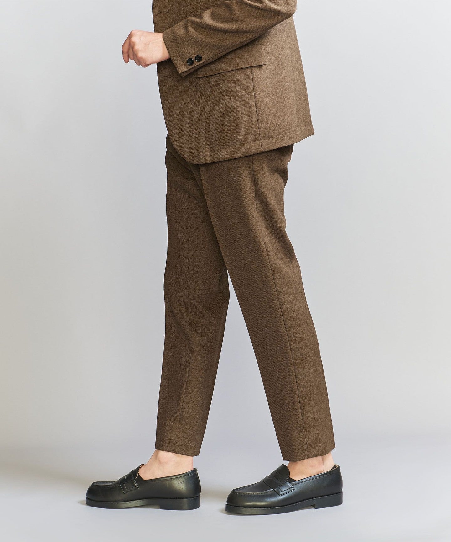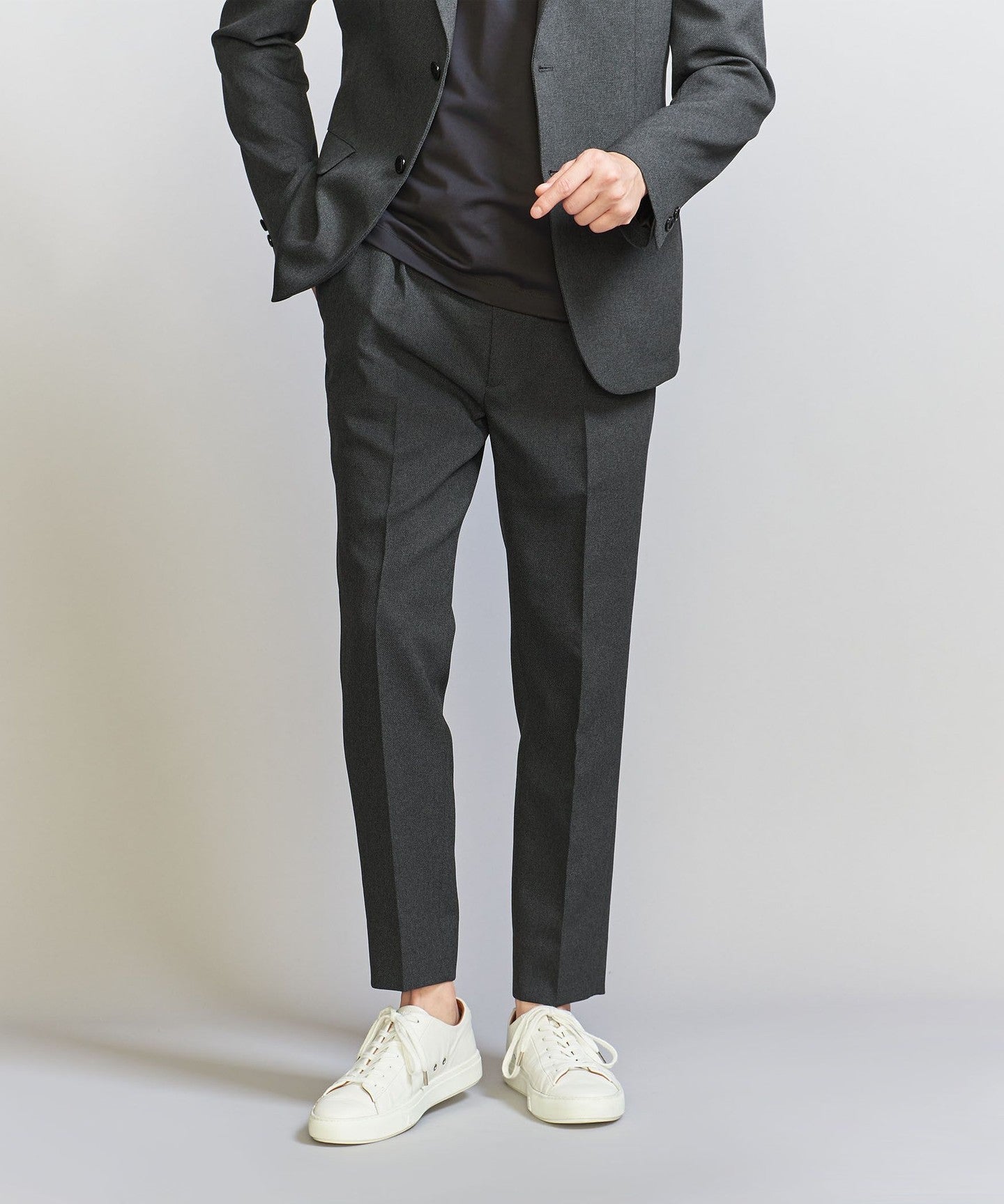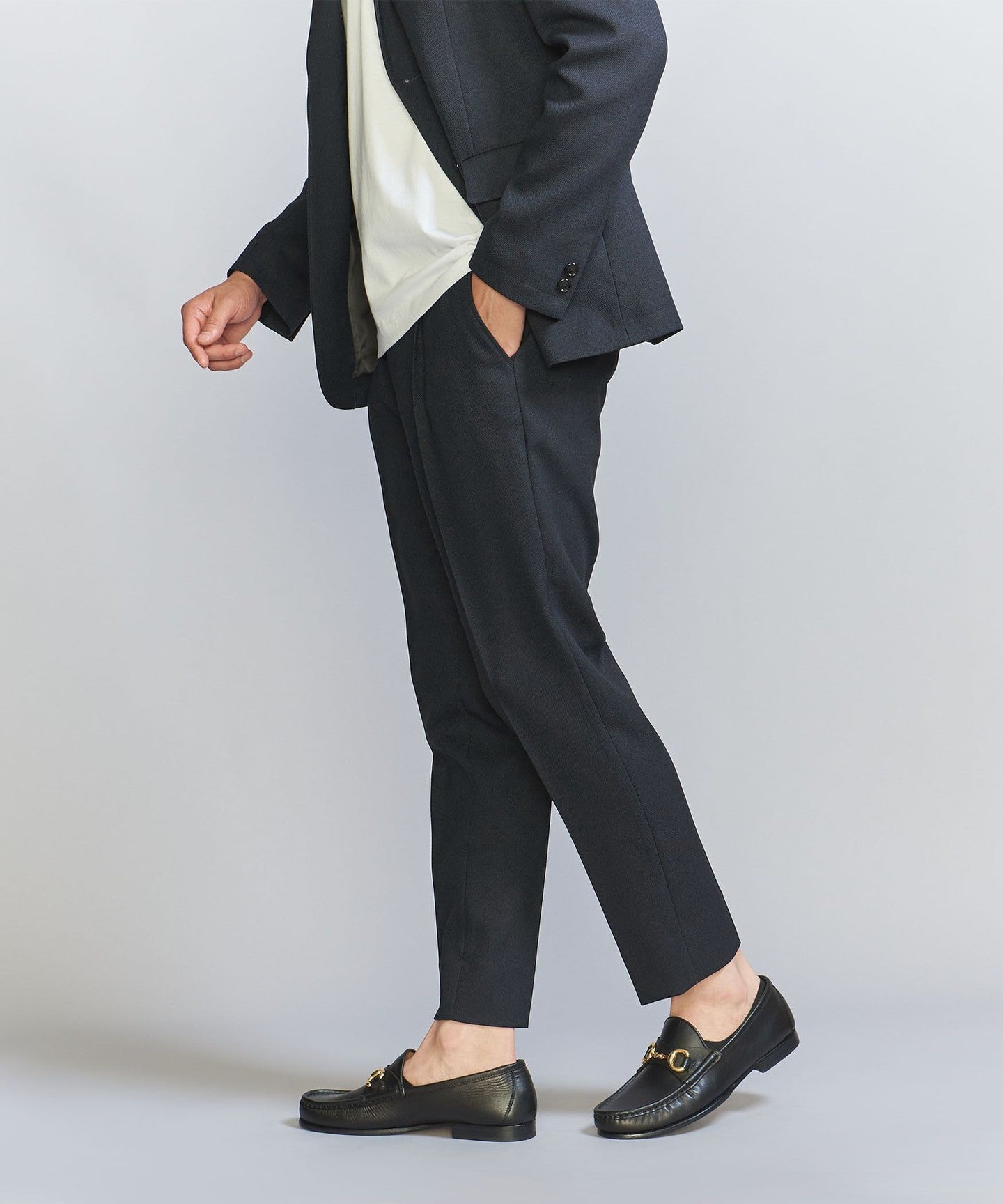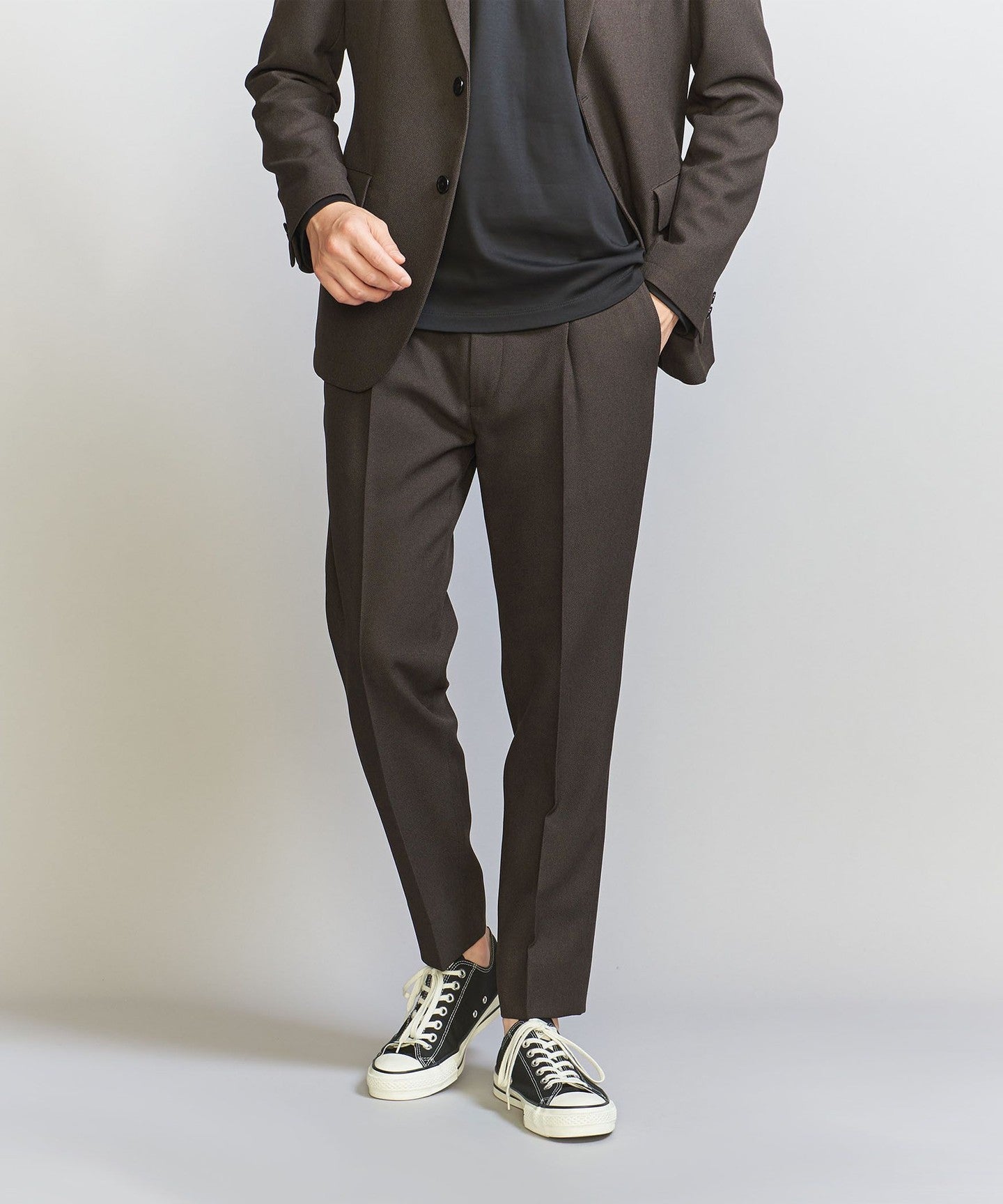 The pants have a single pleat that provides a moderate amount of room around the hips, while the slim tapered silhouette narrows towards the hem.