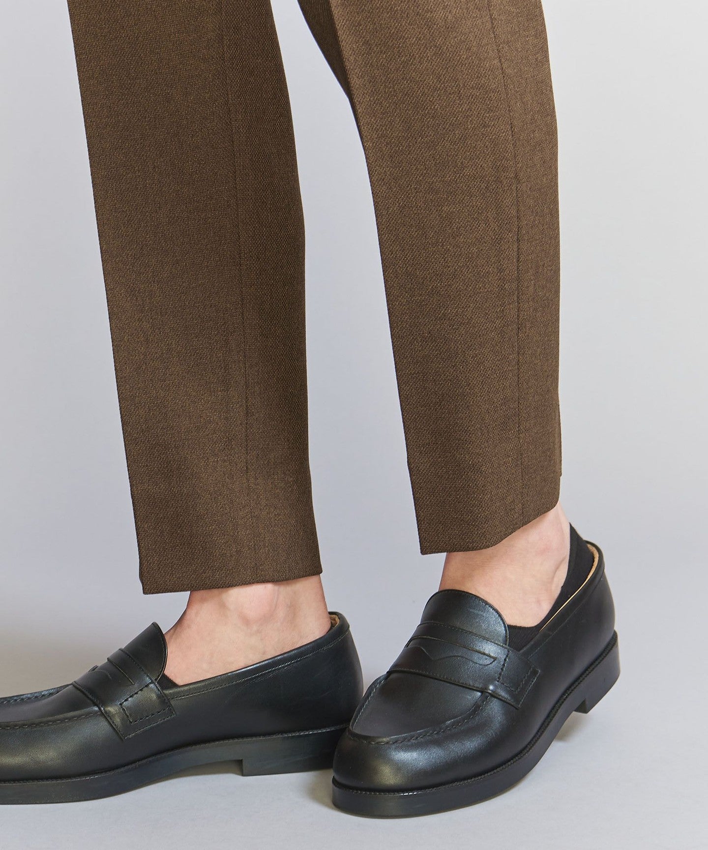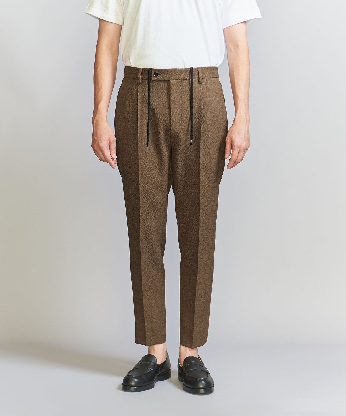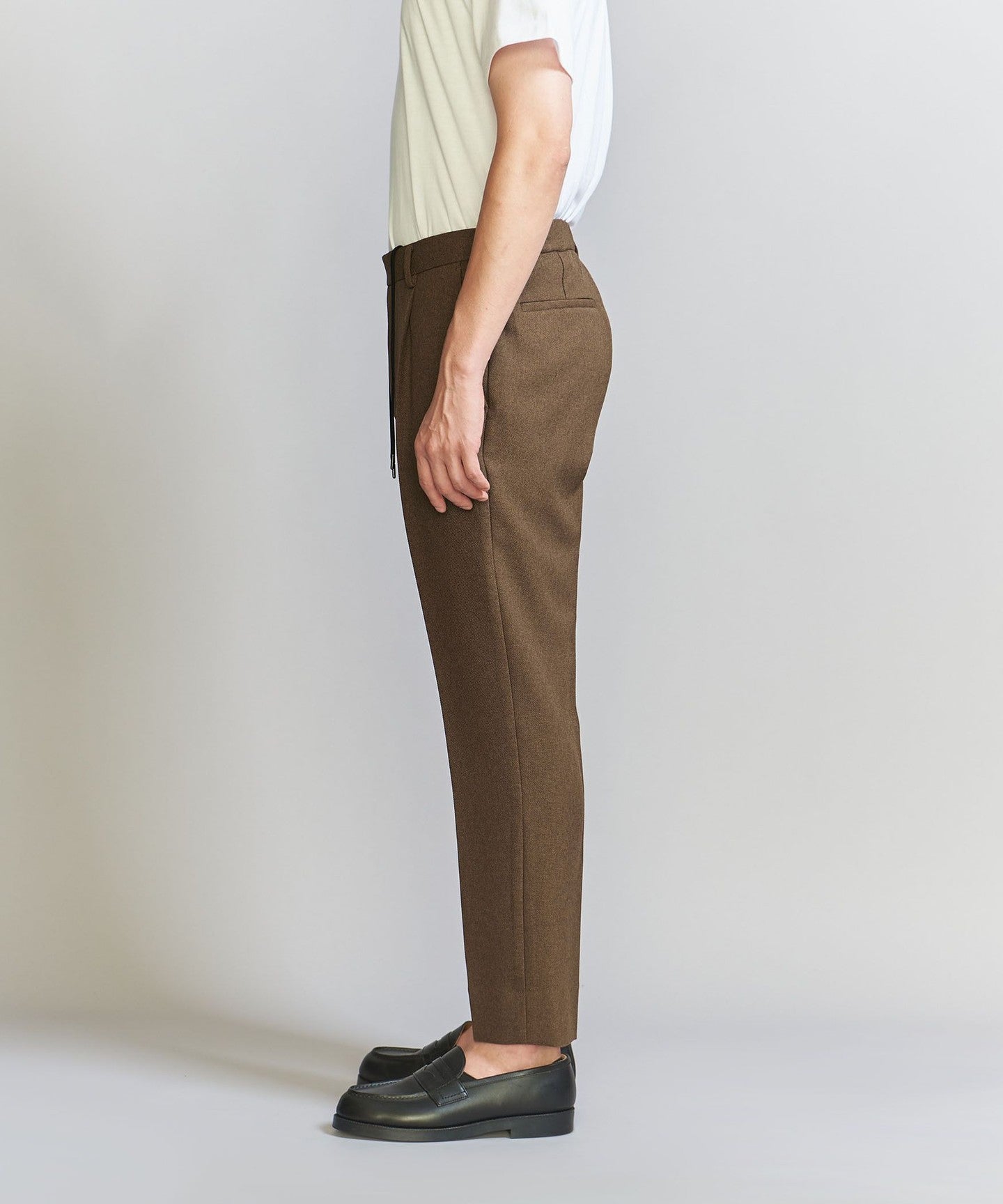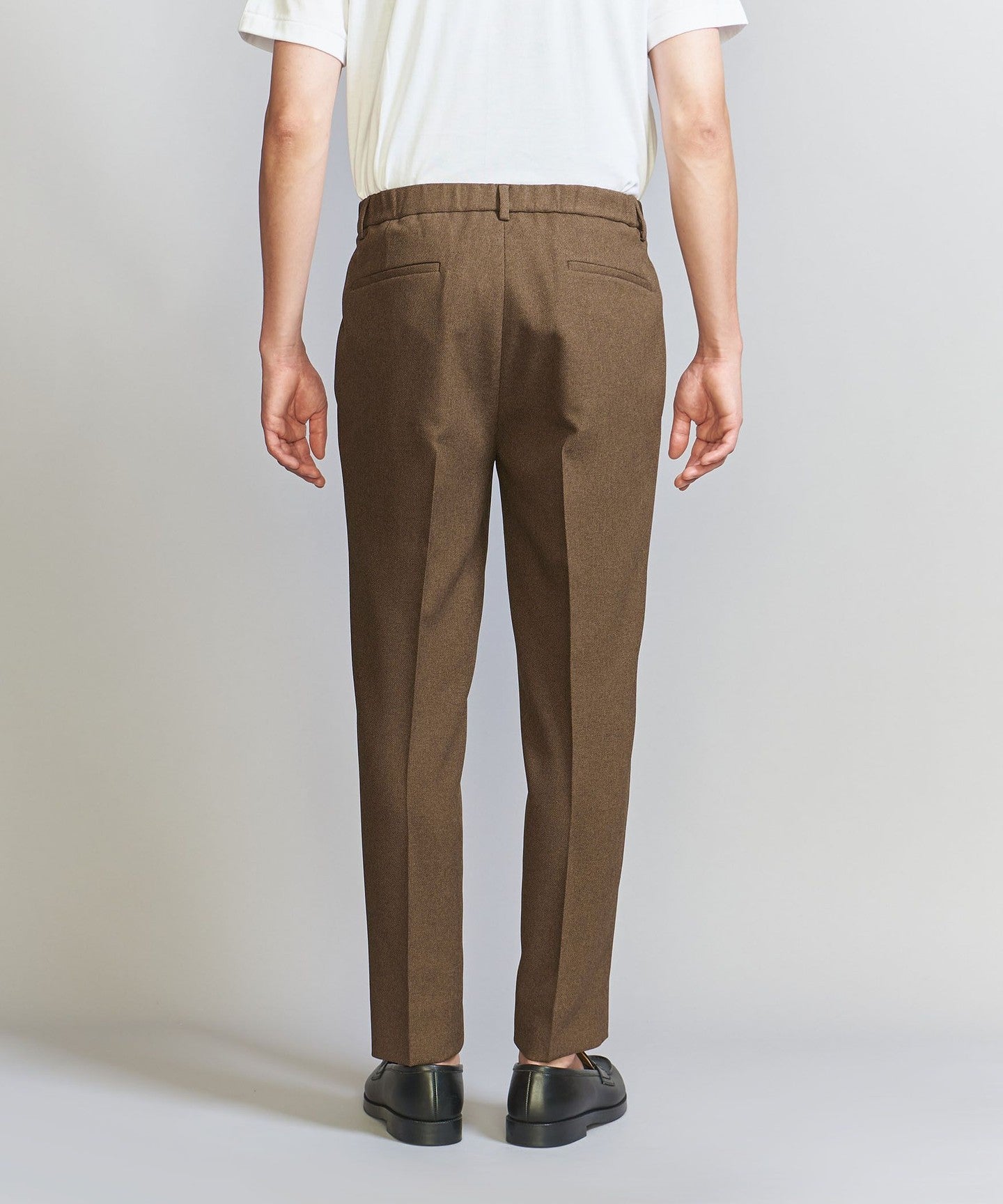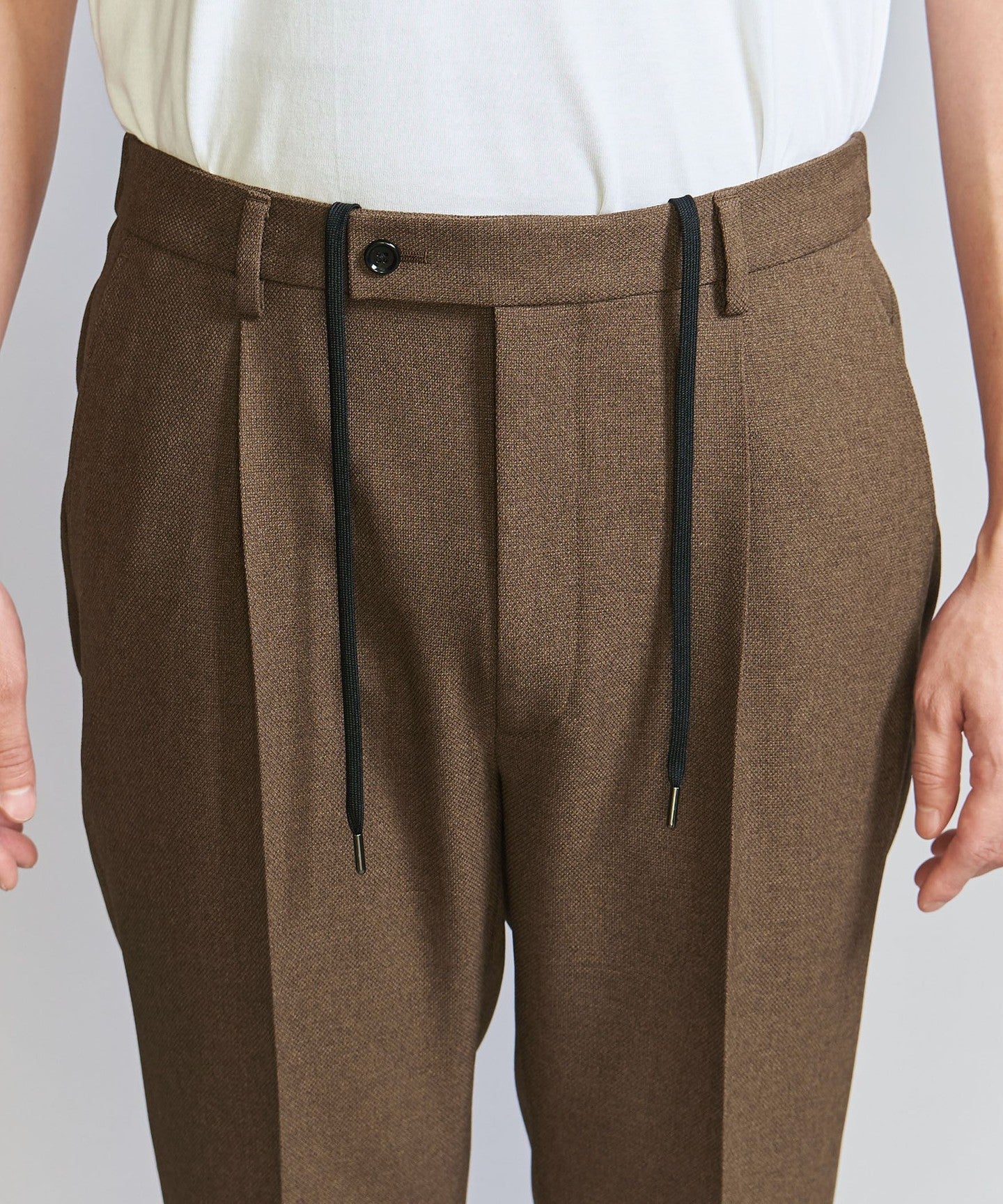 The pants have a single pleat that provides a moderate amount of room around the hips, while the slim tapered silhouette narrows towards the hem.