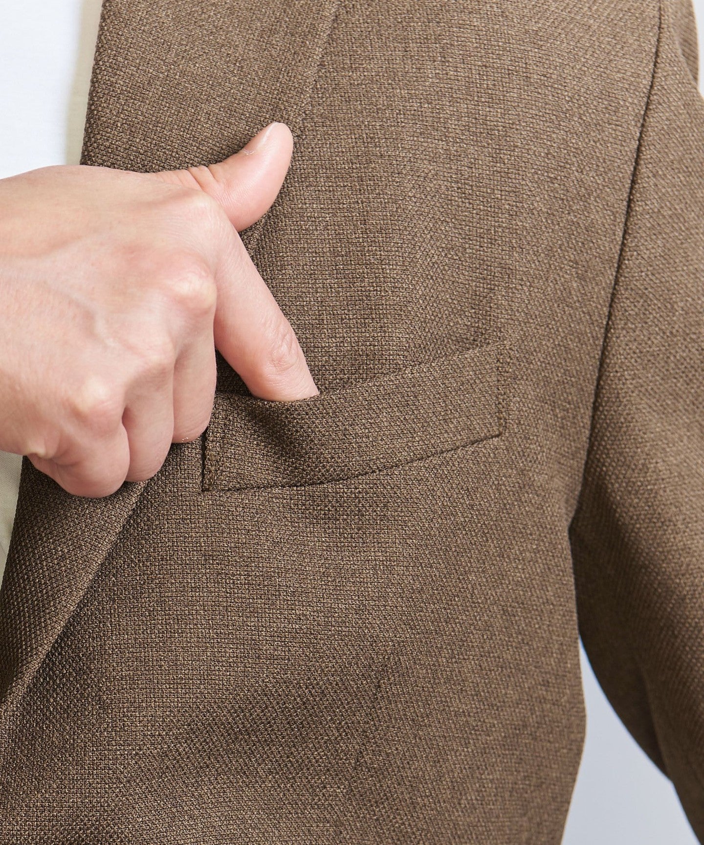 Product name: byS LANATEC JKT/1P EASY Product code: 12236040054 is a sharkskin twill weave that looks plain from a distance, but when you get closer you can see the woven pattern.