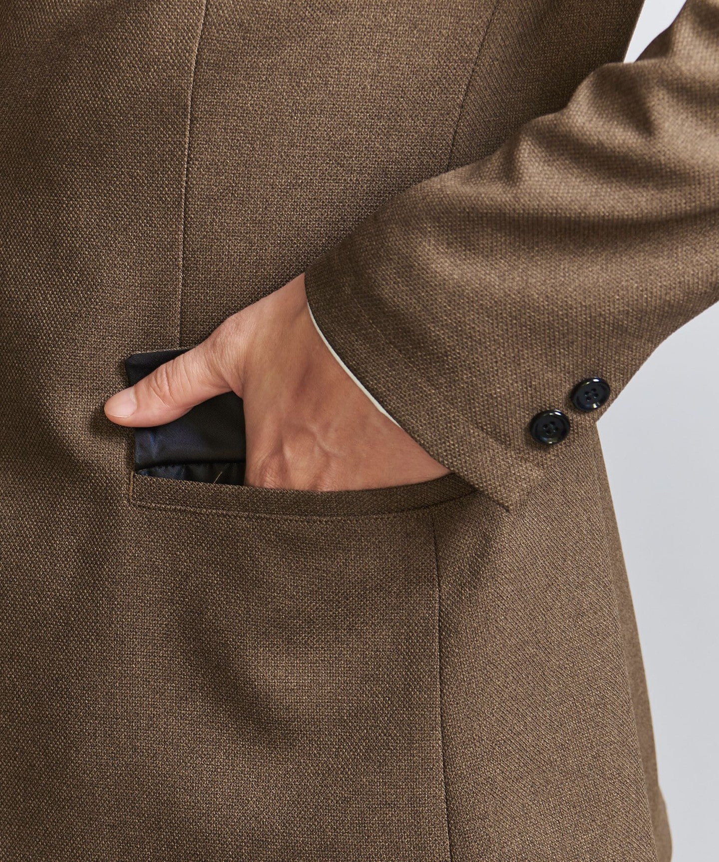 It features a single two-button closure, two-button opening at the cuffs, a center vent, notch lapels, two ball flap pockets, left and right inner pockets, and is fully lined, making it a design packed with carefully crafted details.