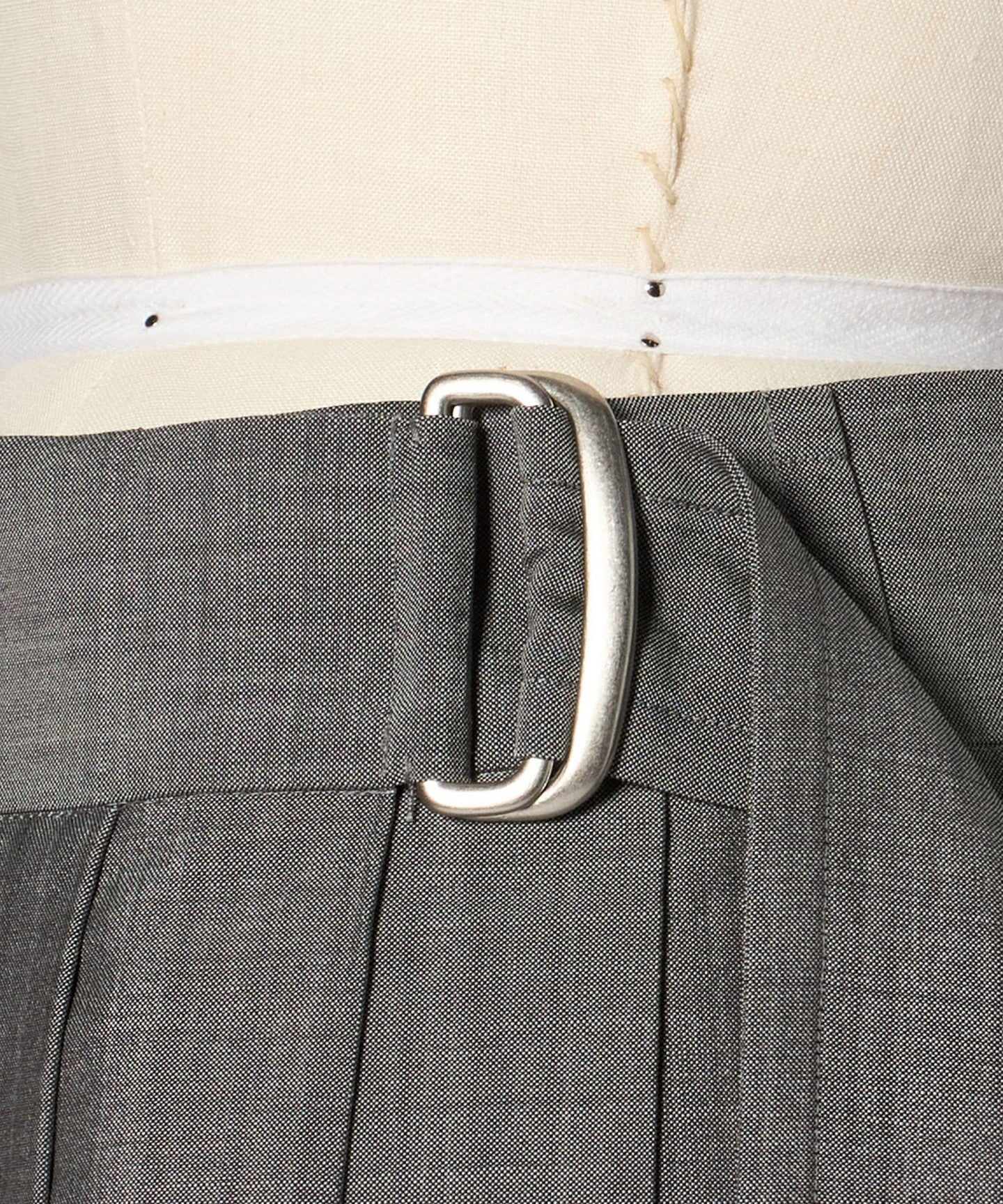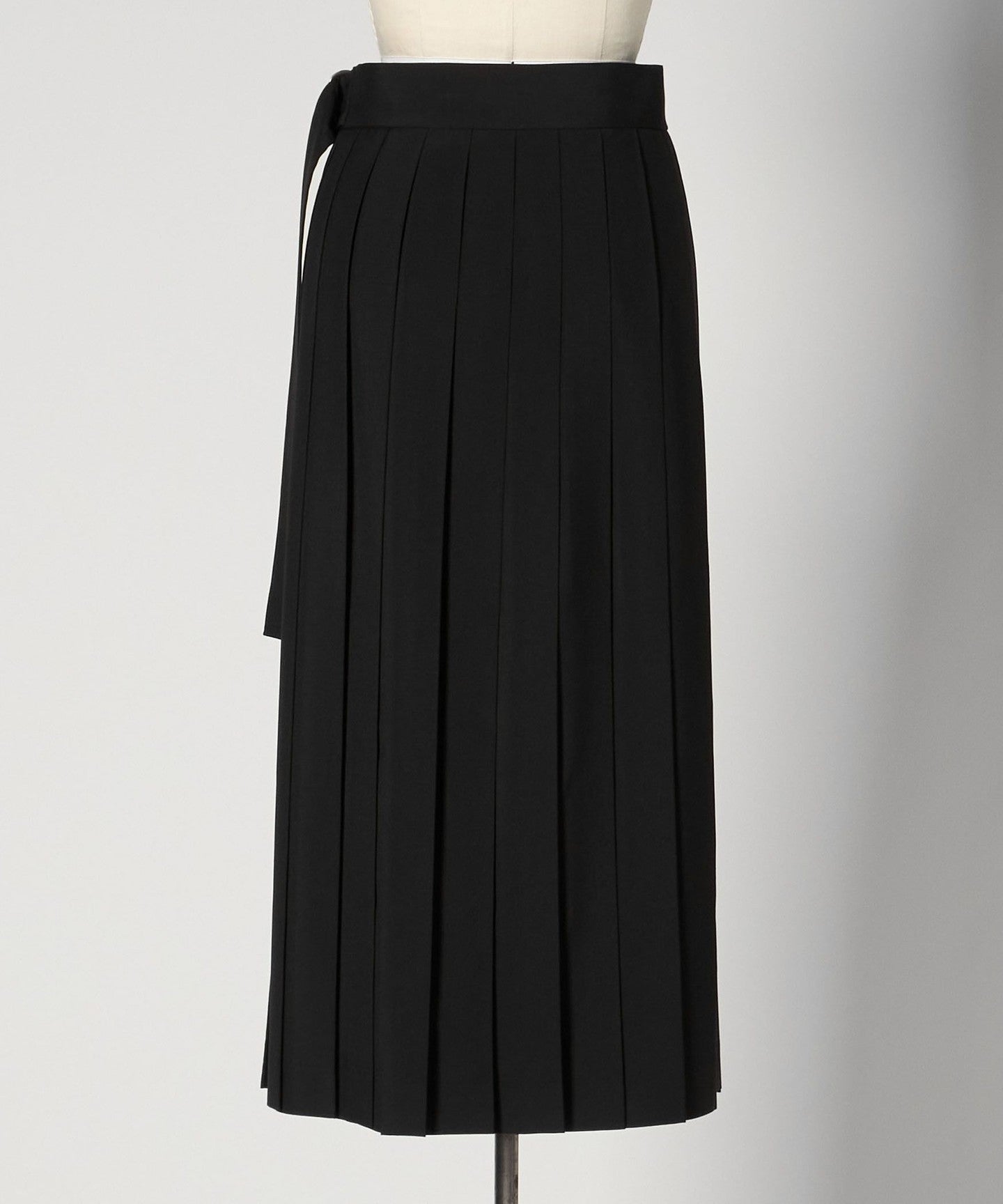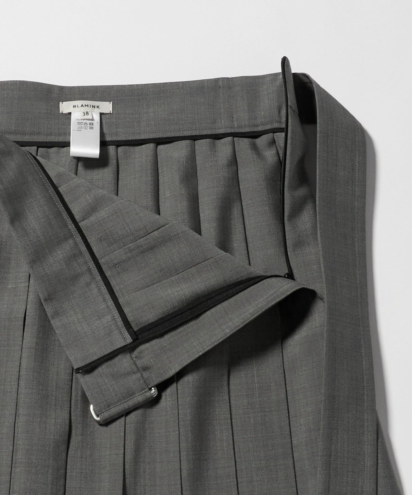 A long pleated skirt made from solid color wool mohair fabric that gives a gentle impression.