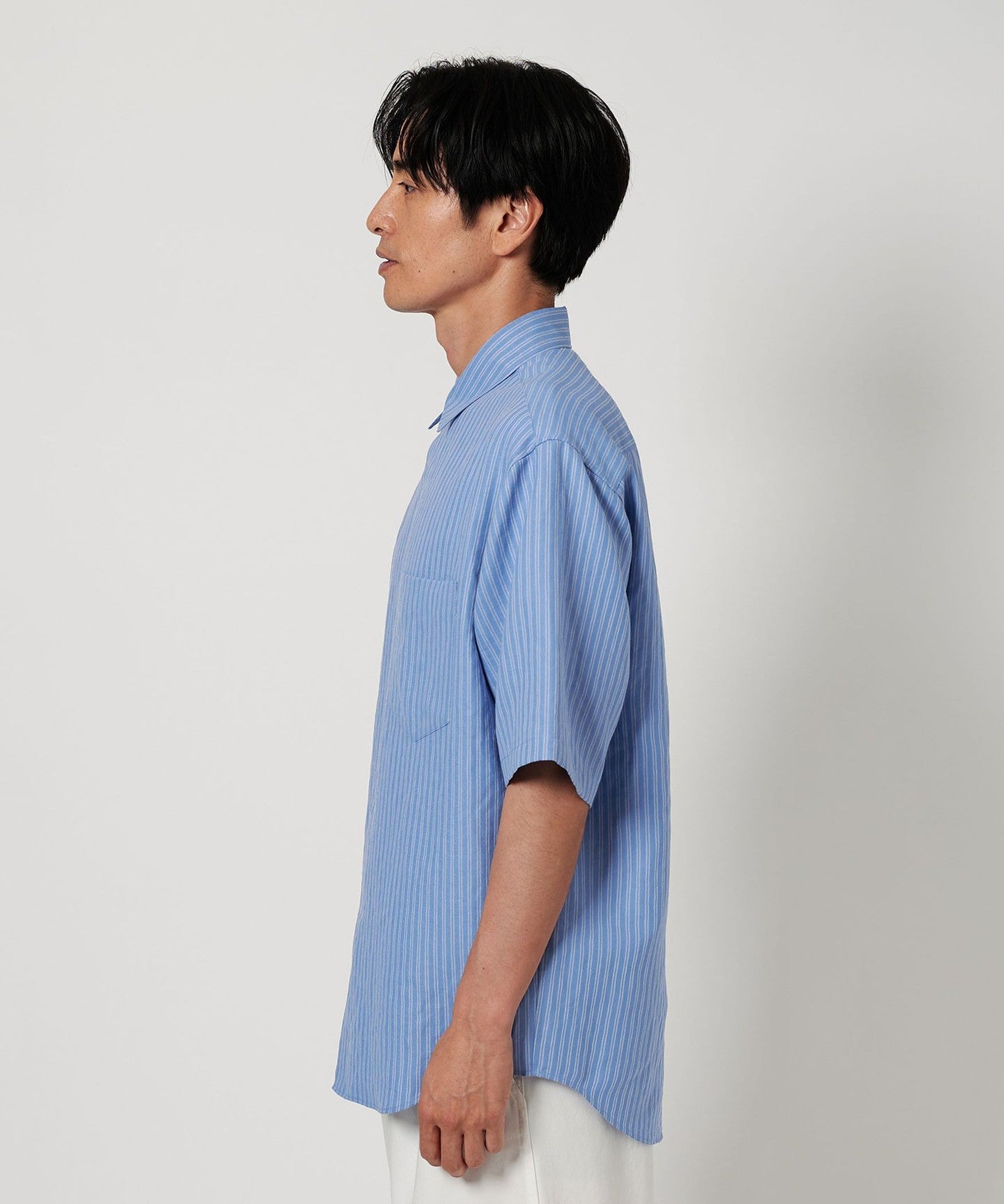 A basic shirt with a natural texture that resembles linen and a refreshing look that exudes coolness.