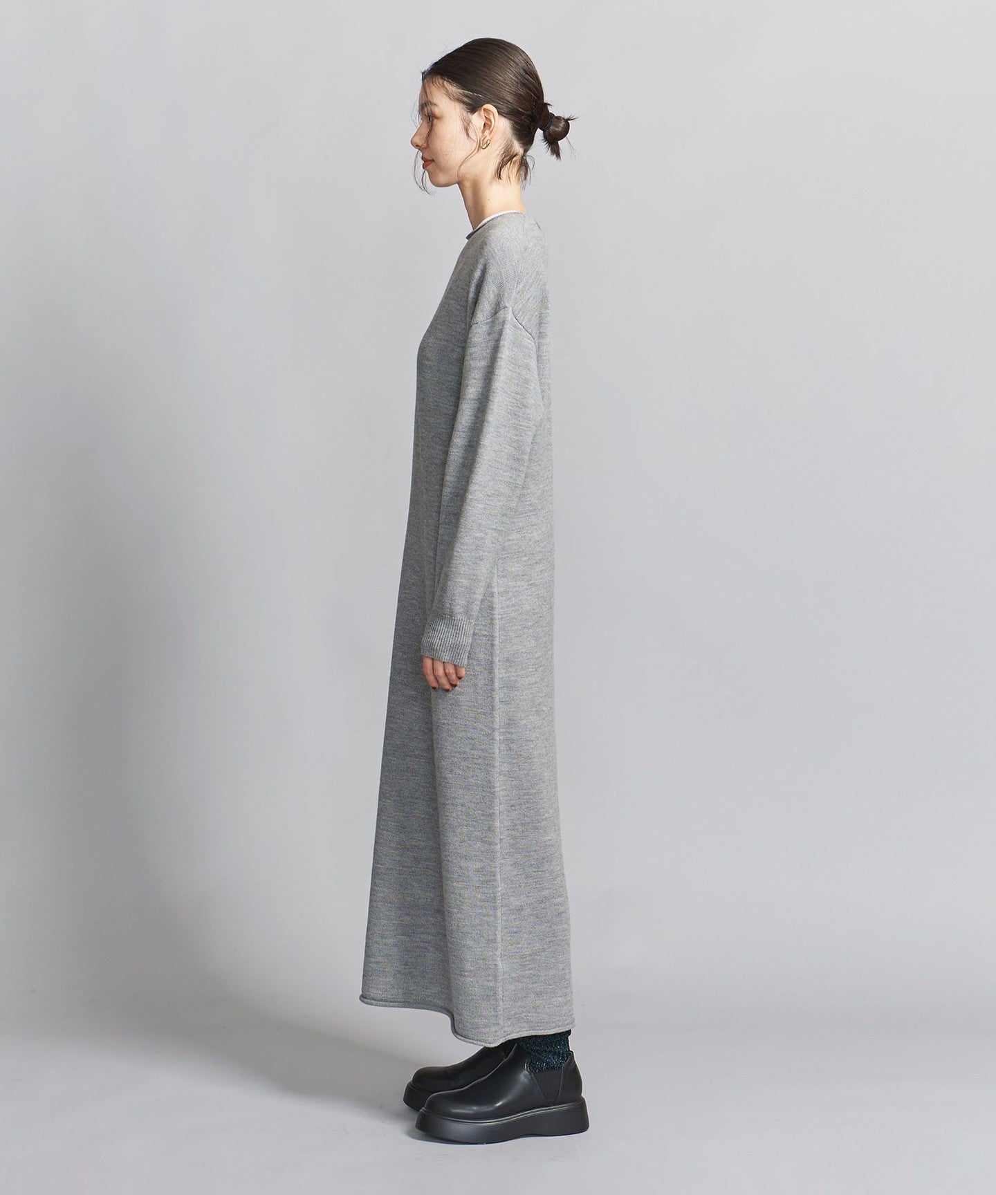 Neck and HEM The rolled design is the highlight of the subtle flare.KNITDRESS.