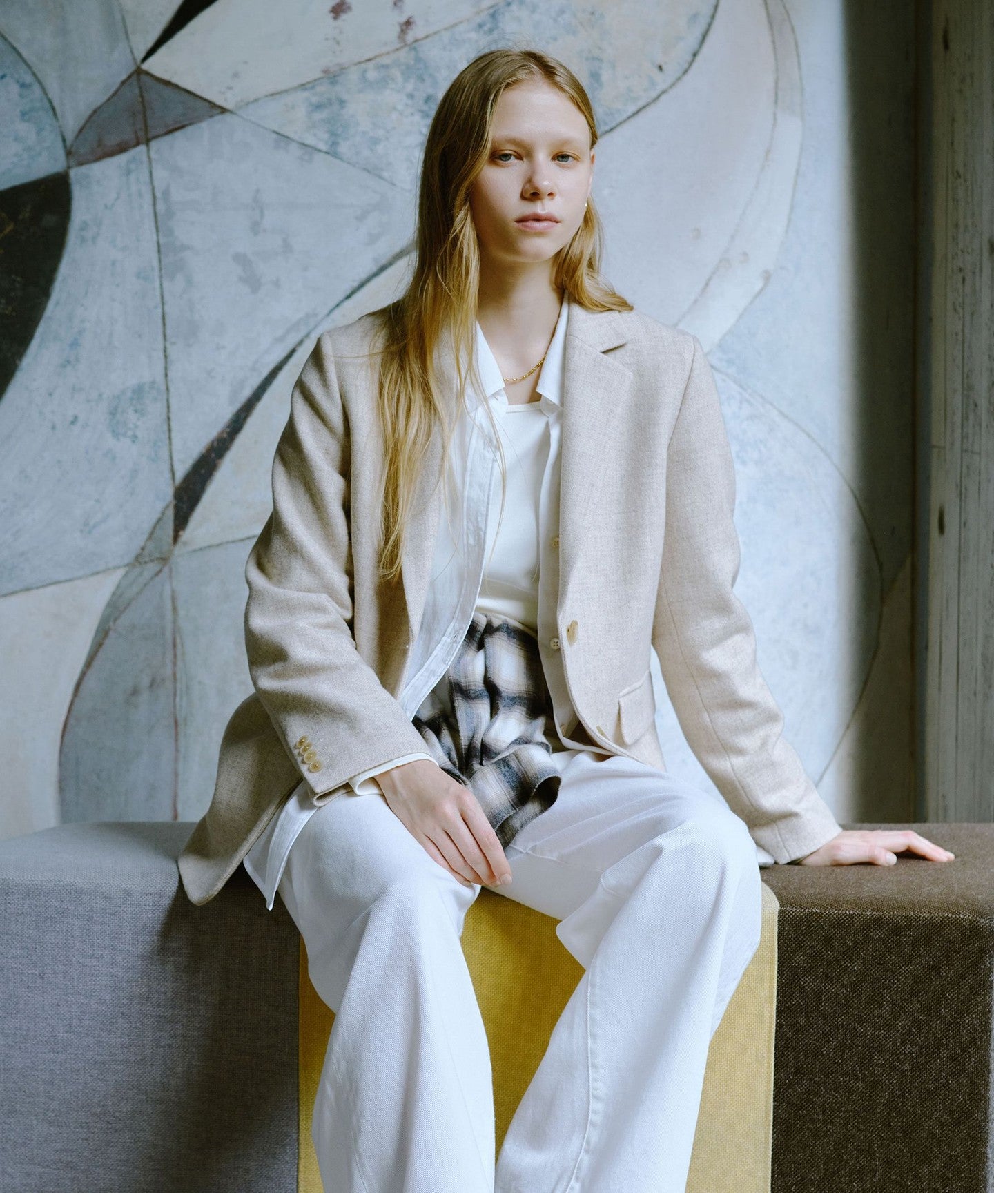 マニッシュになりすぎないよう、縦長の女性らしいシルエットに。