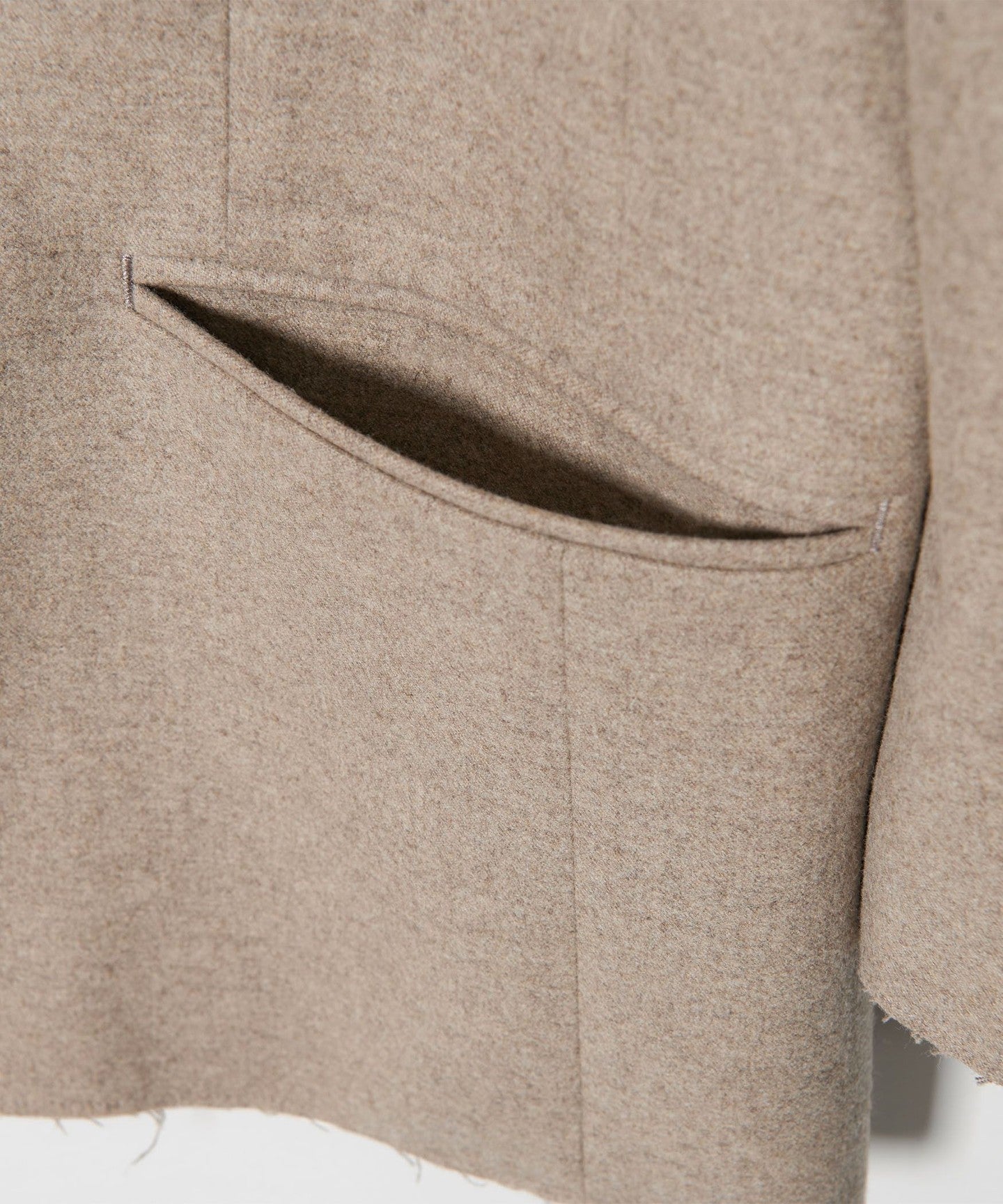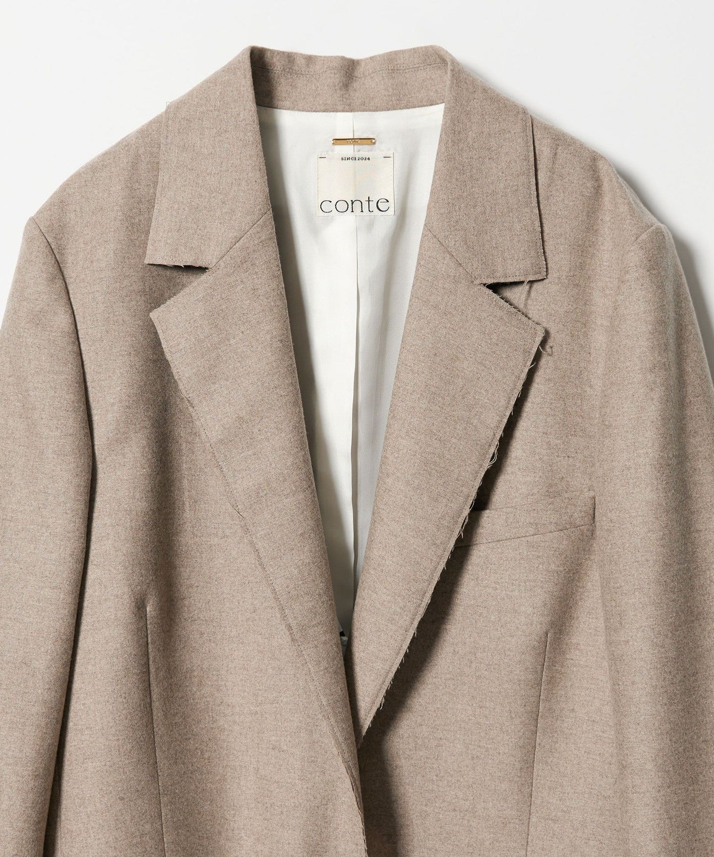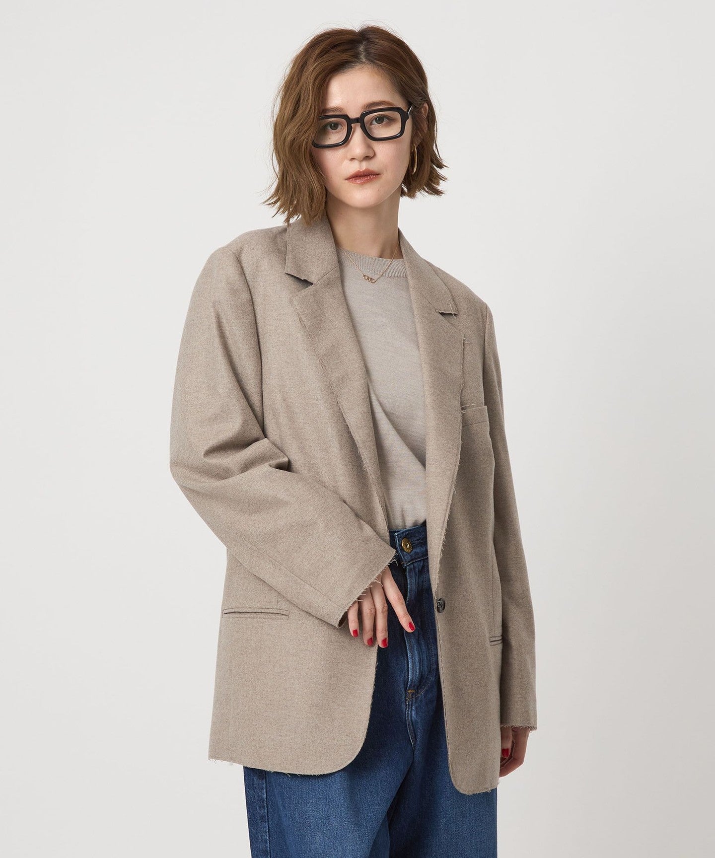 A tailored jacket with a raw edge that gives it a mature, relaxed feel.