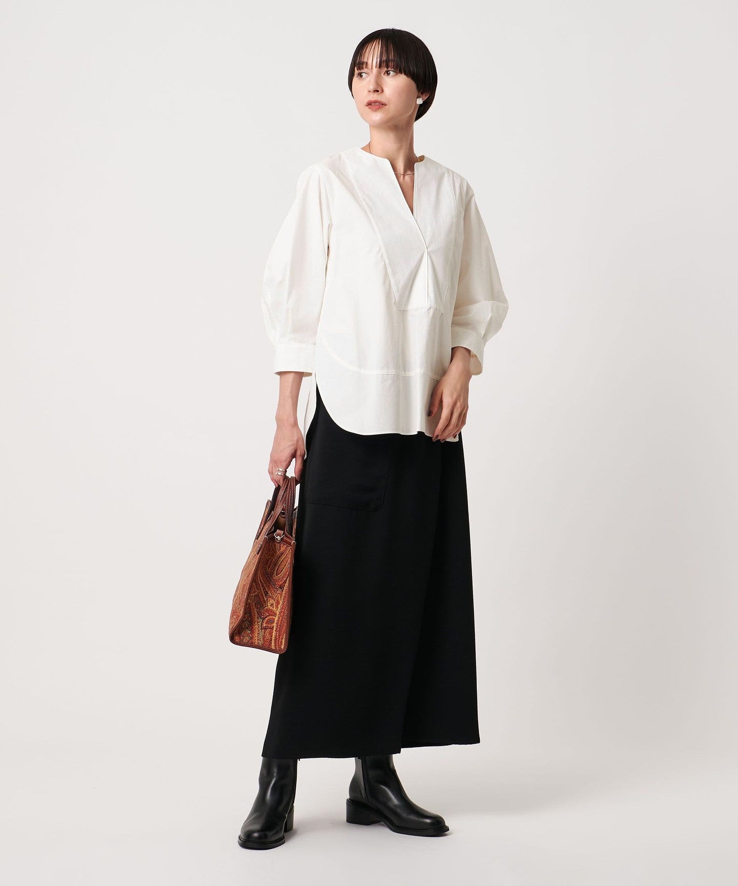 A shirt blouse with a sweetly deformed bottom shirt.