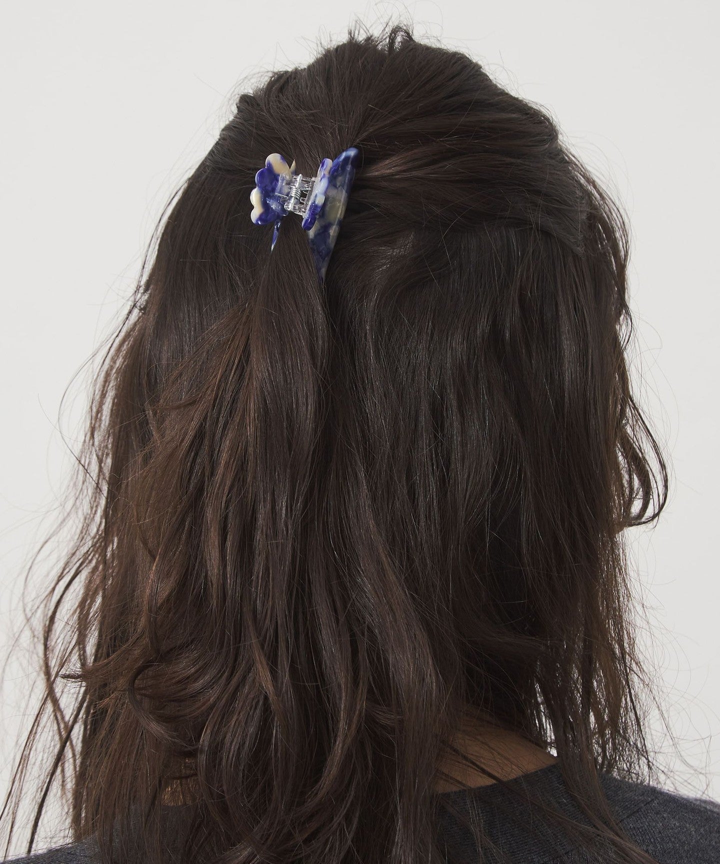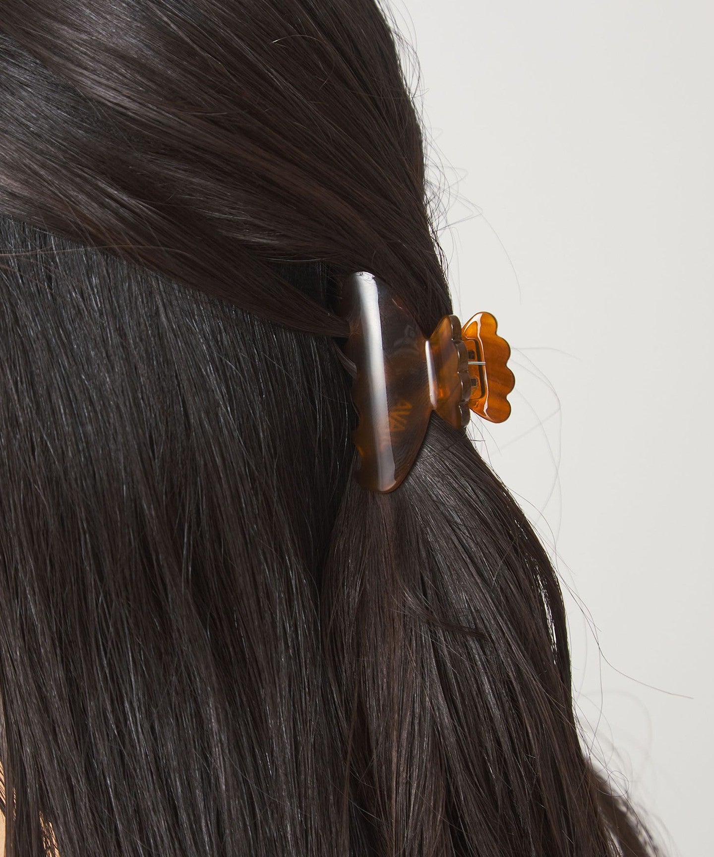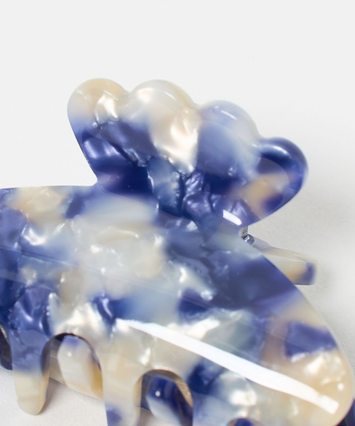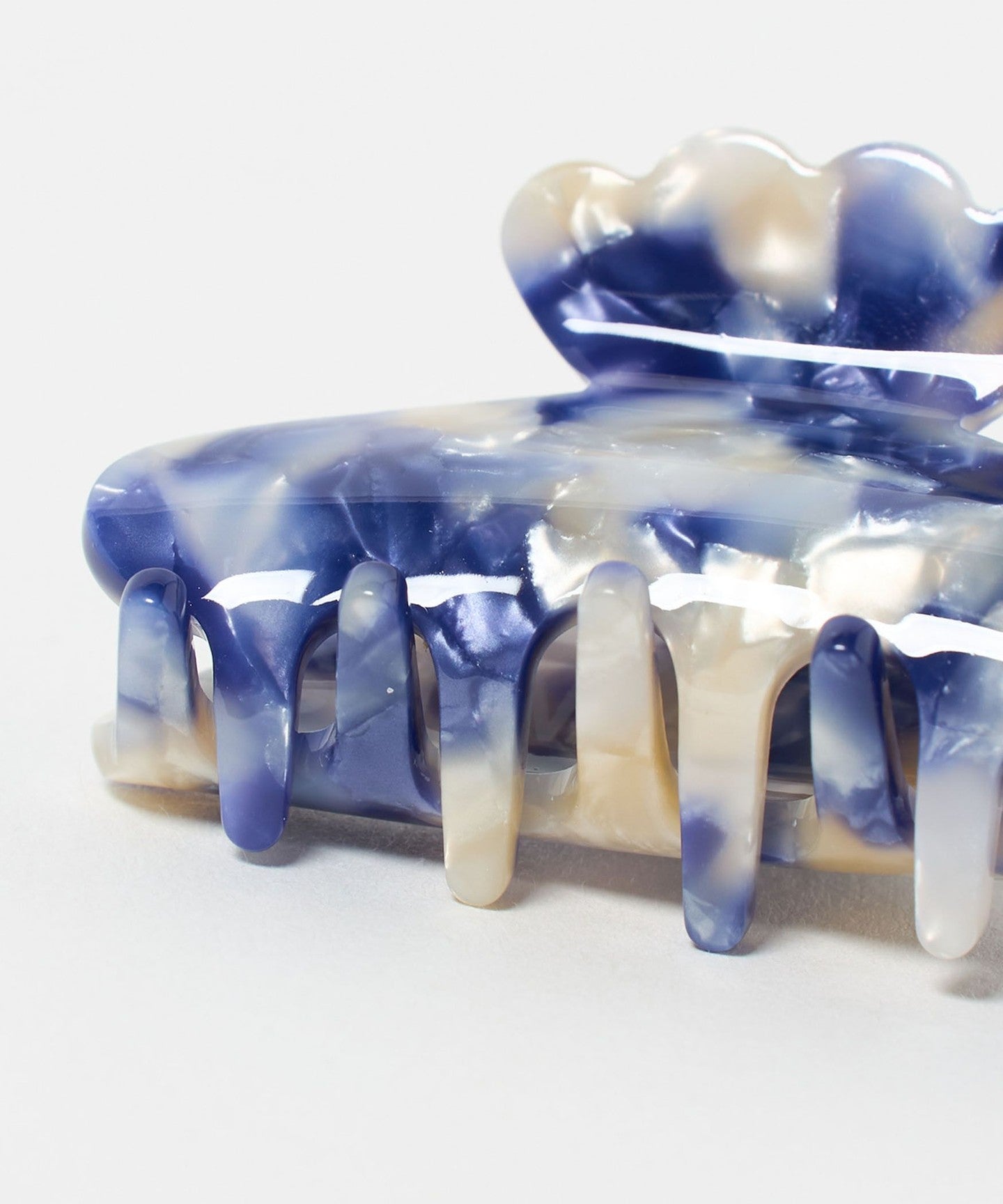 A large hair clip with a distinctive scalloped design on the handle.