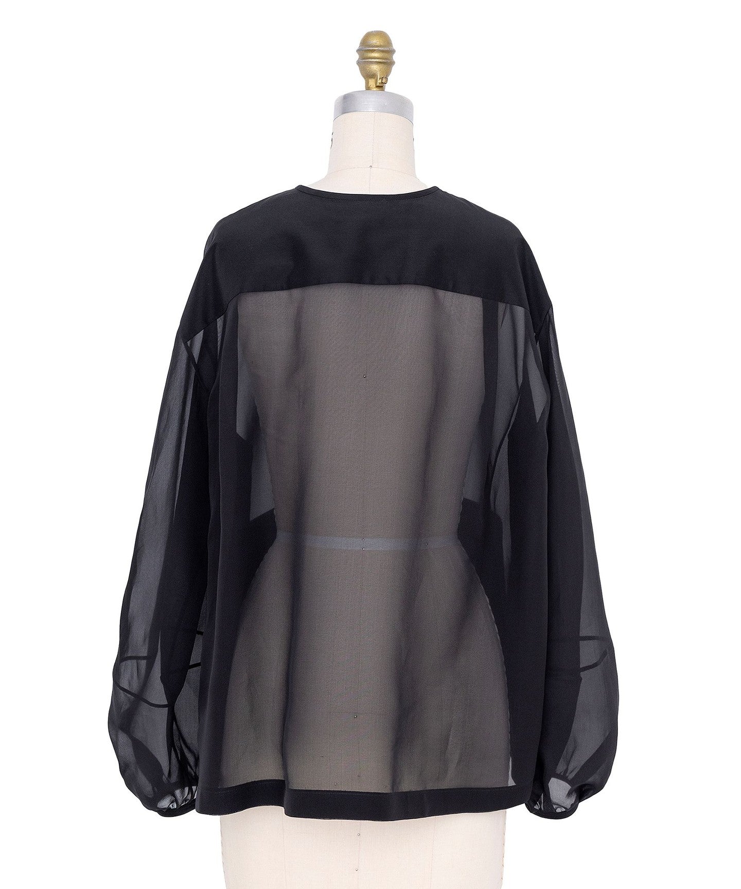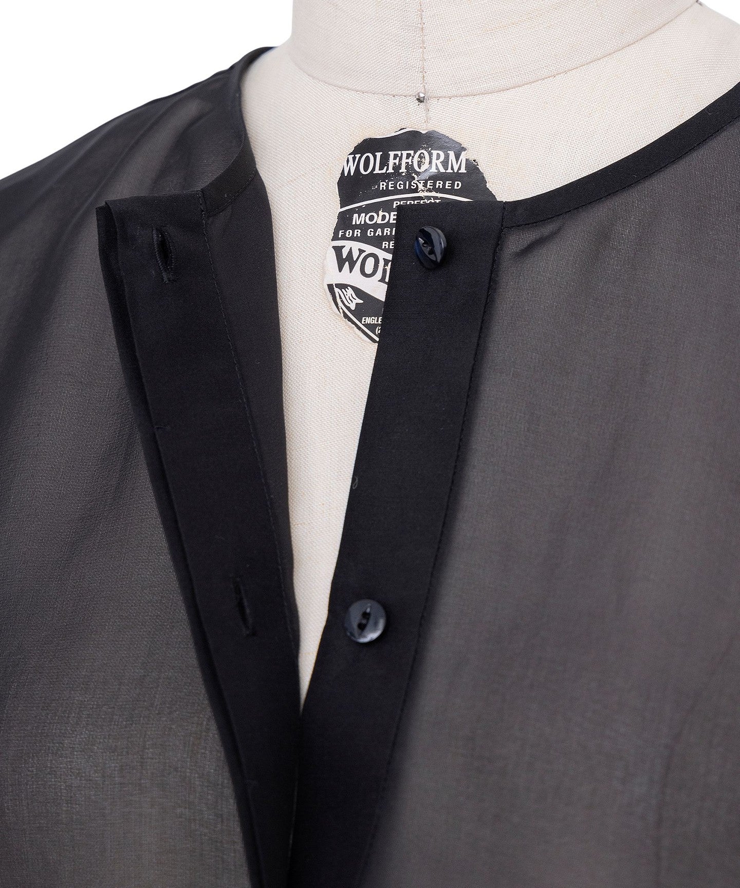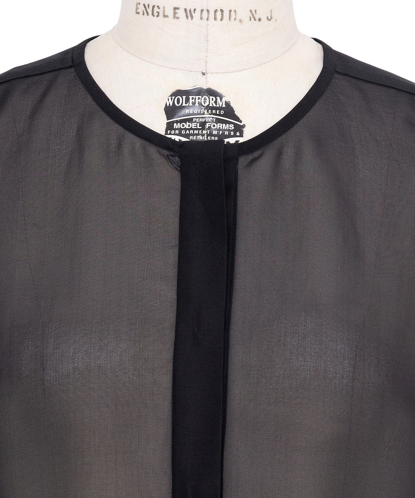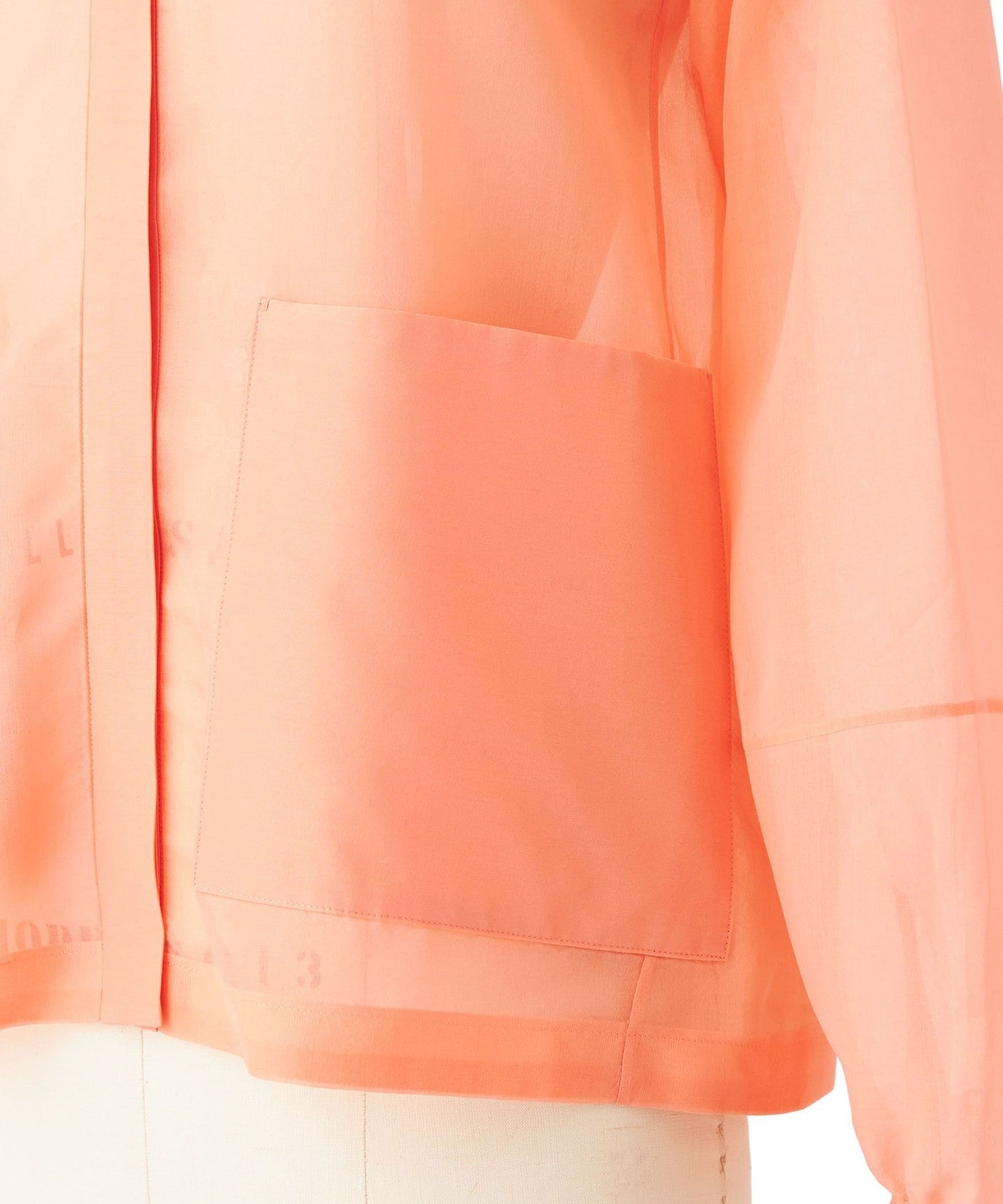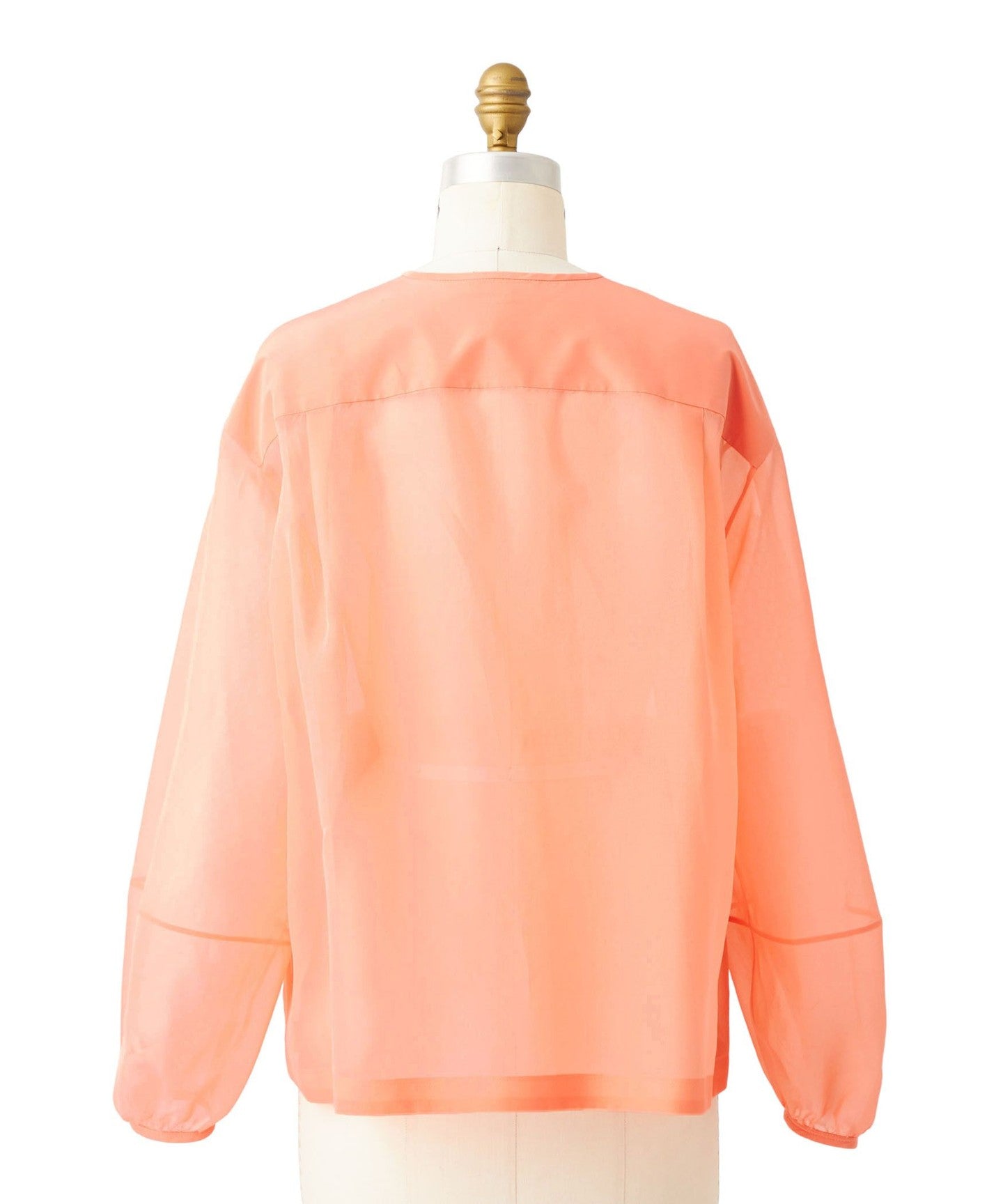 A sheer, collarless jacket that can be worn lightly.