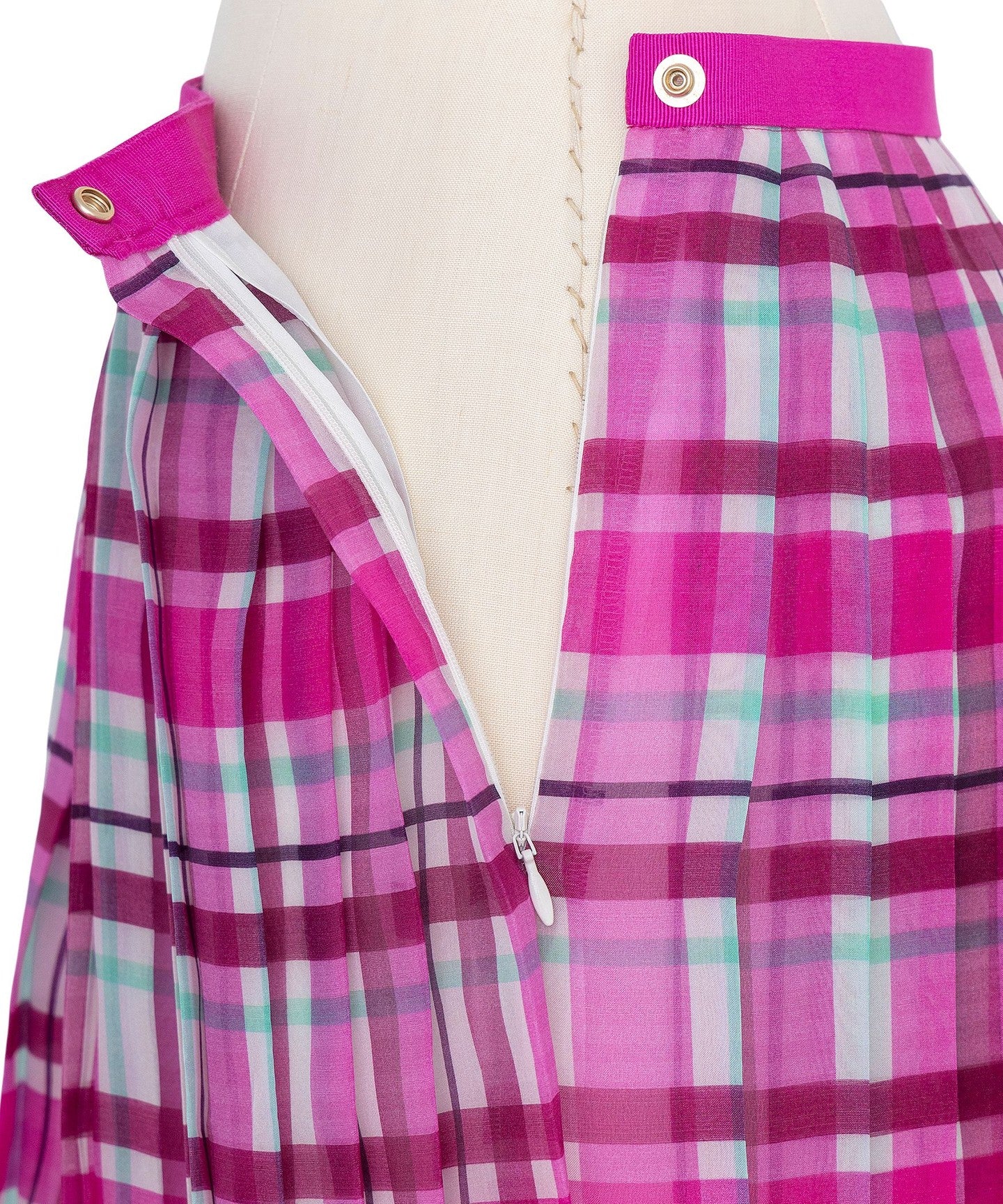 This skirt features neat pleats designed to beautifully show off the check pattern.