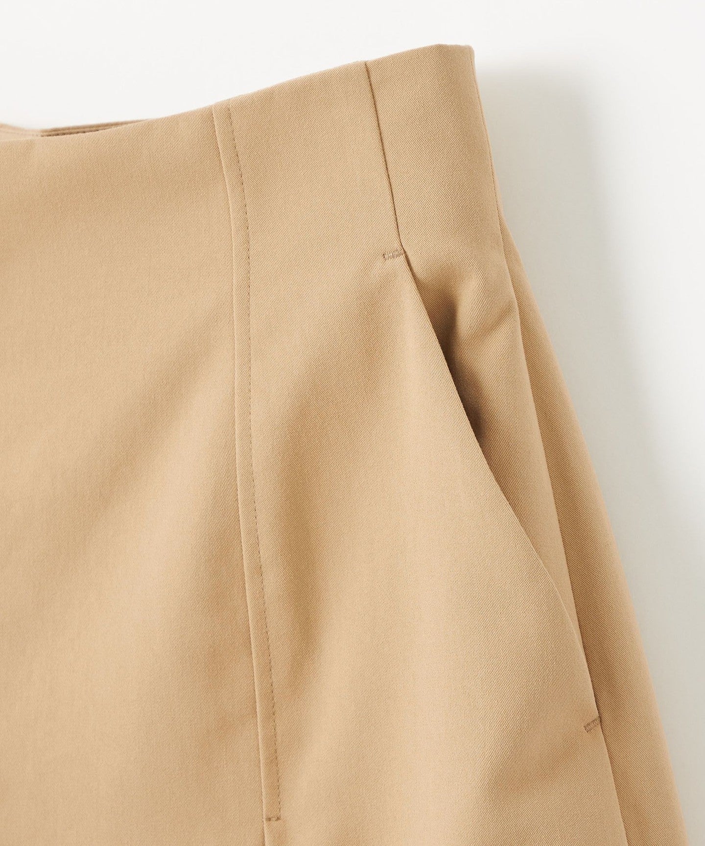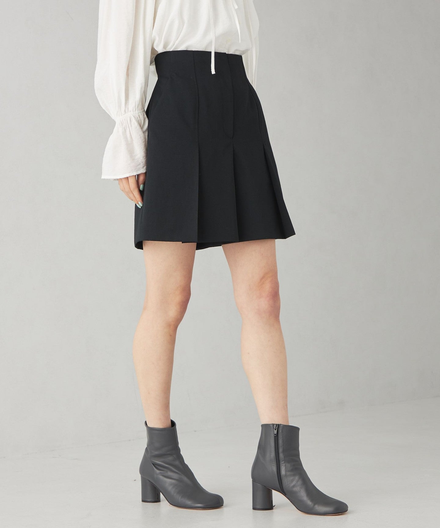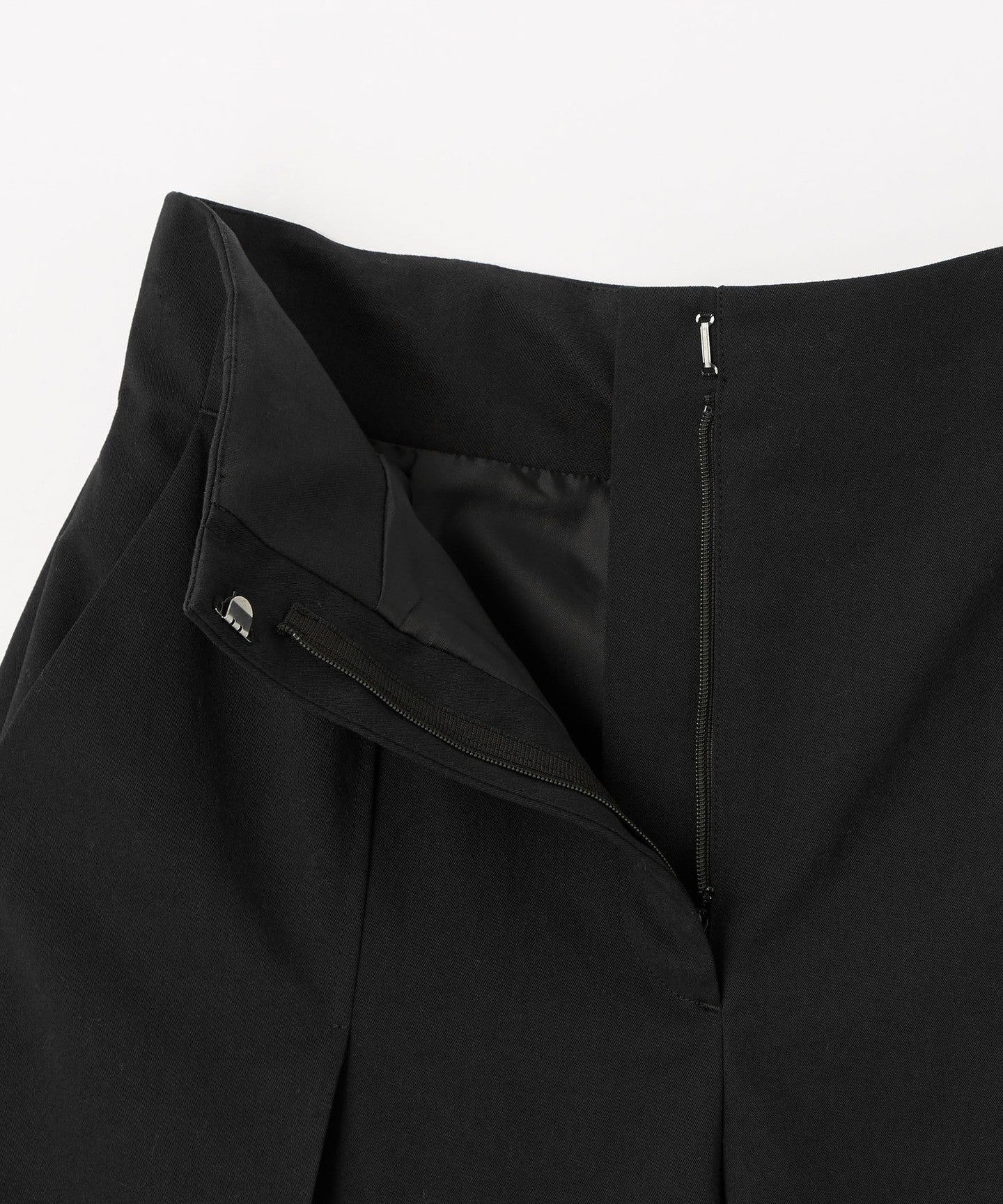 The deep tucks on the front emphasize the vertical lines, and the slightly flared silhouette allows it to be worn like a skirt.