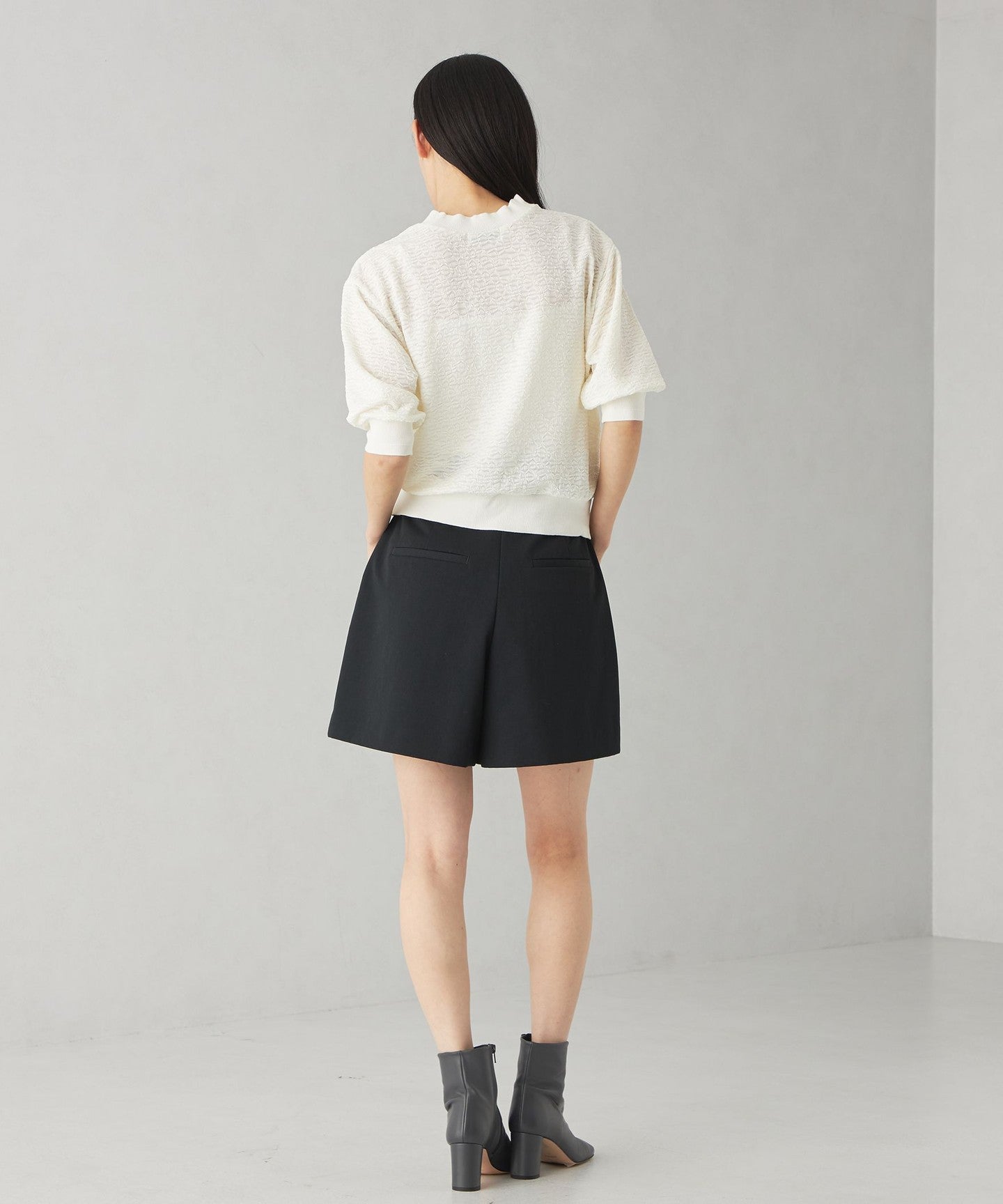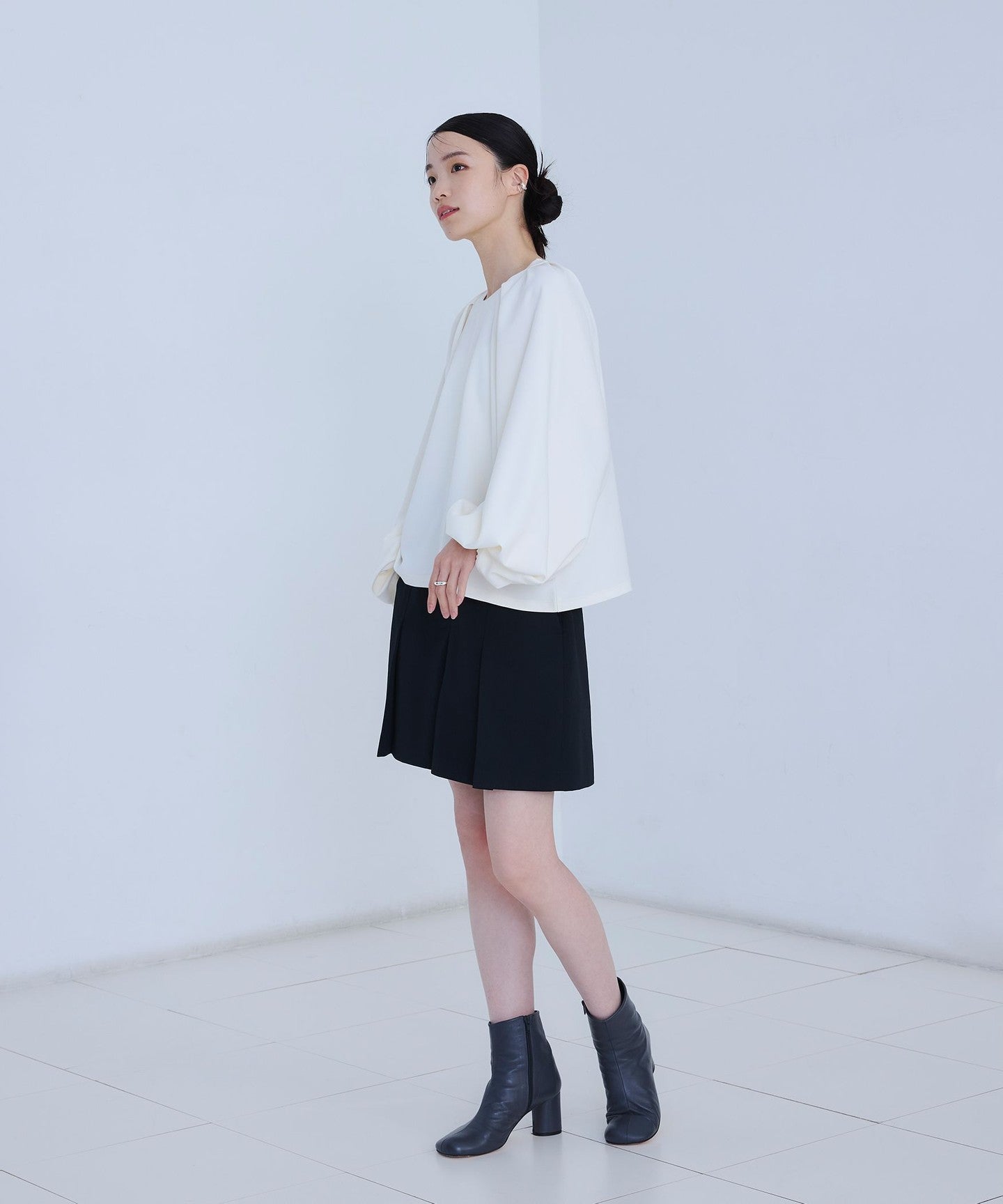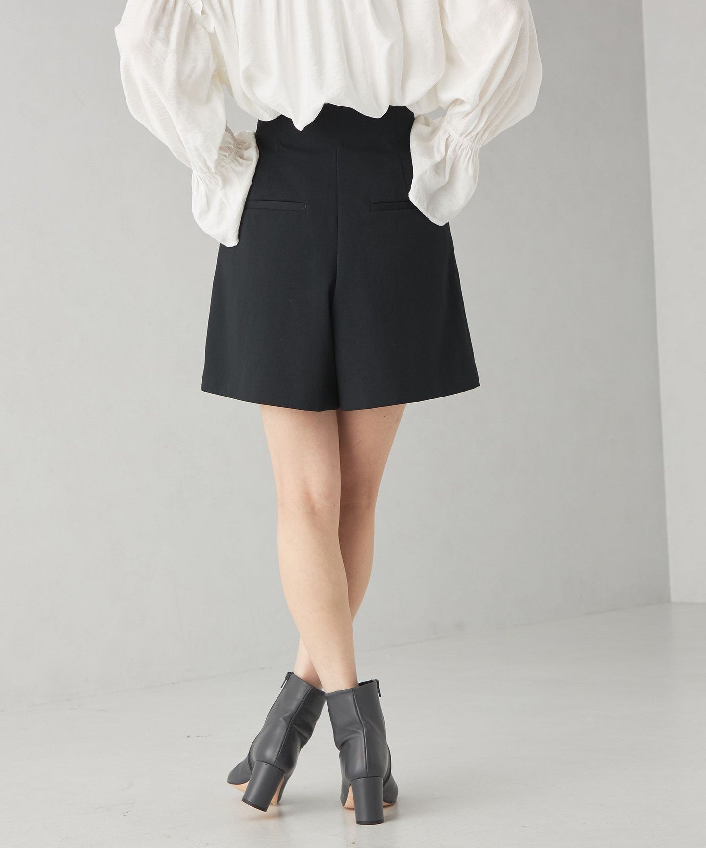 The deep tucks on the front emphasize the vertical lines, and the slightly flared silhouette allows it to be worn like a skirt.