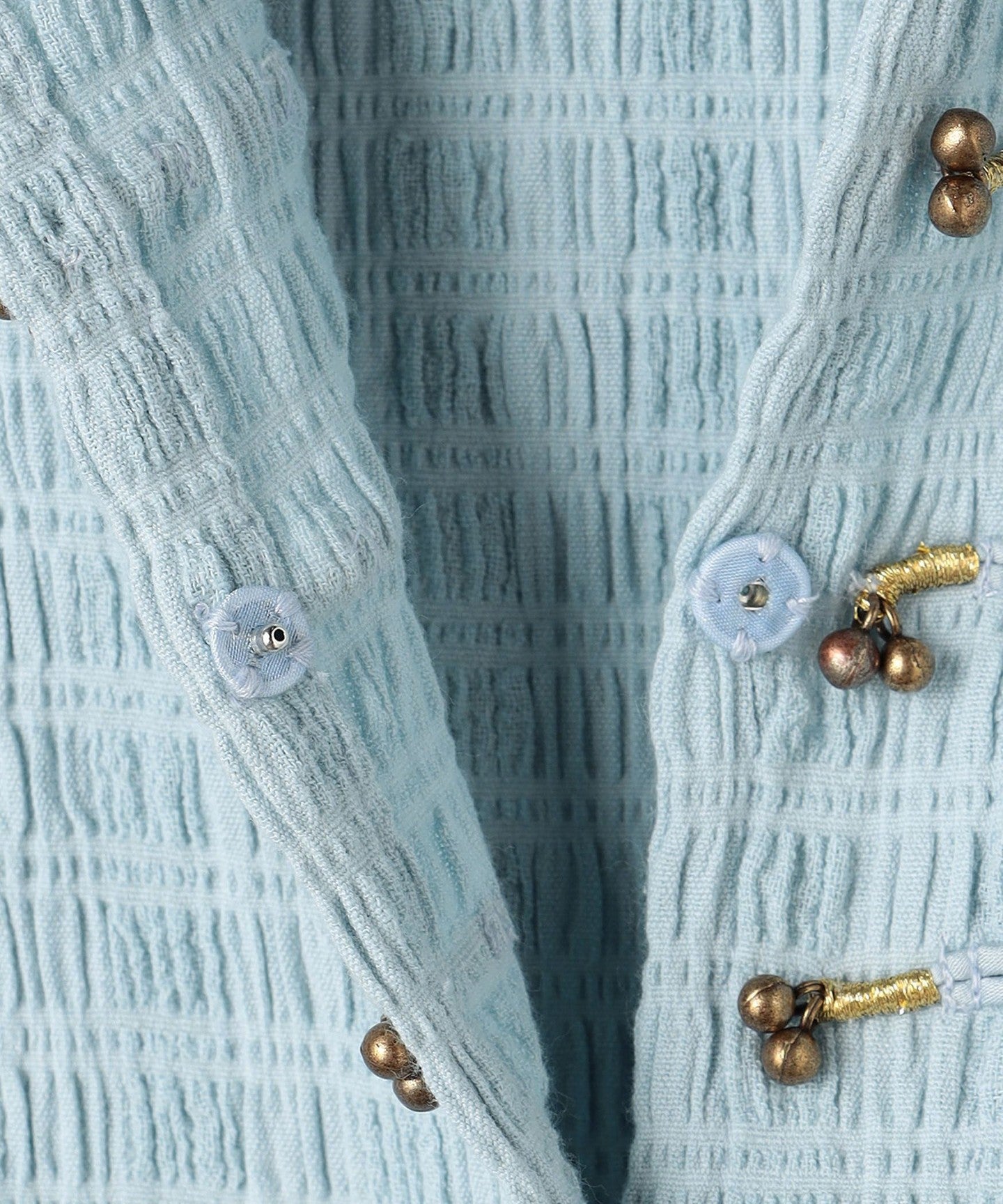 In addition, a small amount of linen is added to the cotton thread, and the fabric is woven with shading on the surface, making the same-color shadow check pattern stand out.