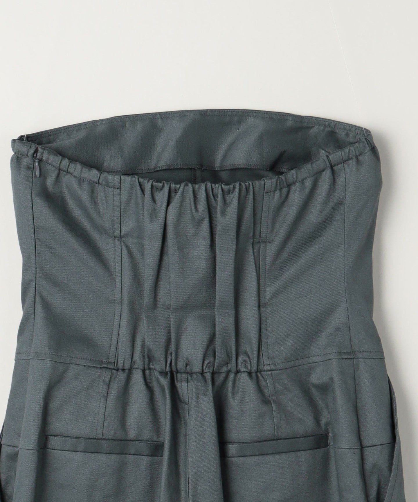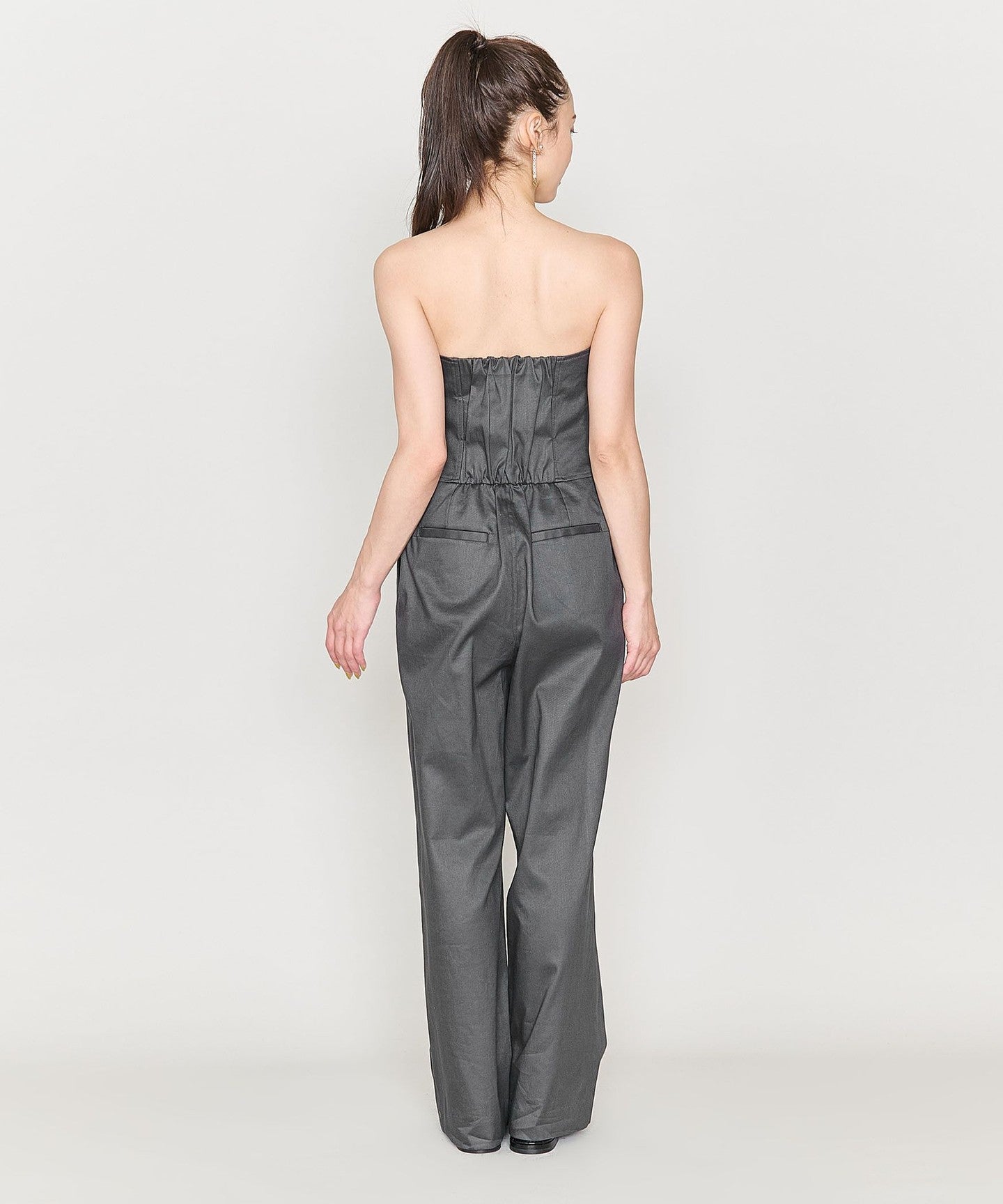 The upper body has shirring at the back for a snug fit, while the pants have a relaxed silhouette for a comfortable drape.