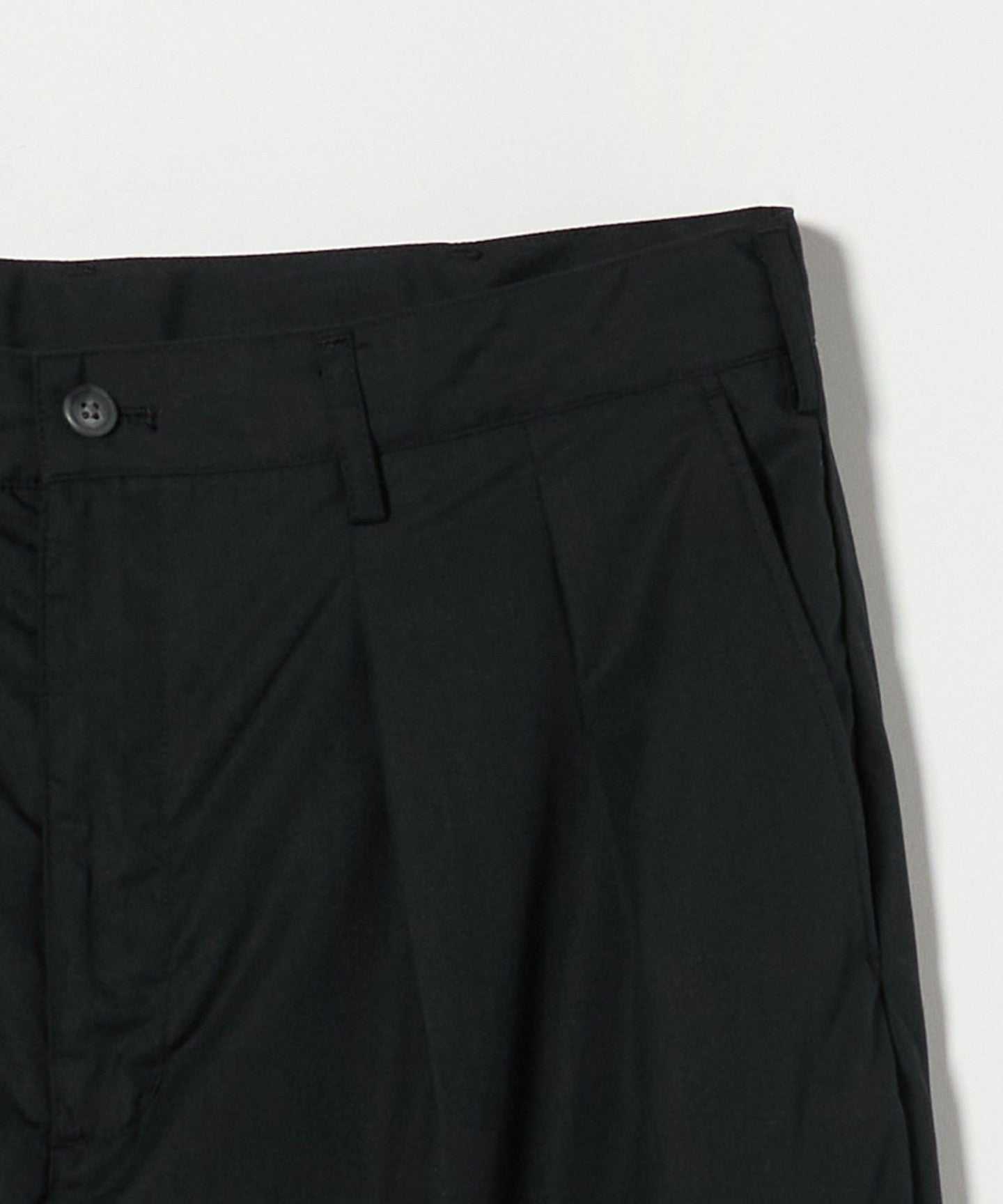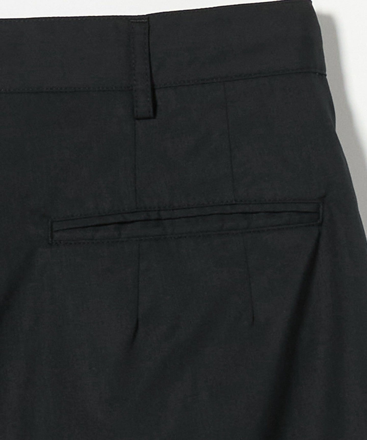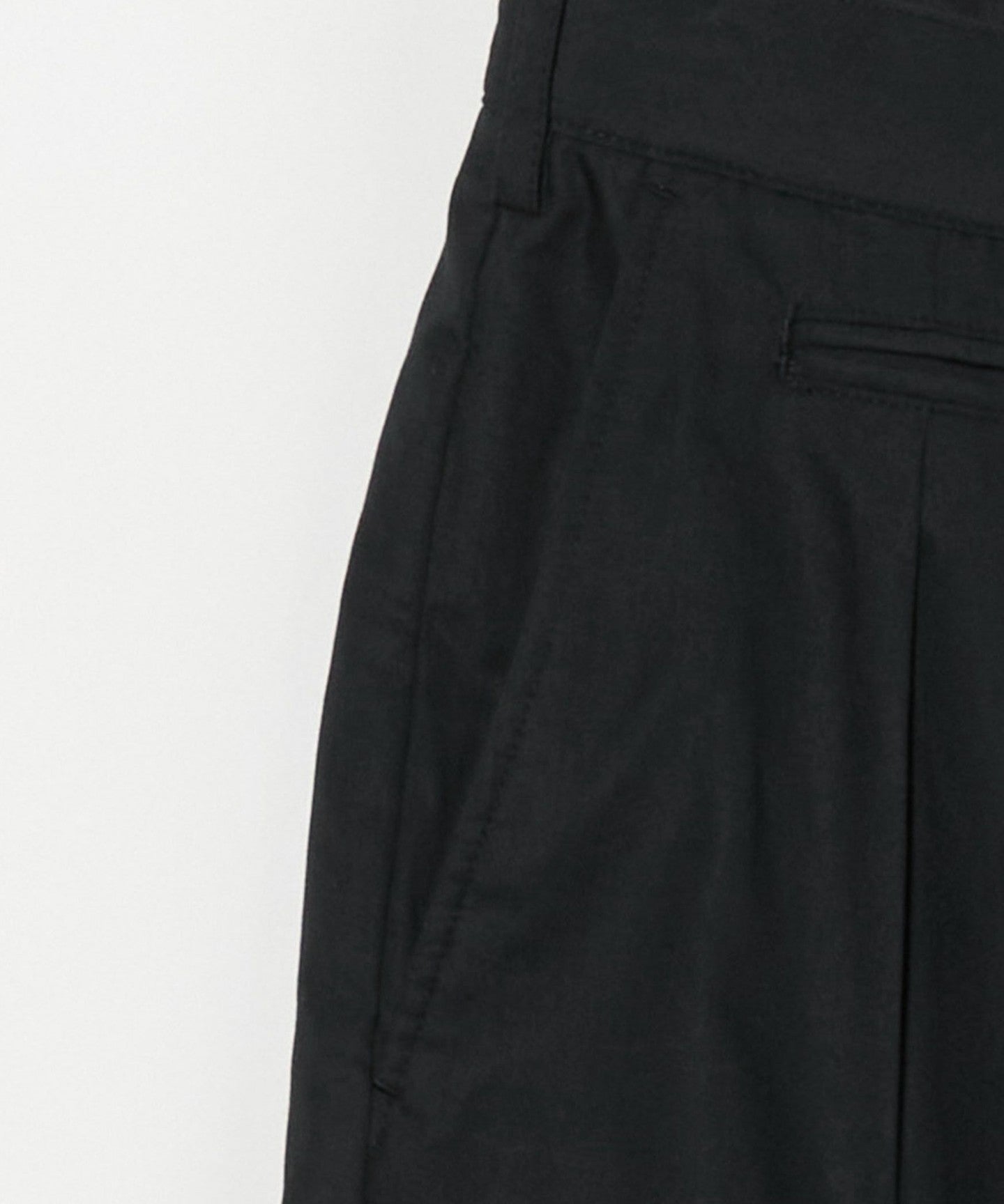 The voluminous wide tapered silhouette with two pleats gives it a roomy yet neat impression.