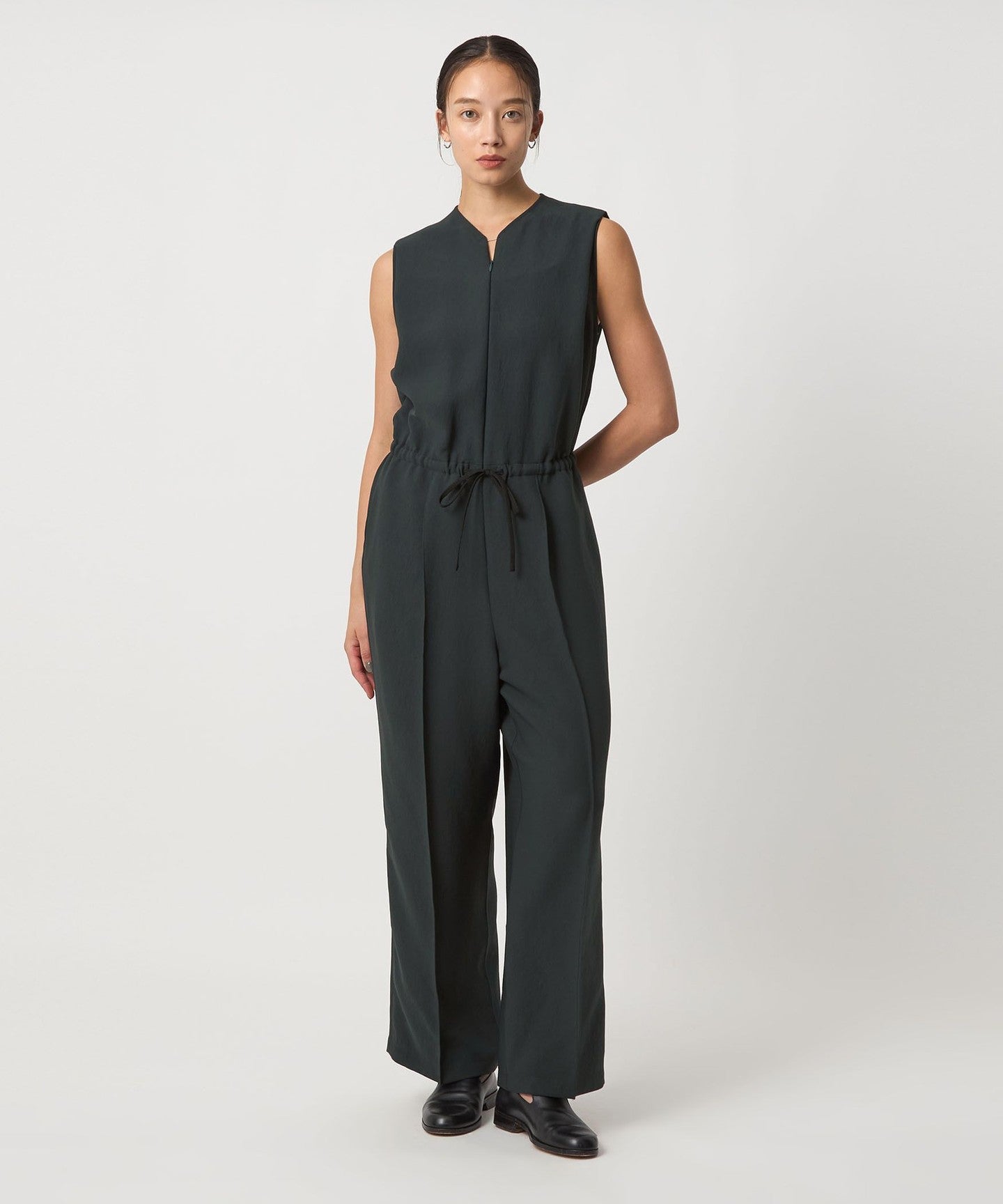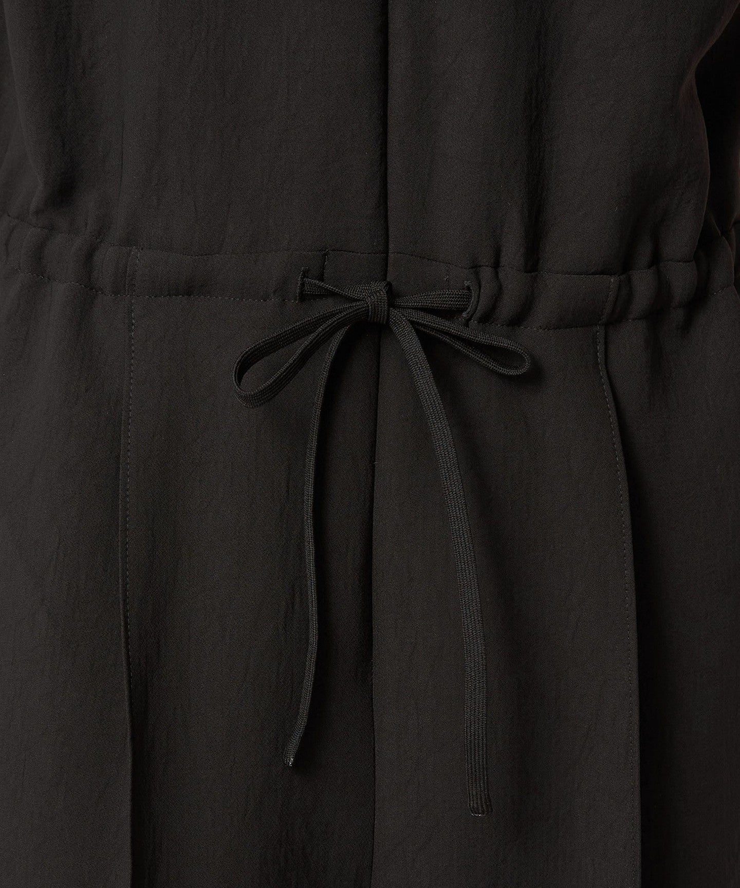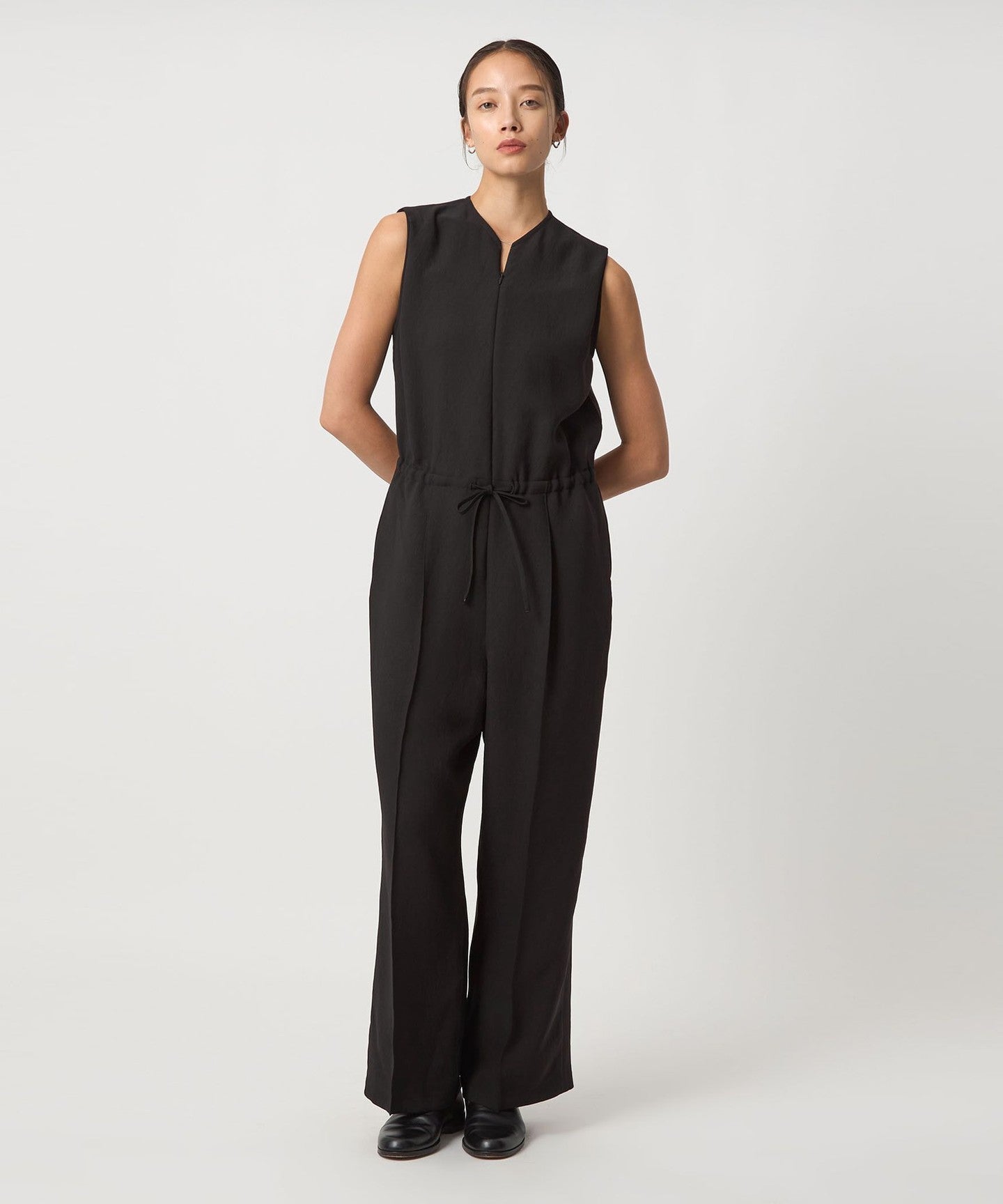 ウエストに配したドローコードがアクセントになった、スリーブレスオールインワン。
